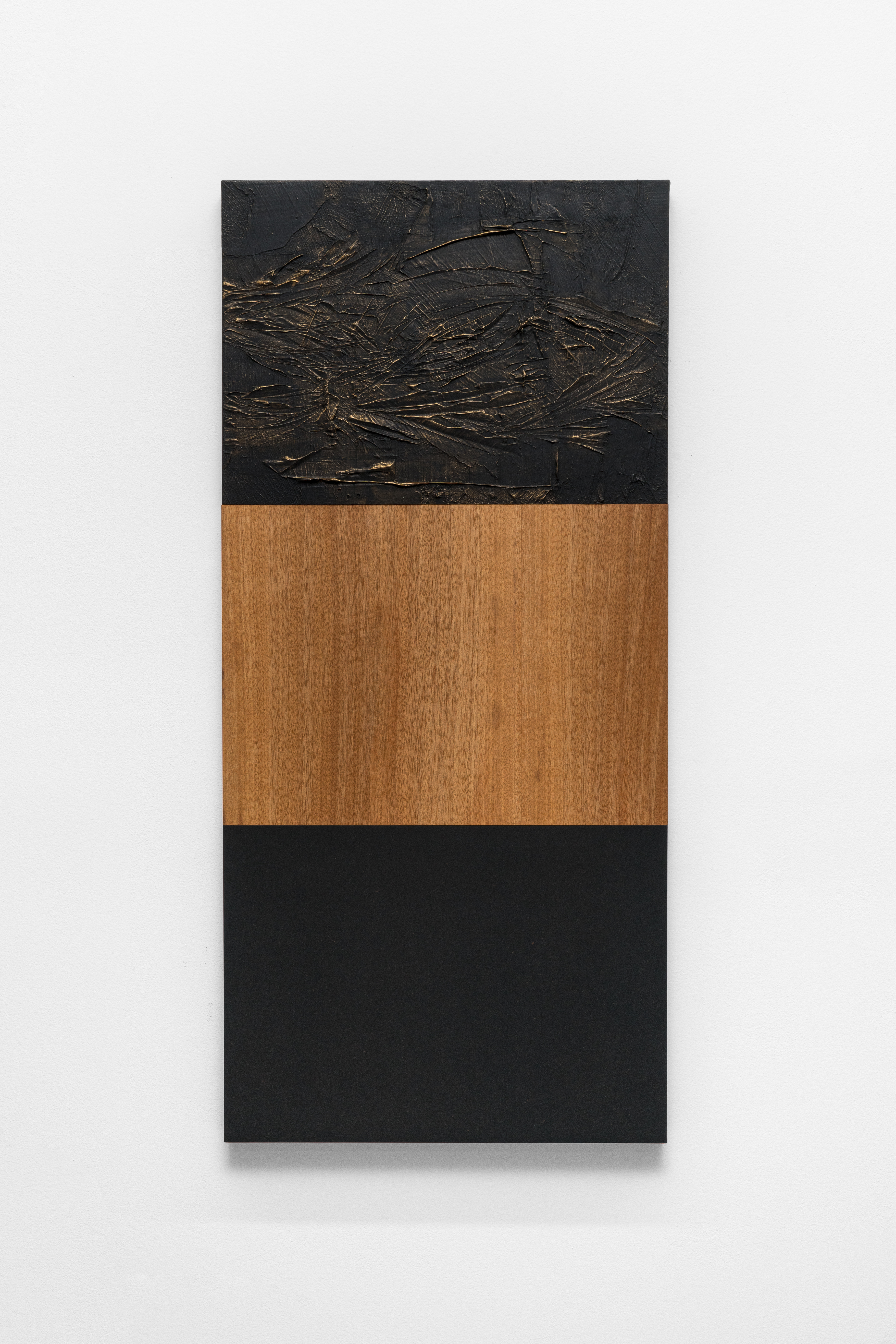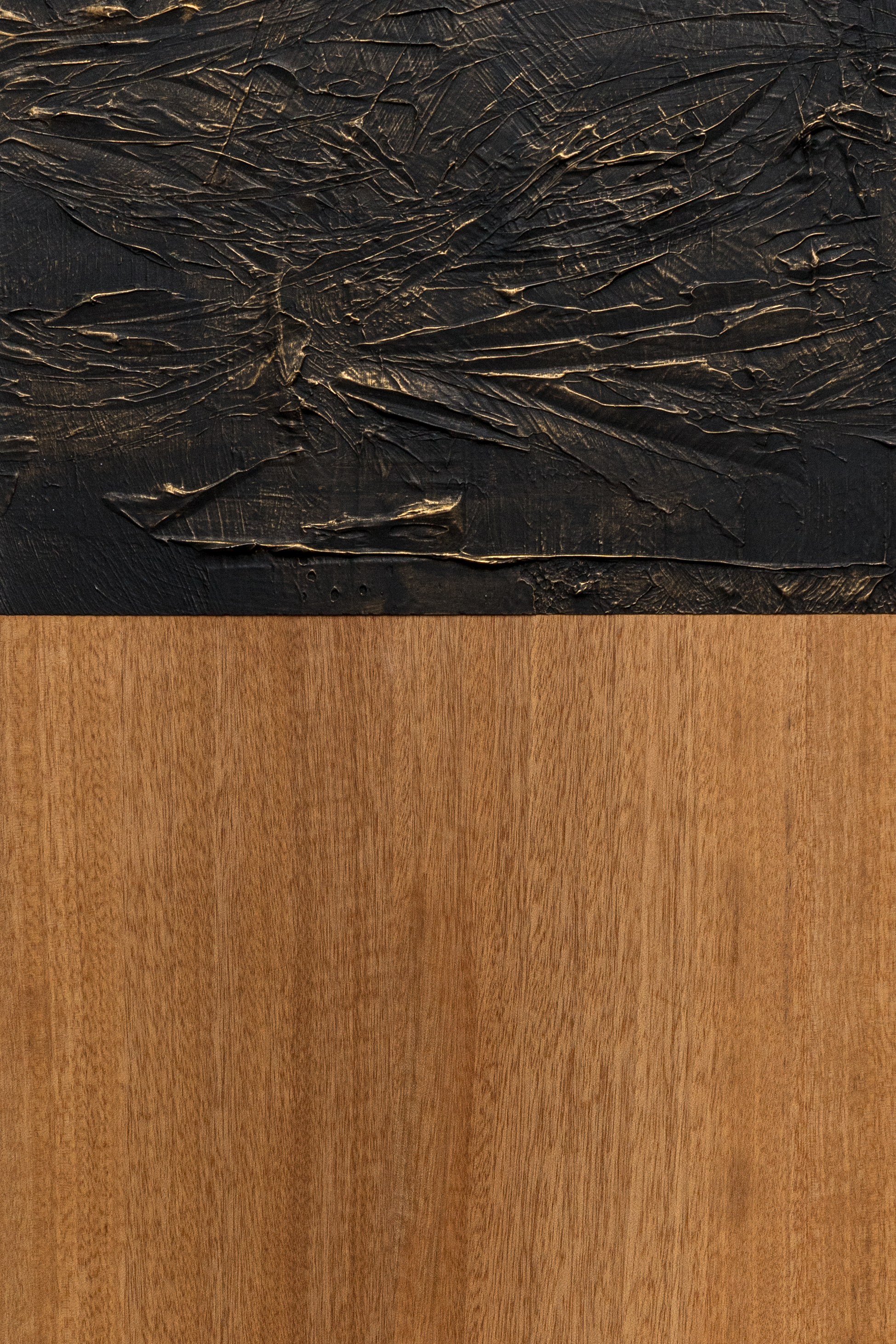 Cast polymer modified gypsum, acrylic polymer, anigre wood, mdf, pigmented hardwax oil
