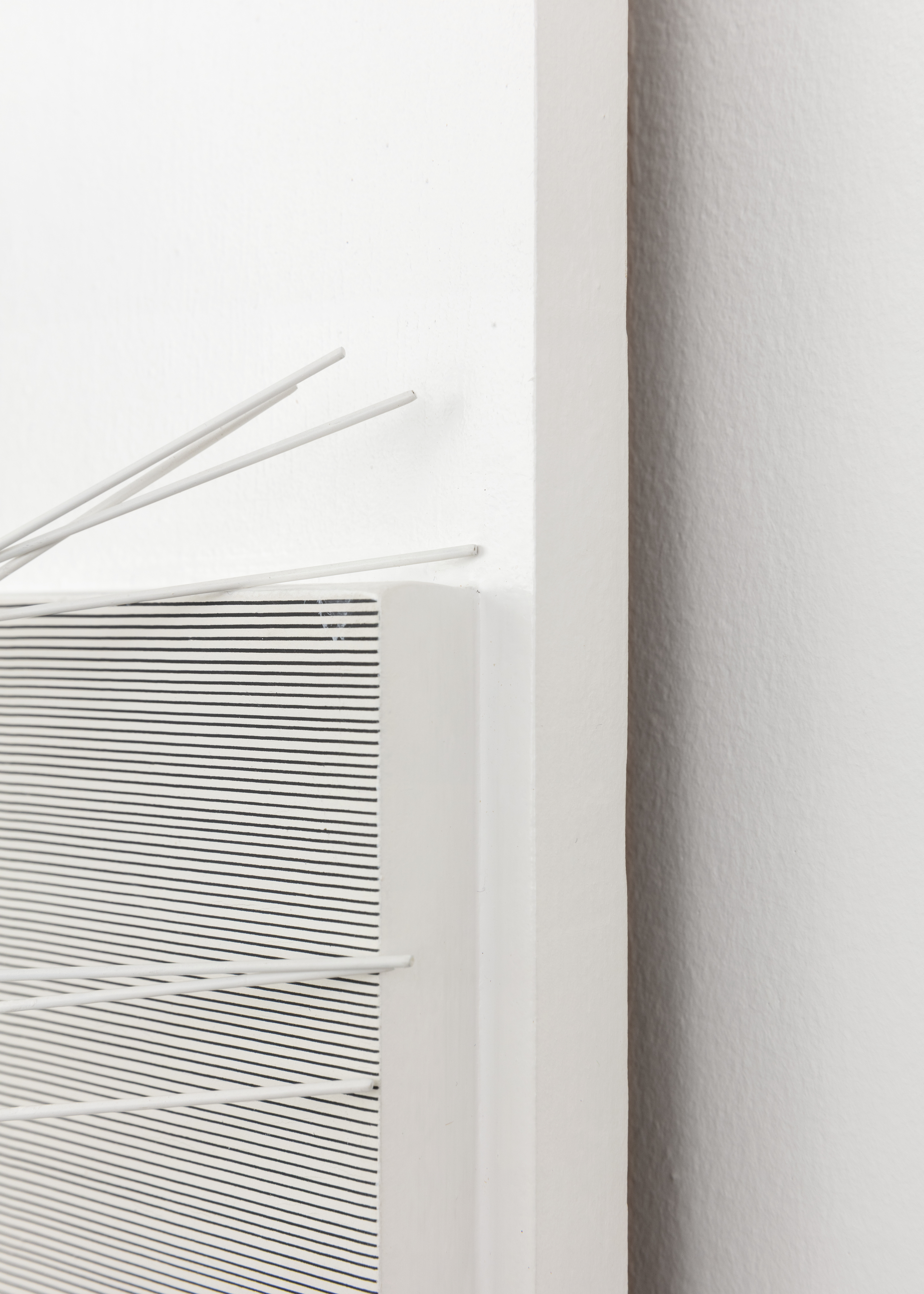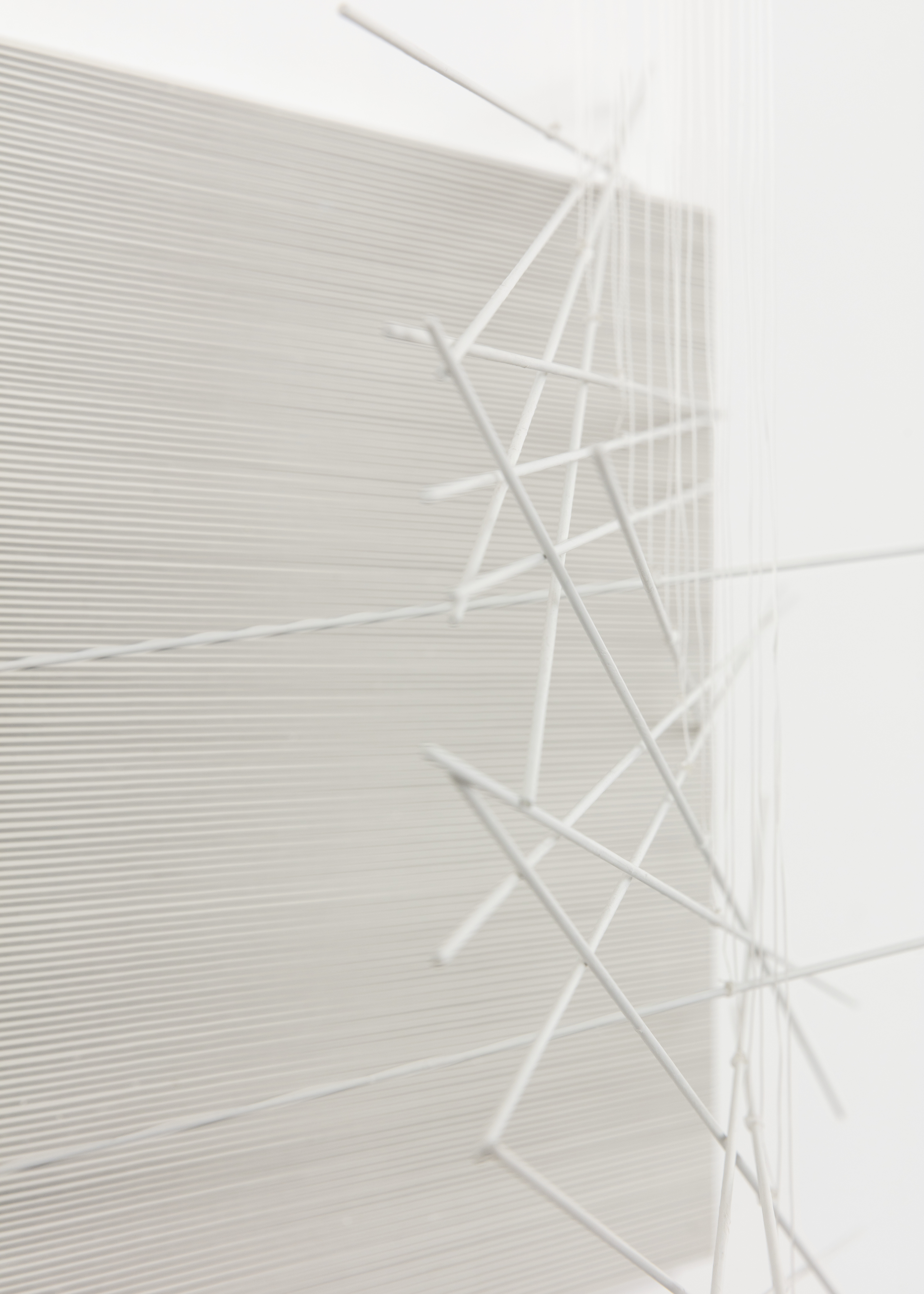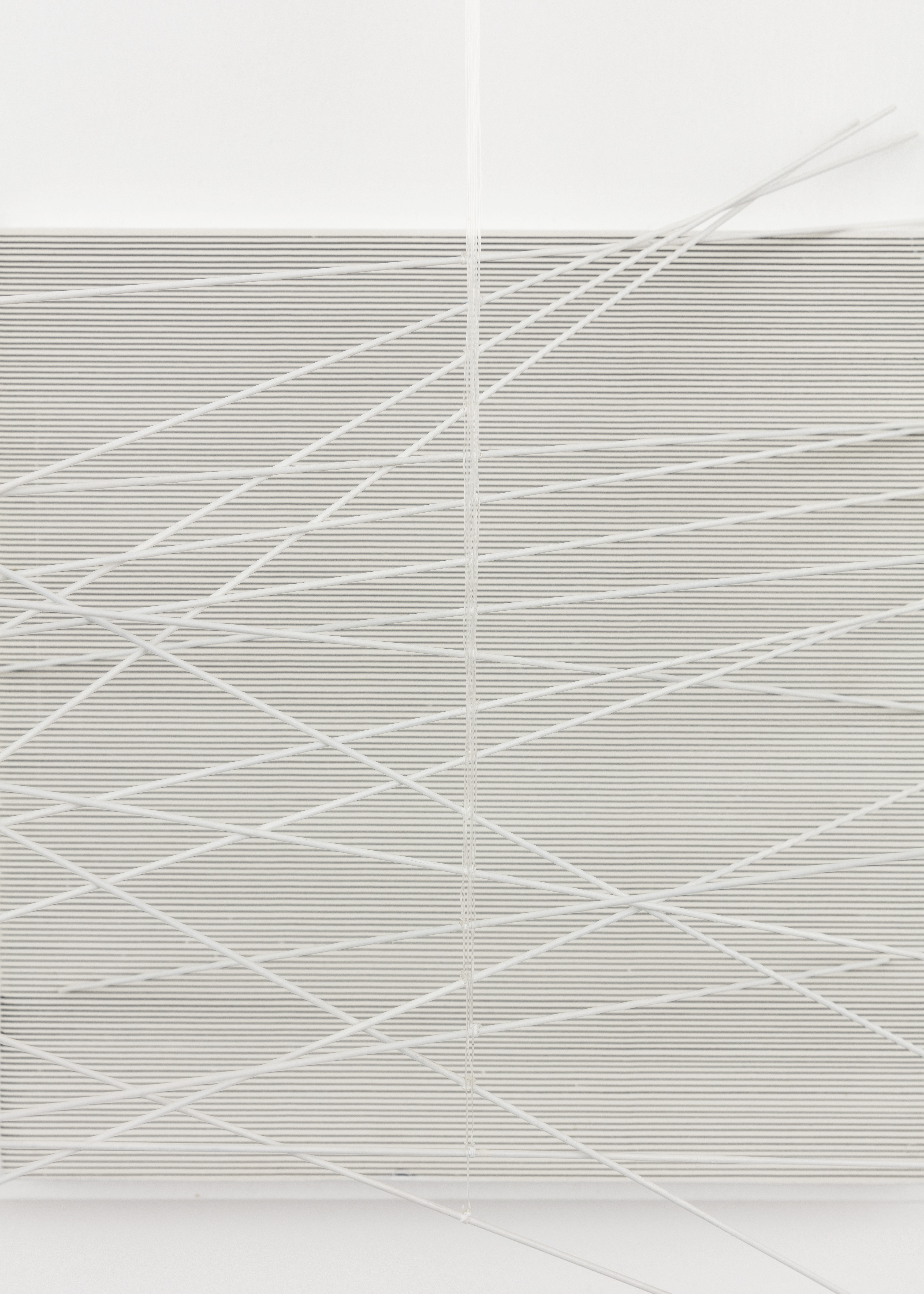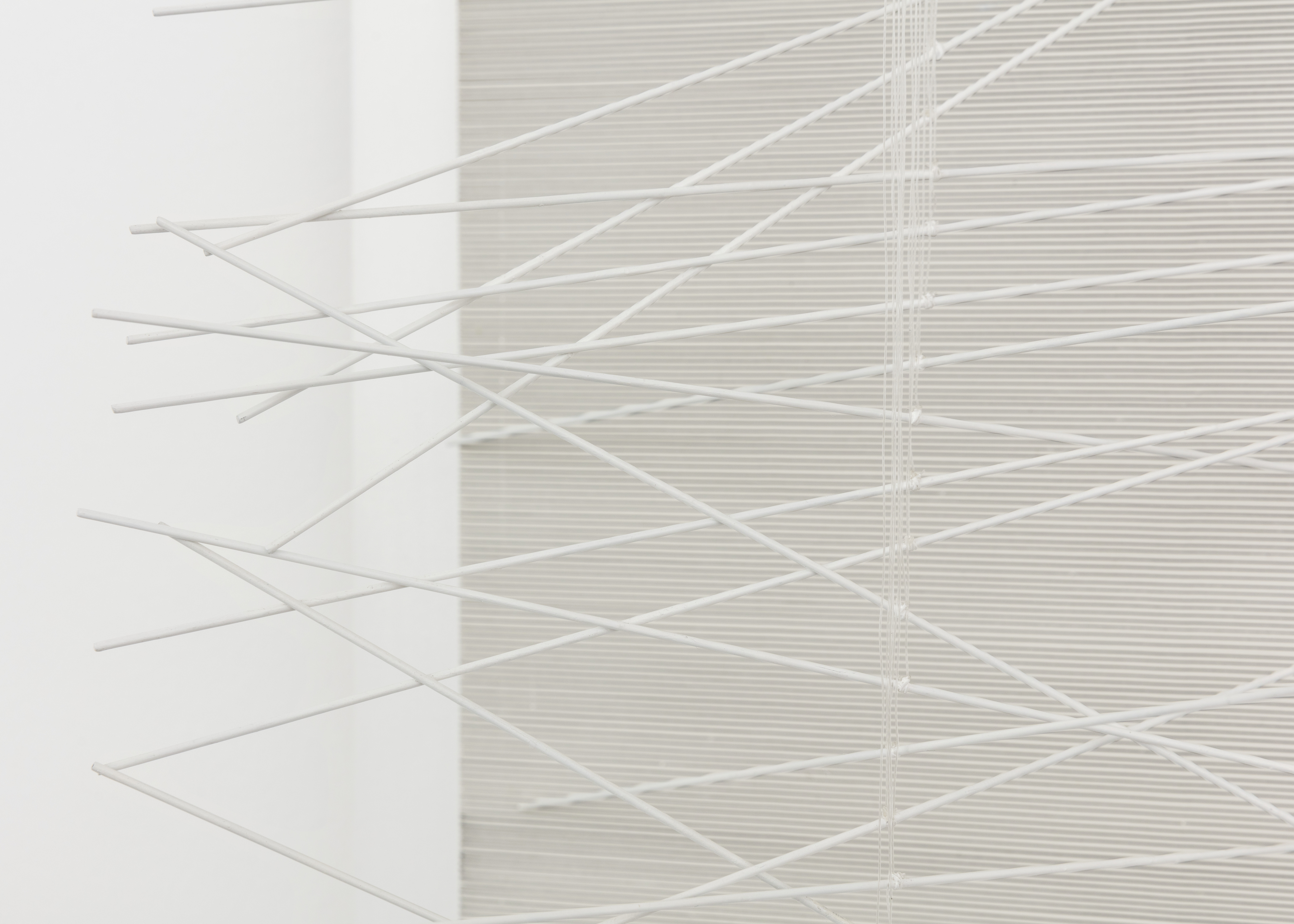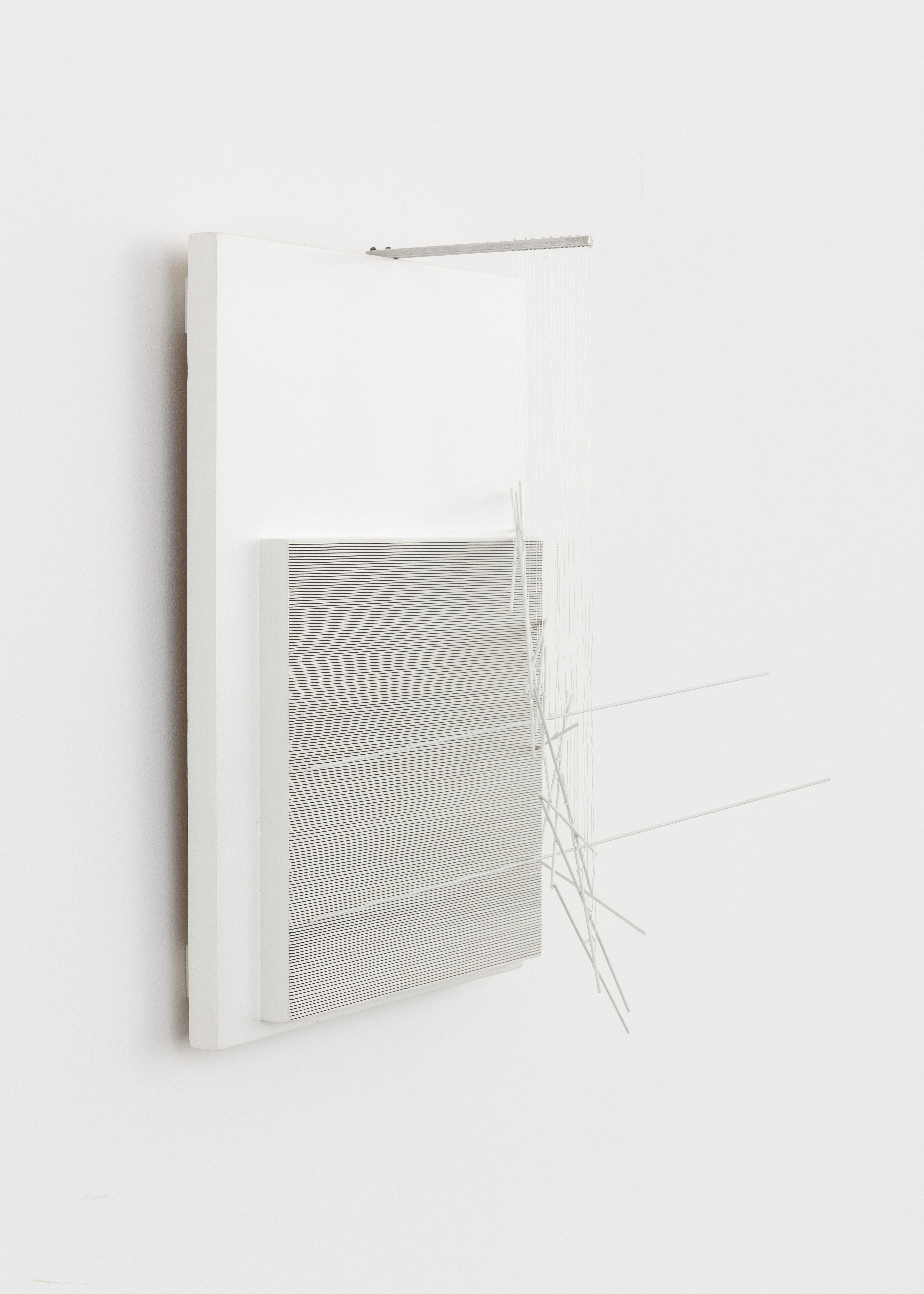 Paint on wood and metal, nylon threads