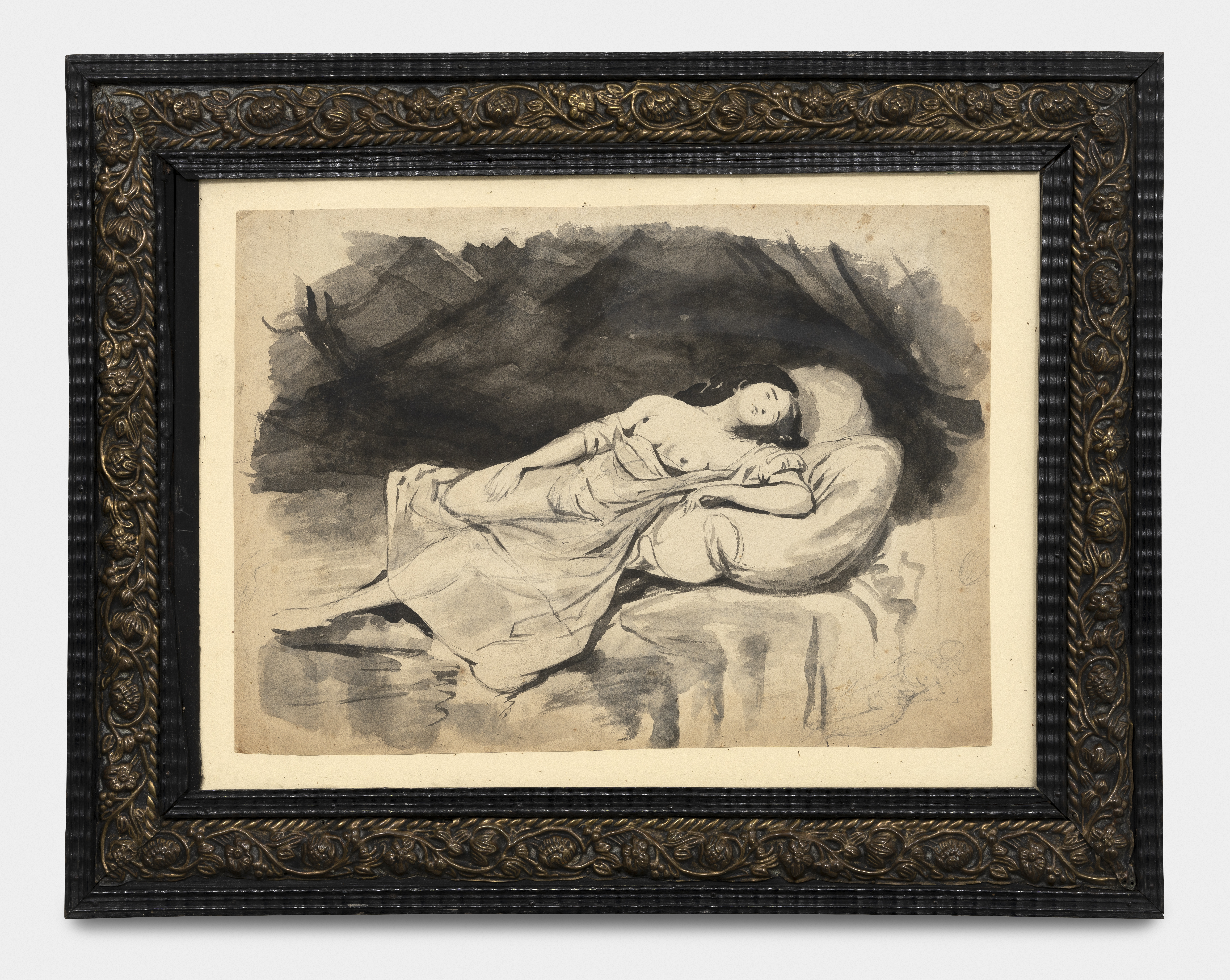Pen and grey ink wash on paper