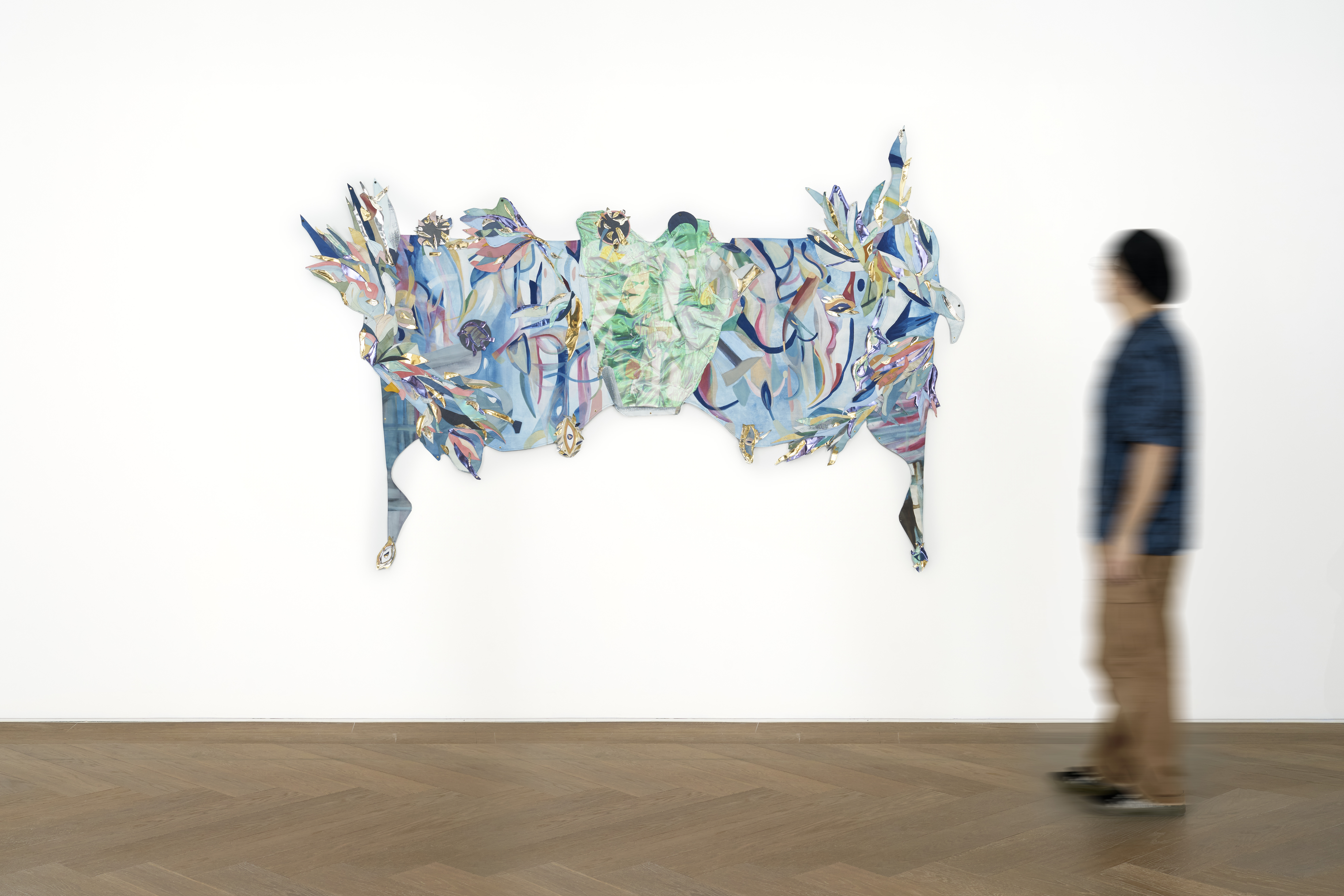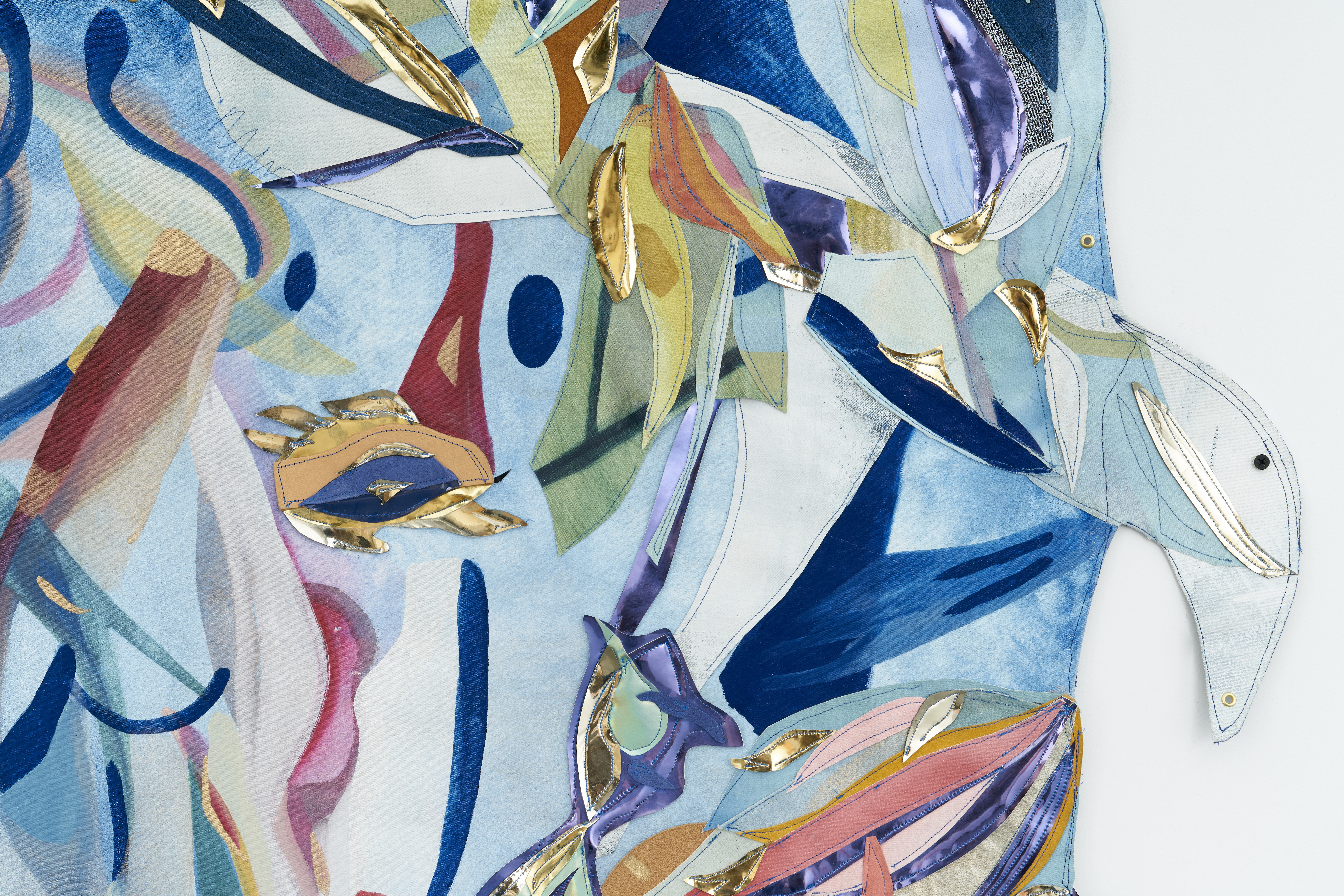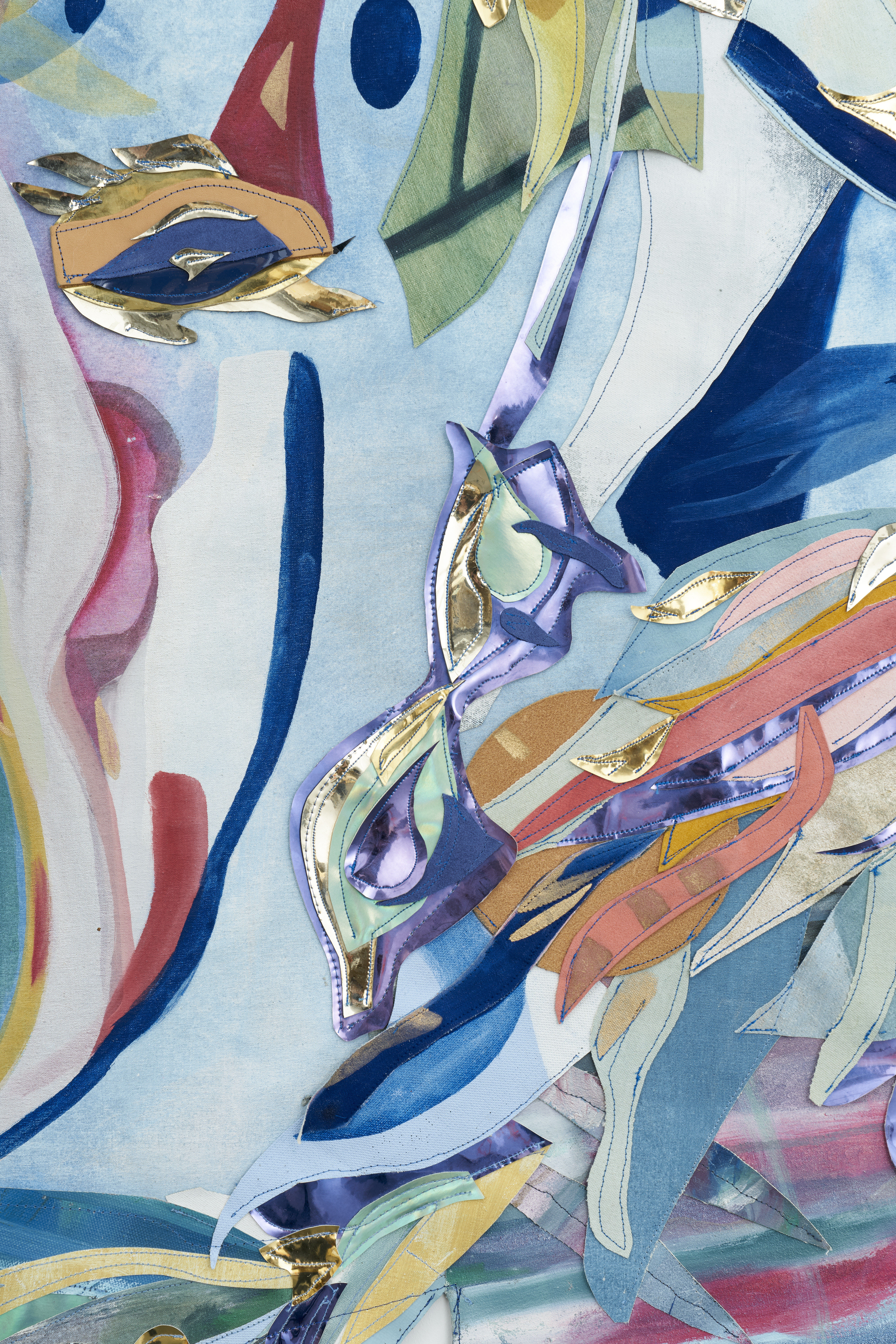 Oil, acrylic and watercolor on canvas, vinyl, suede, leather, iridescent fabric, photograph, paper, chinese ink