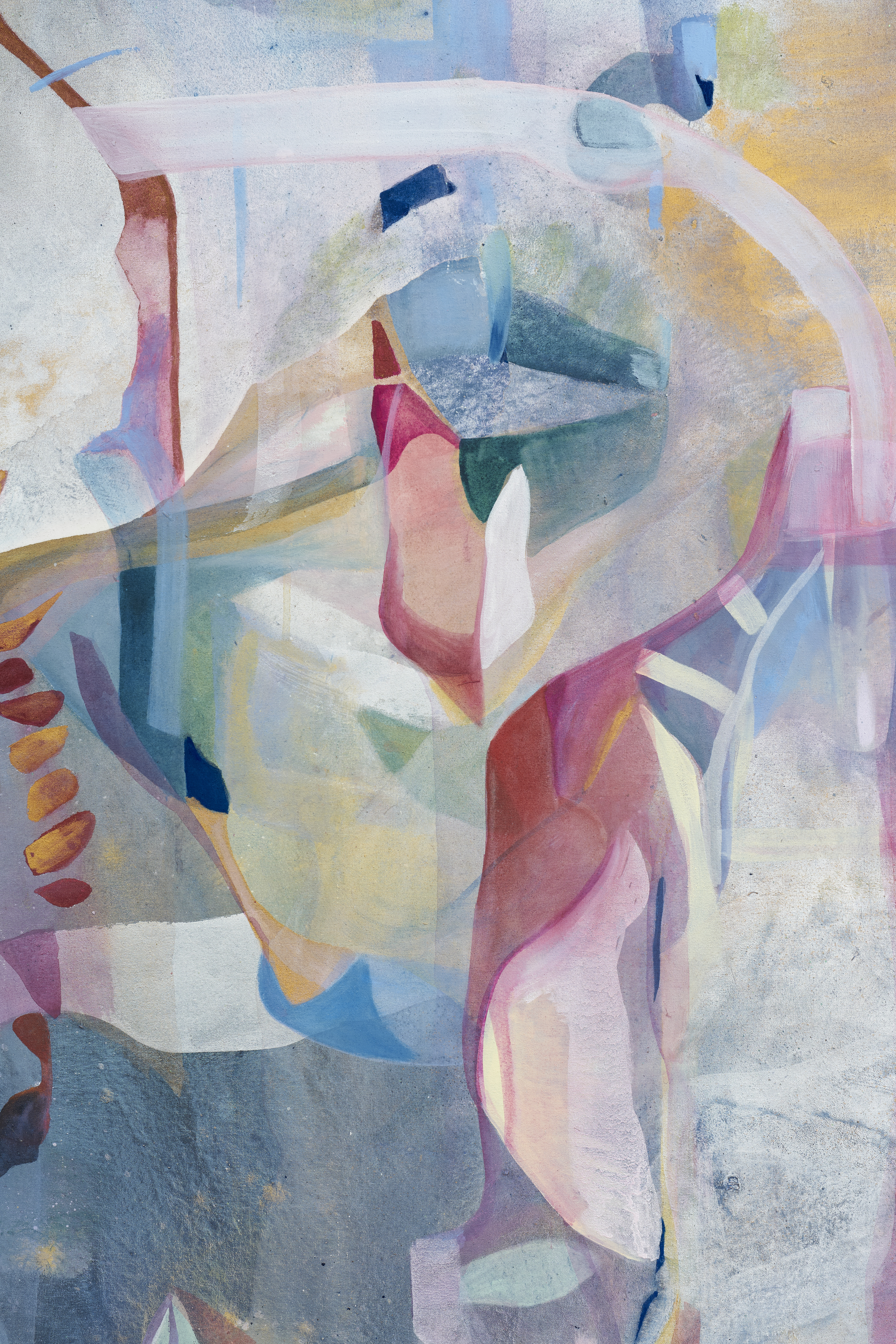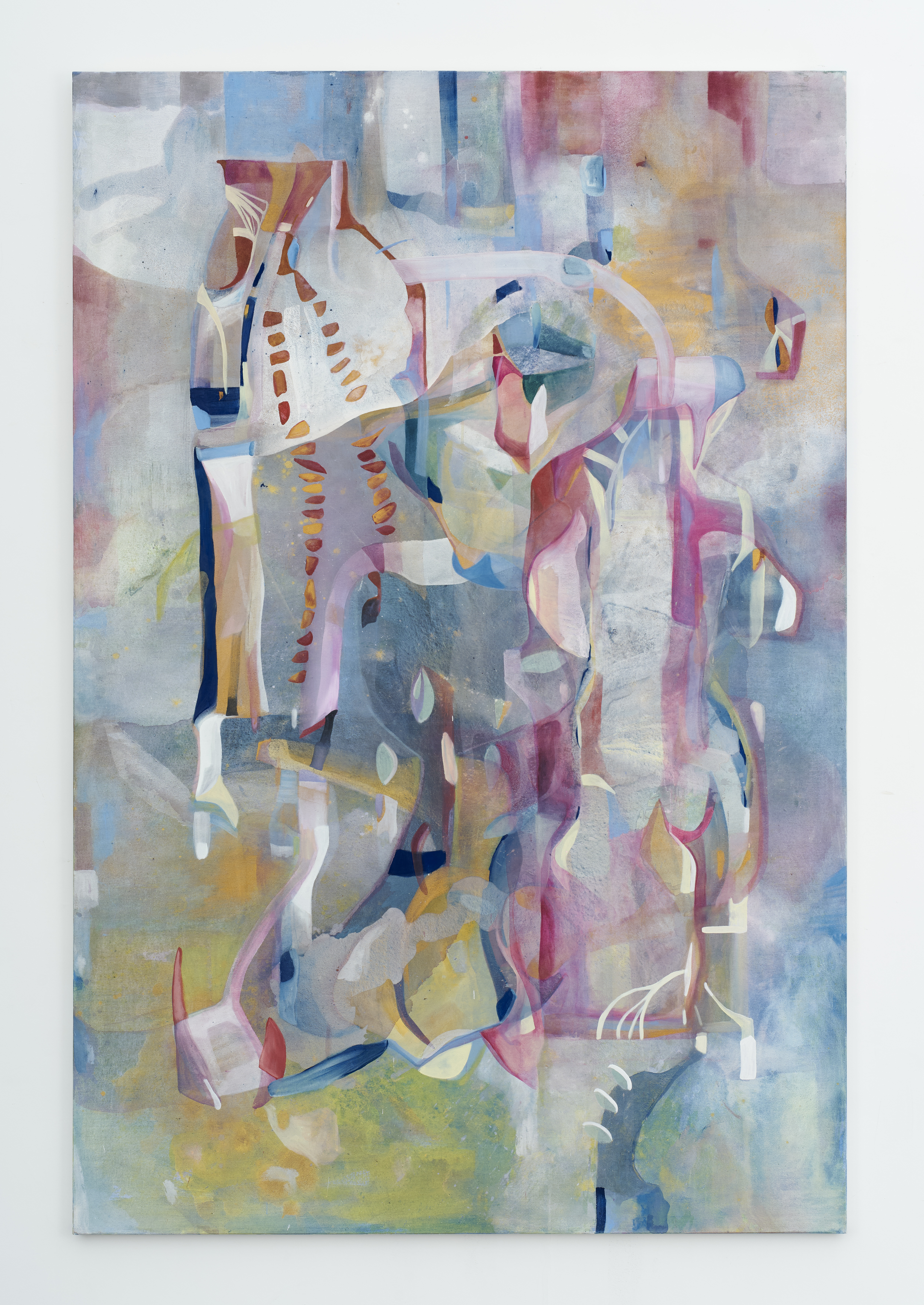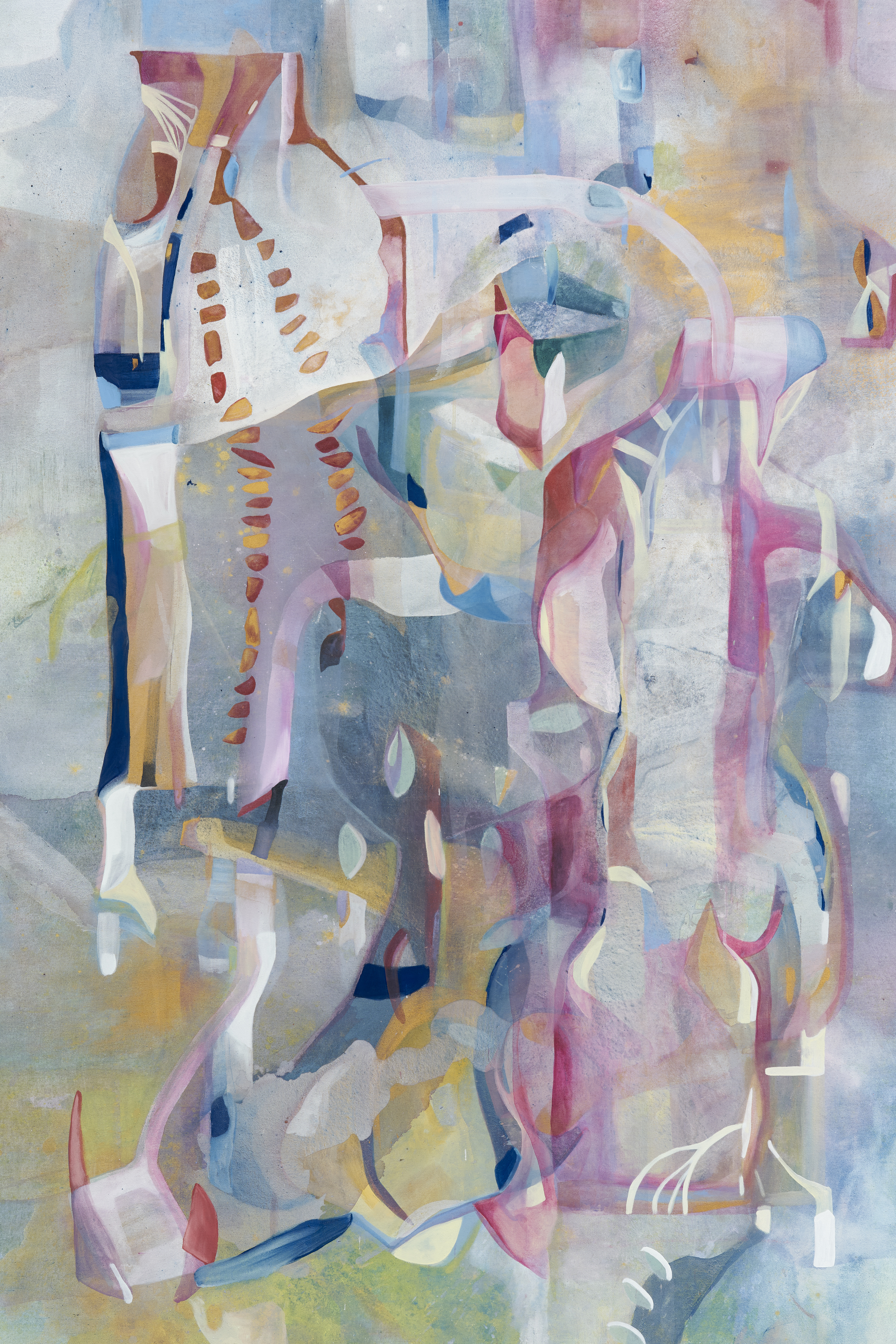 Acrylic and watercolor on canvas, golden and pearlescent pigments