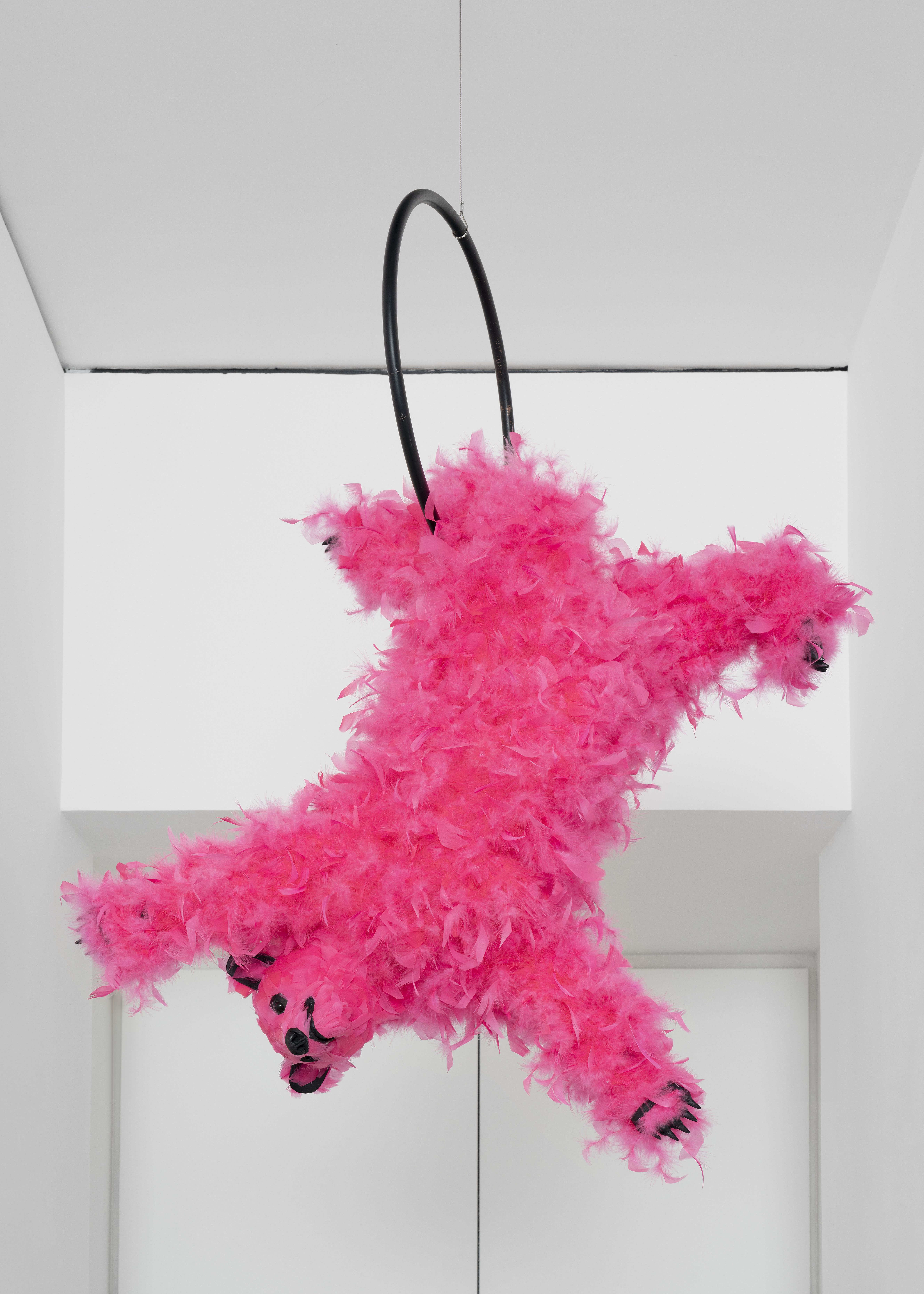 Urethane foam, plastic, feathers, trapeze