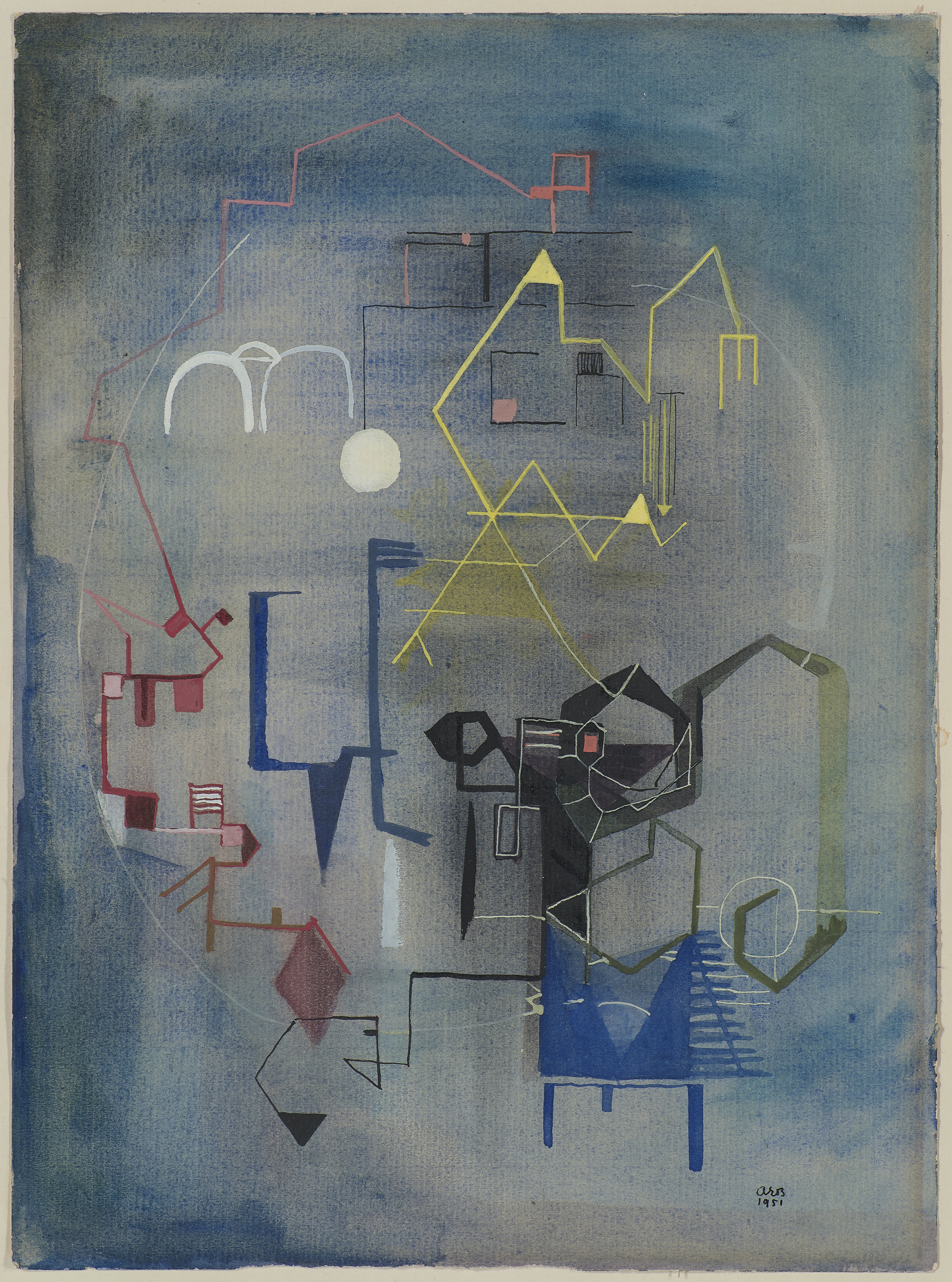 Watercolor and gouache on paper mounted on paper