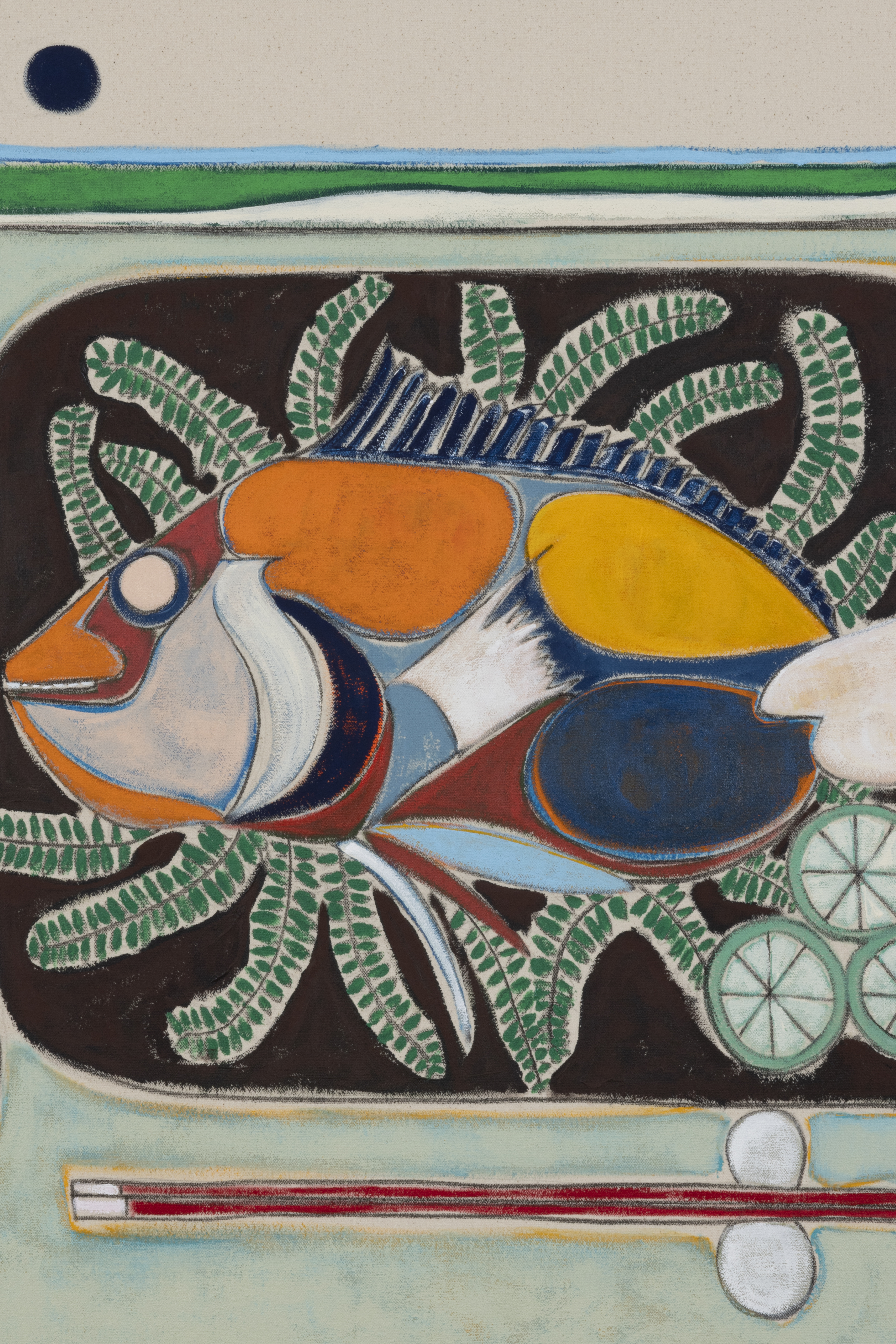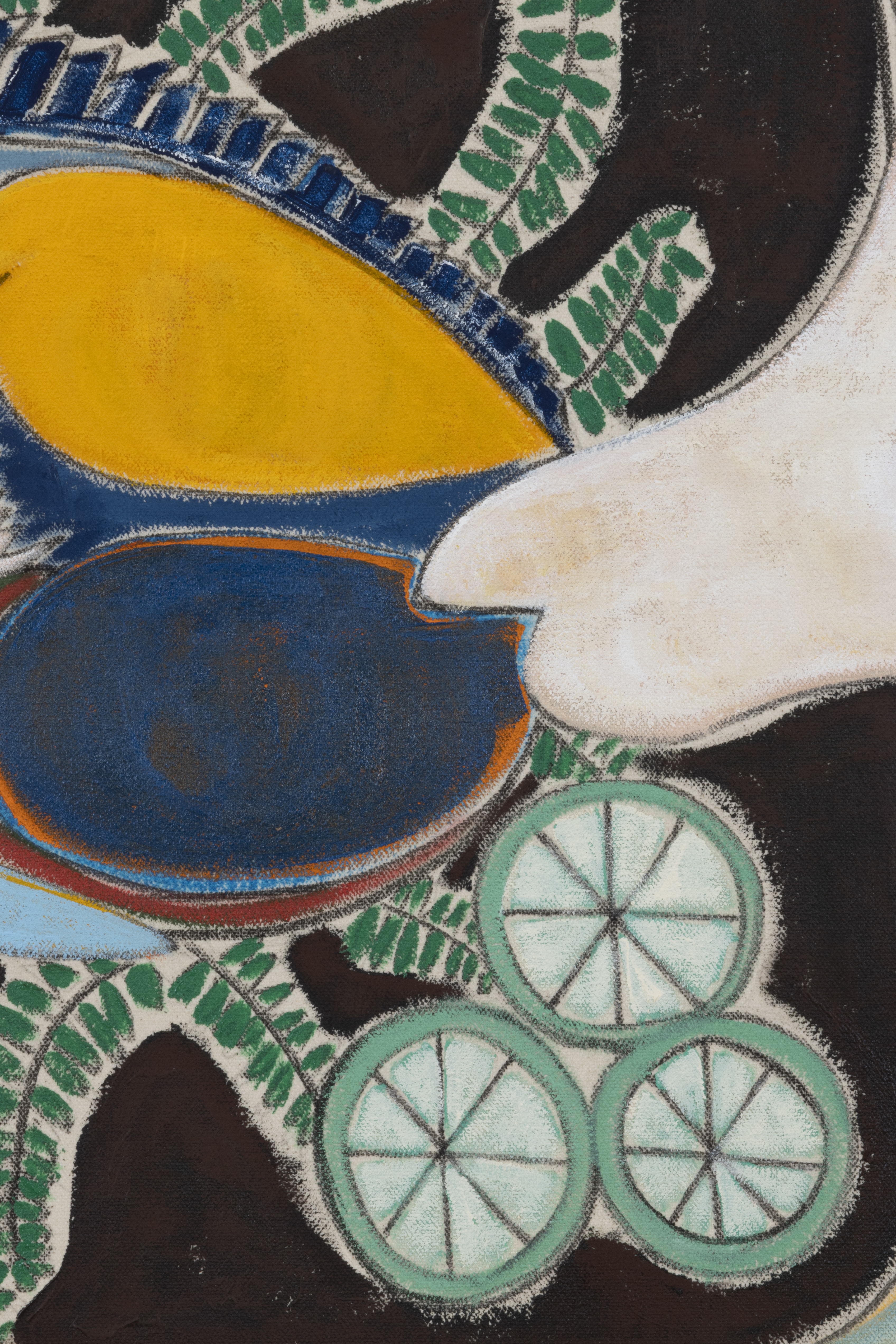 Acrylic, flashe vinyl paint and pastel pencil on canvas