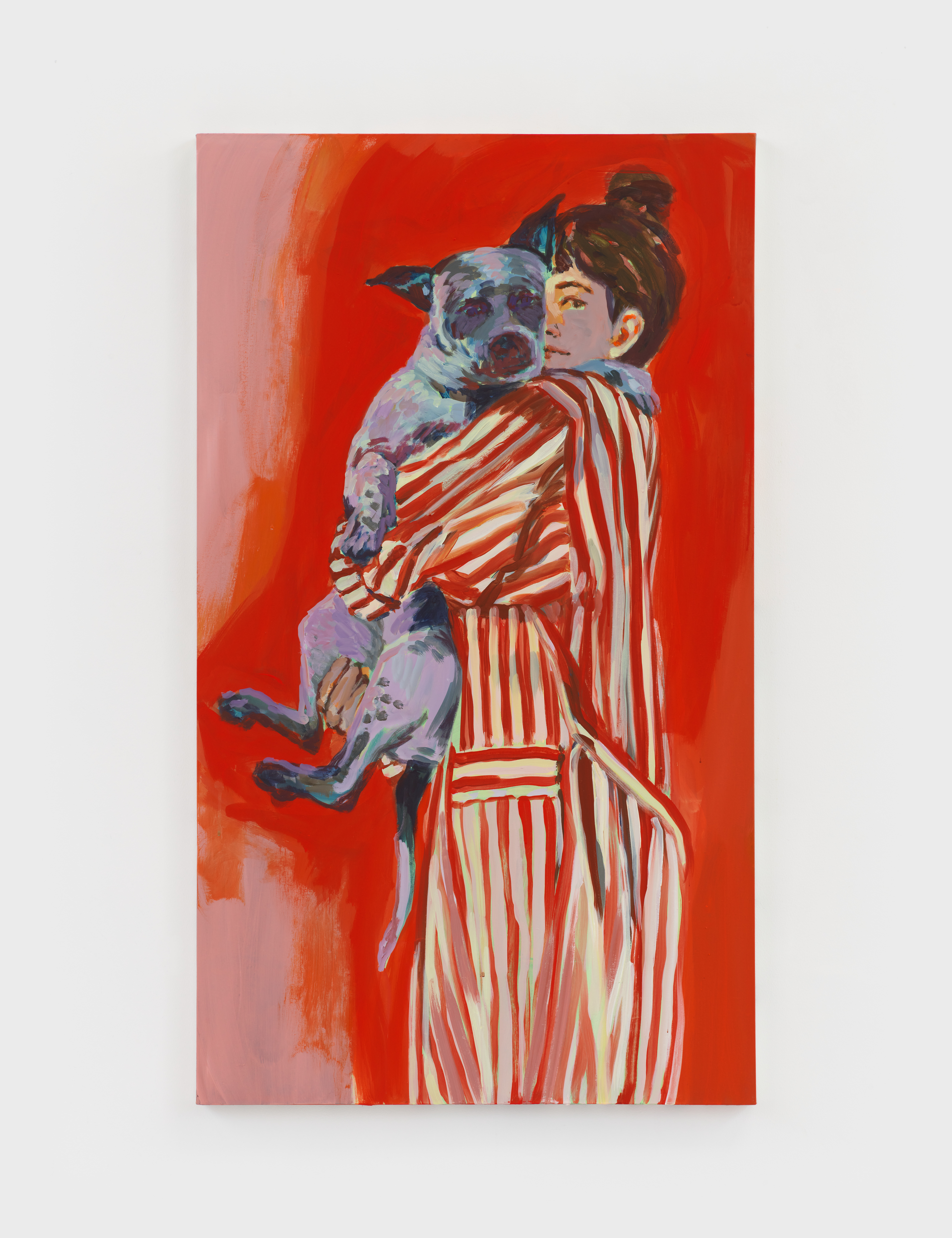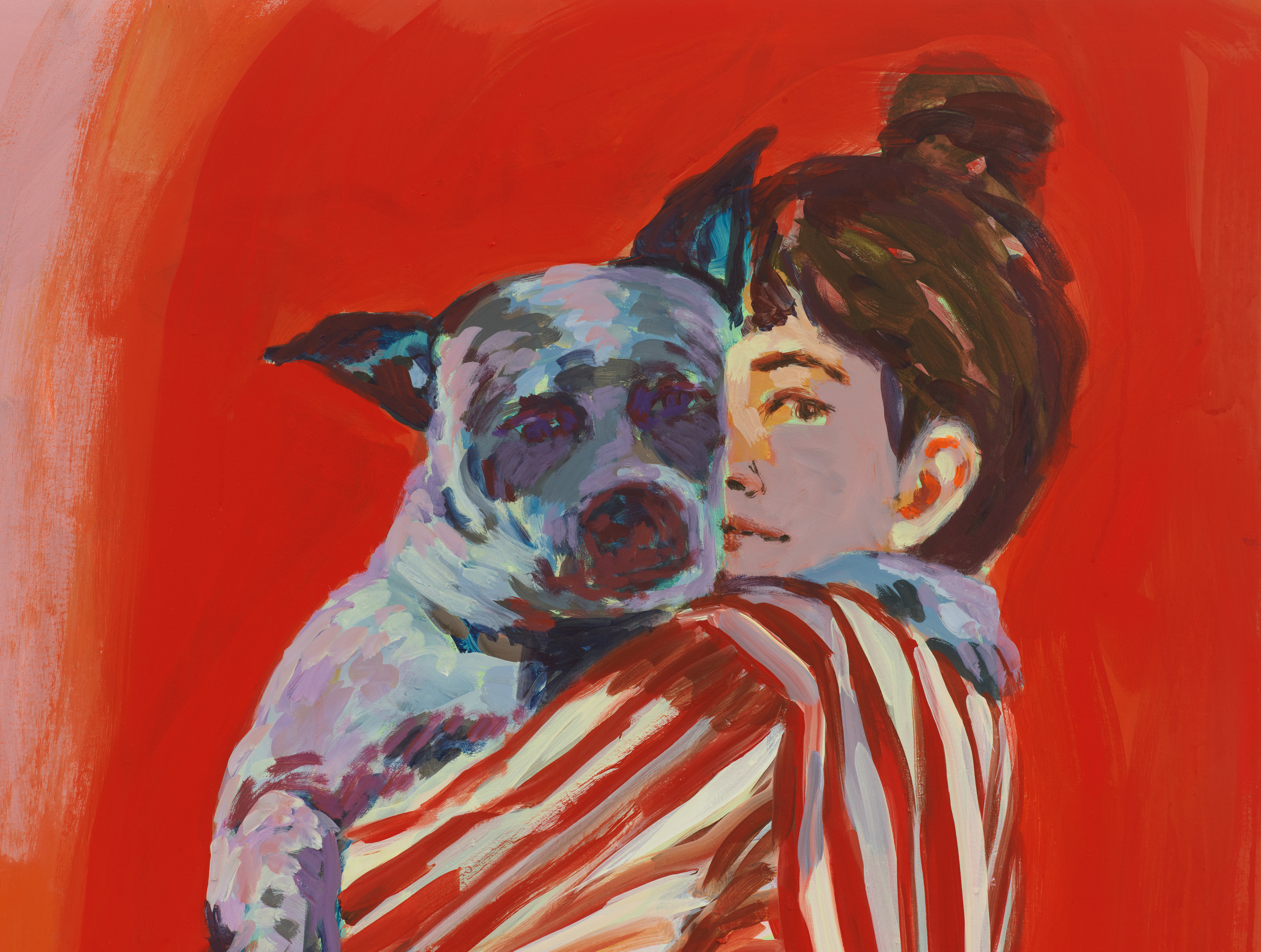 Self-portrait with George (stripes)