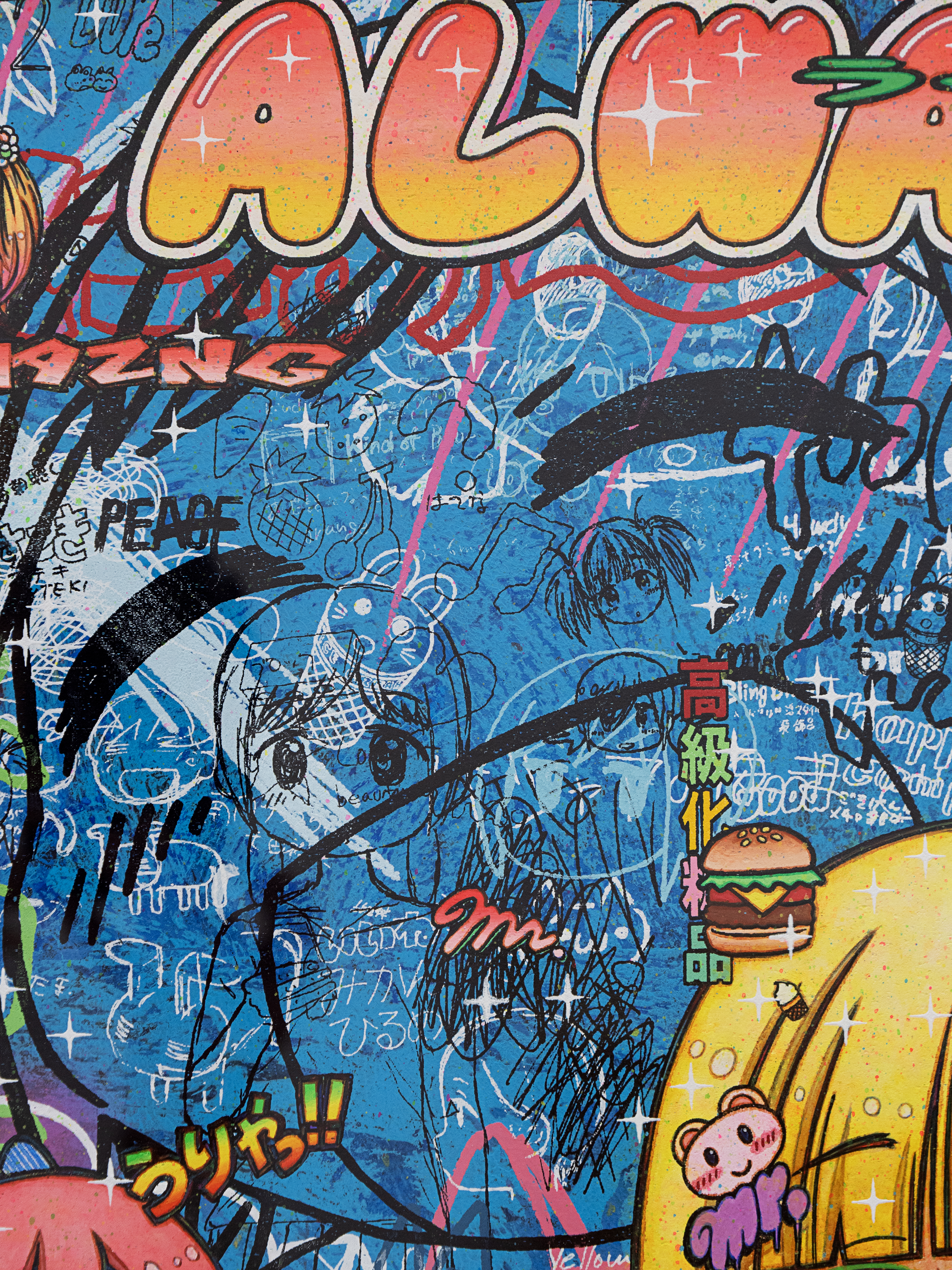 Acrylic, silkscreen print, pen on paper