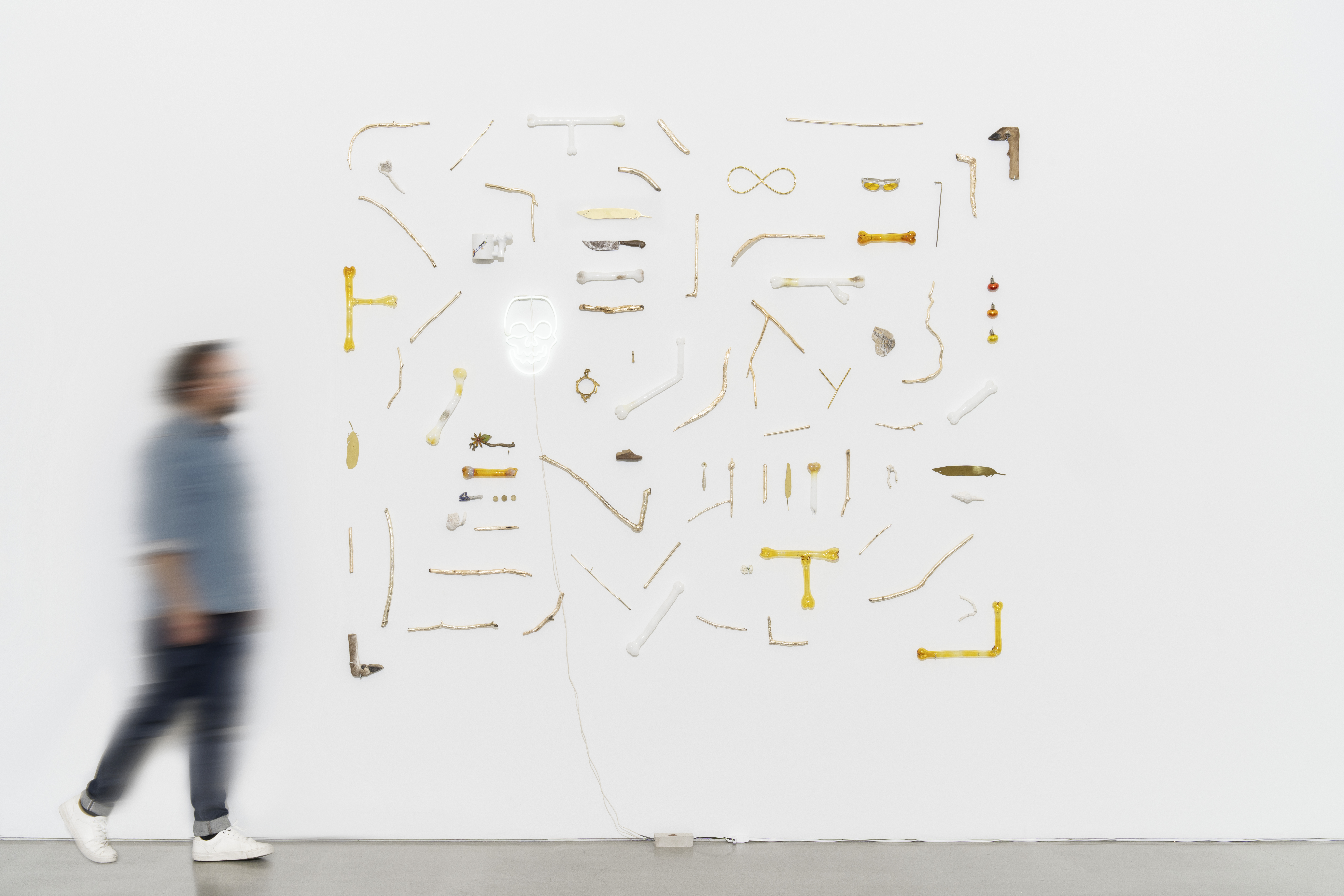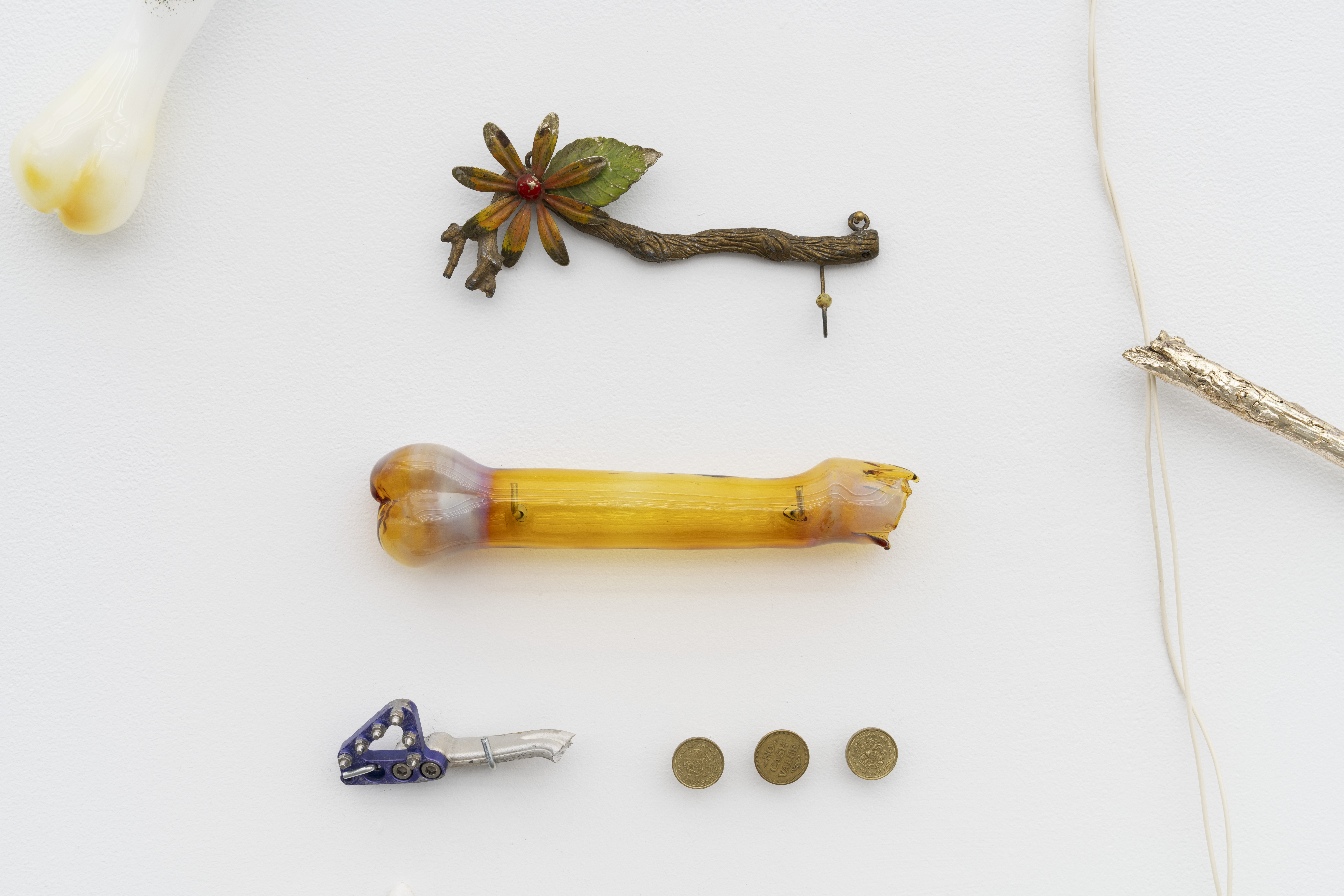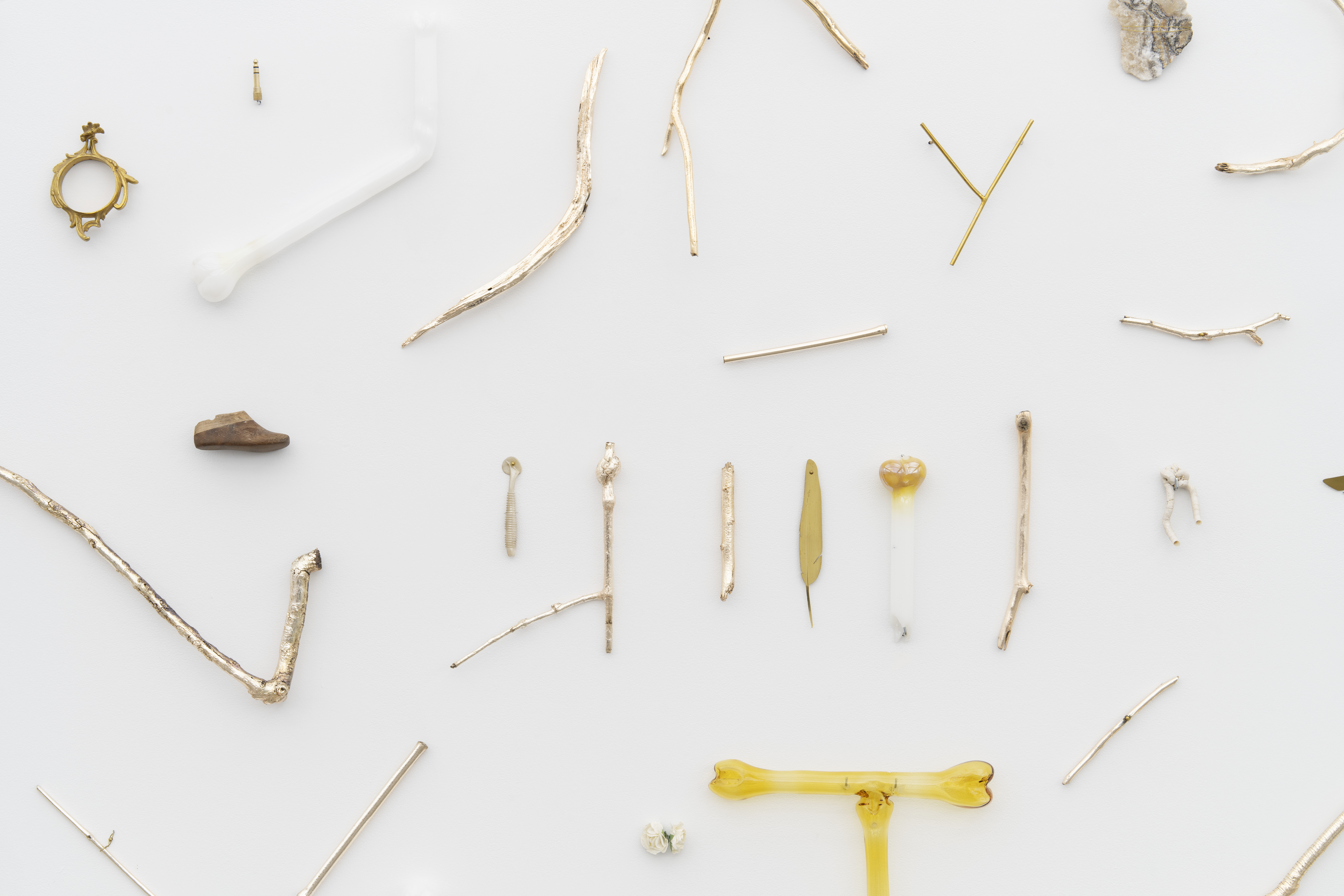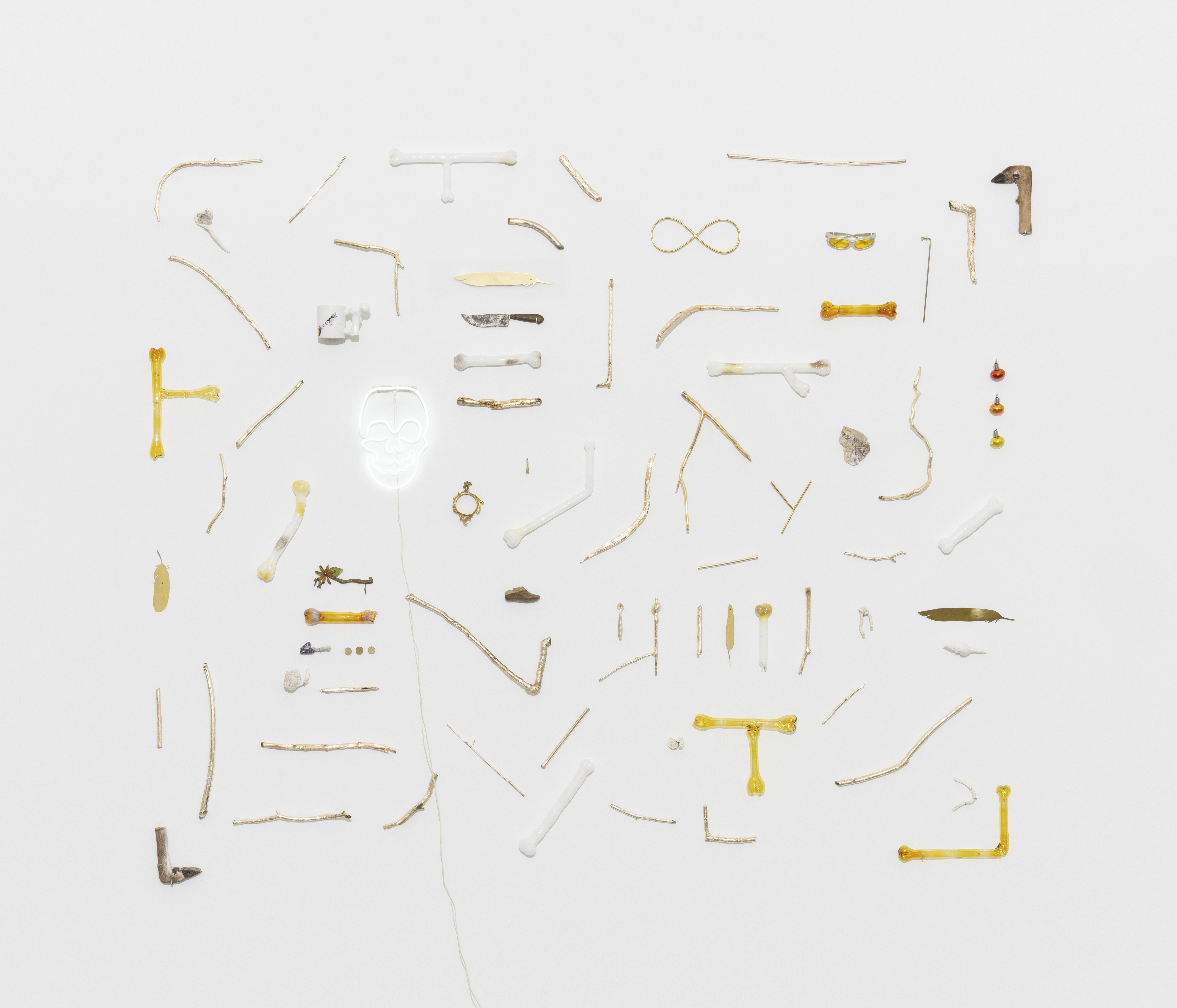 Chromed branches, blown glass, brass & mix of found objects