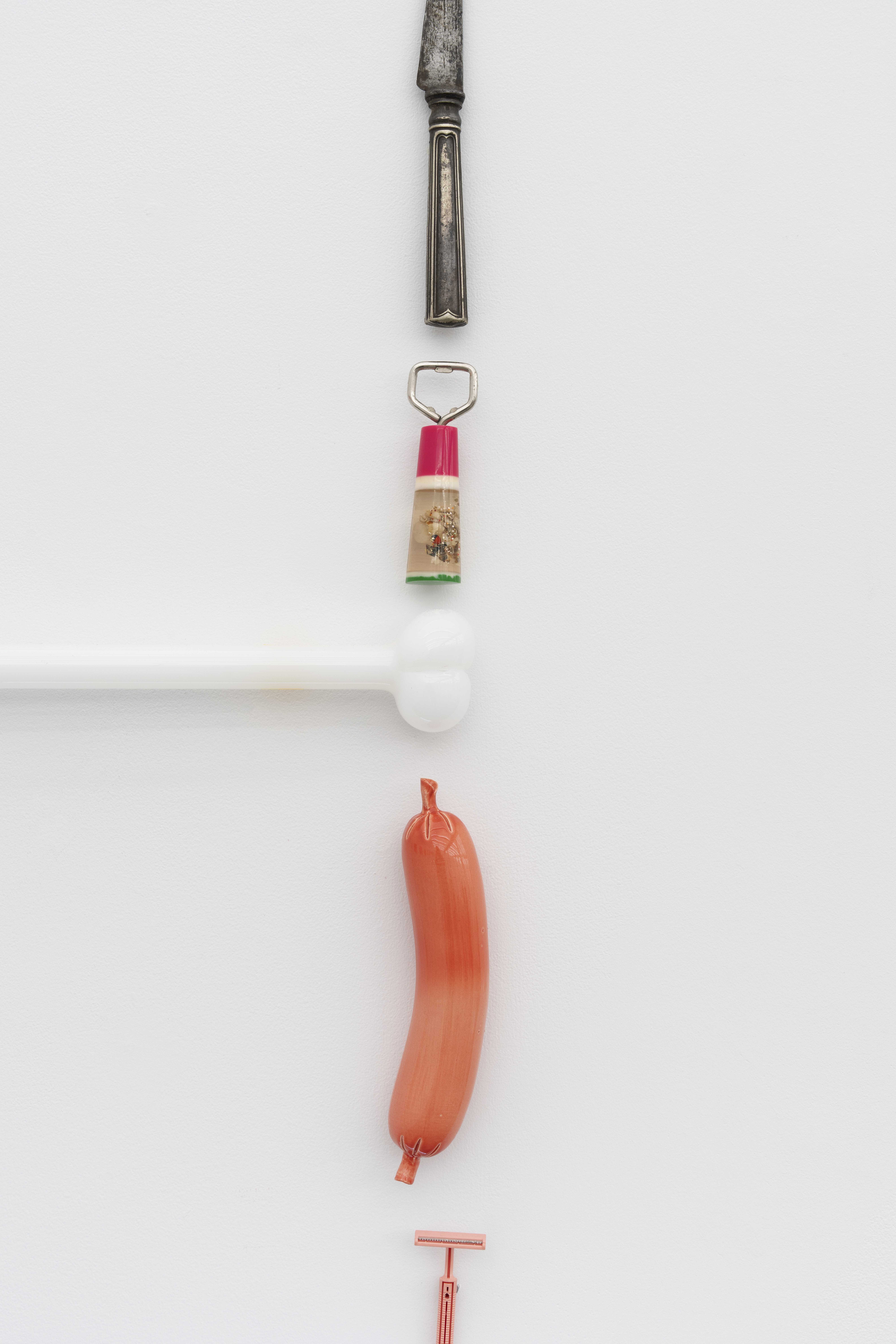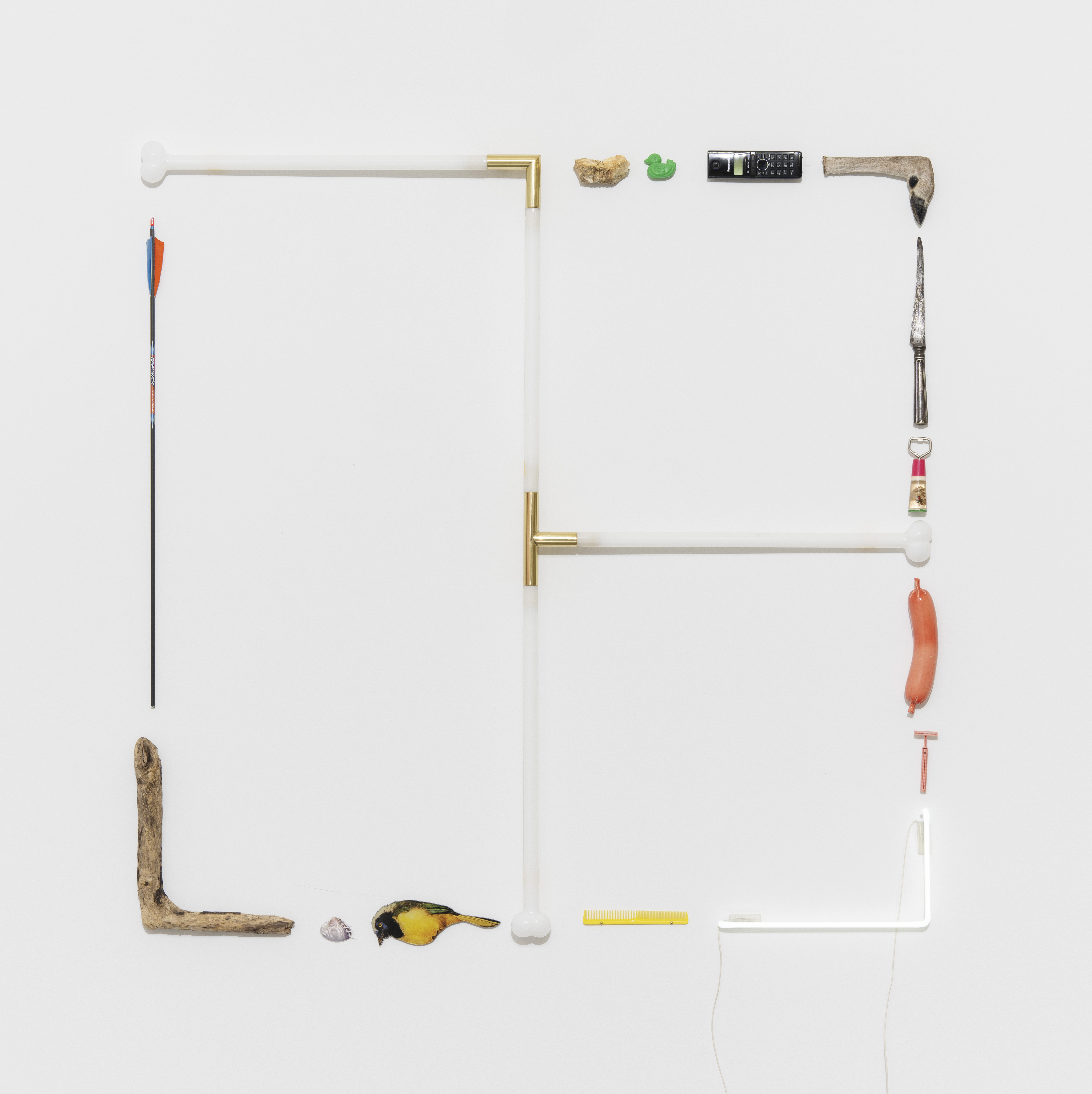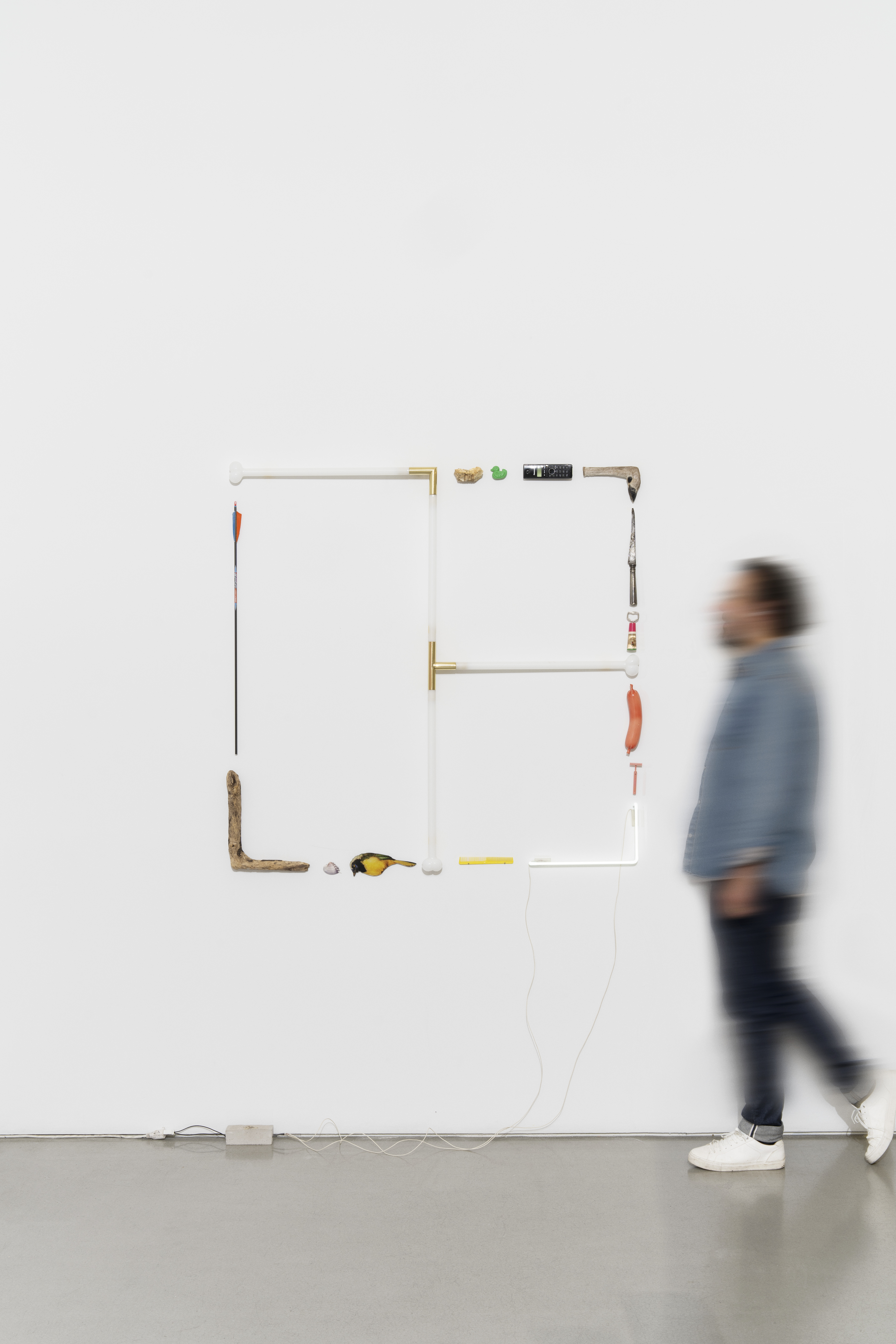 Neon, ceramic, blown glass and found objects