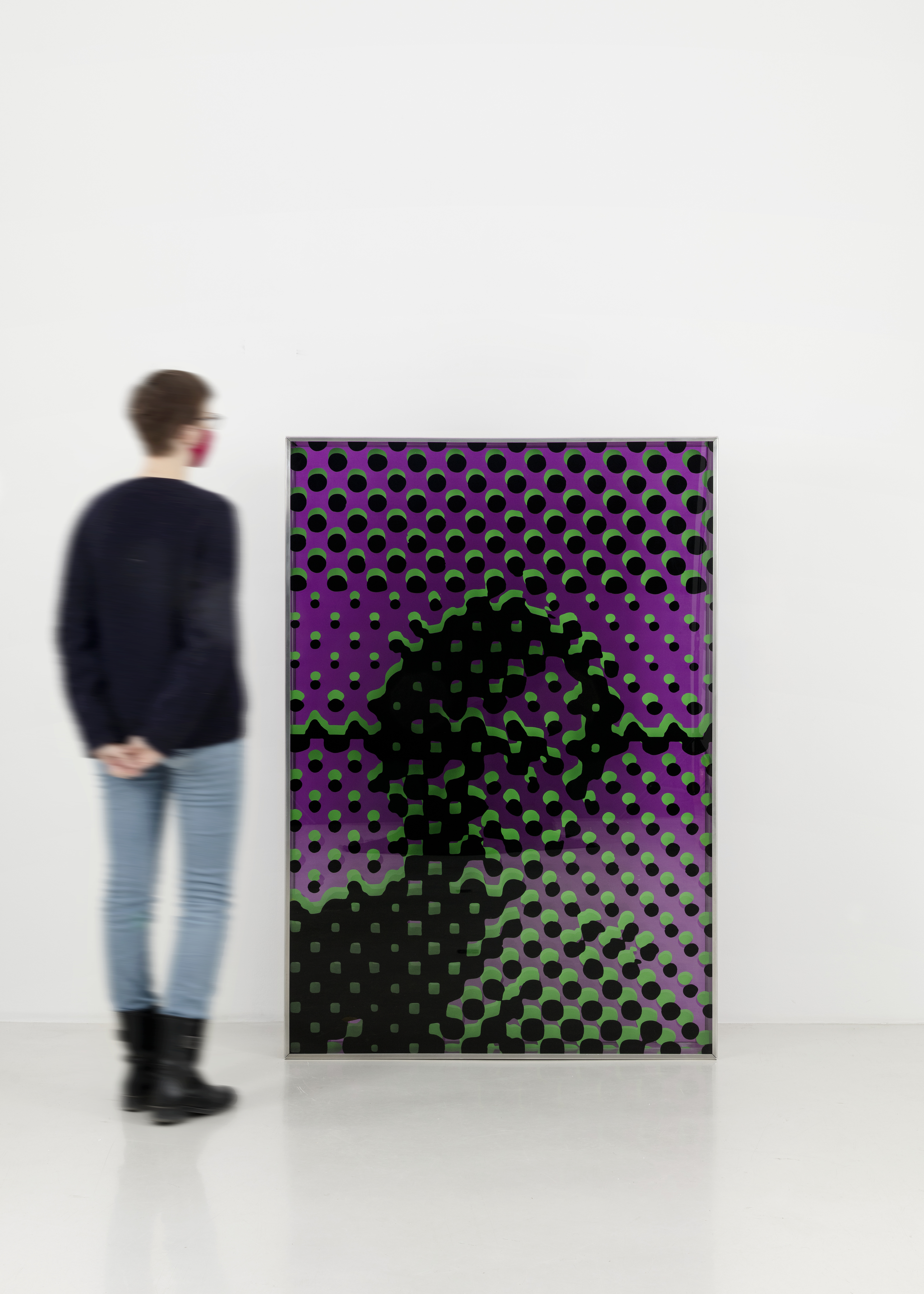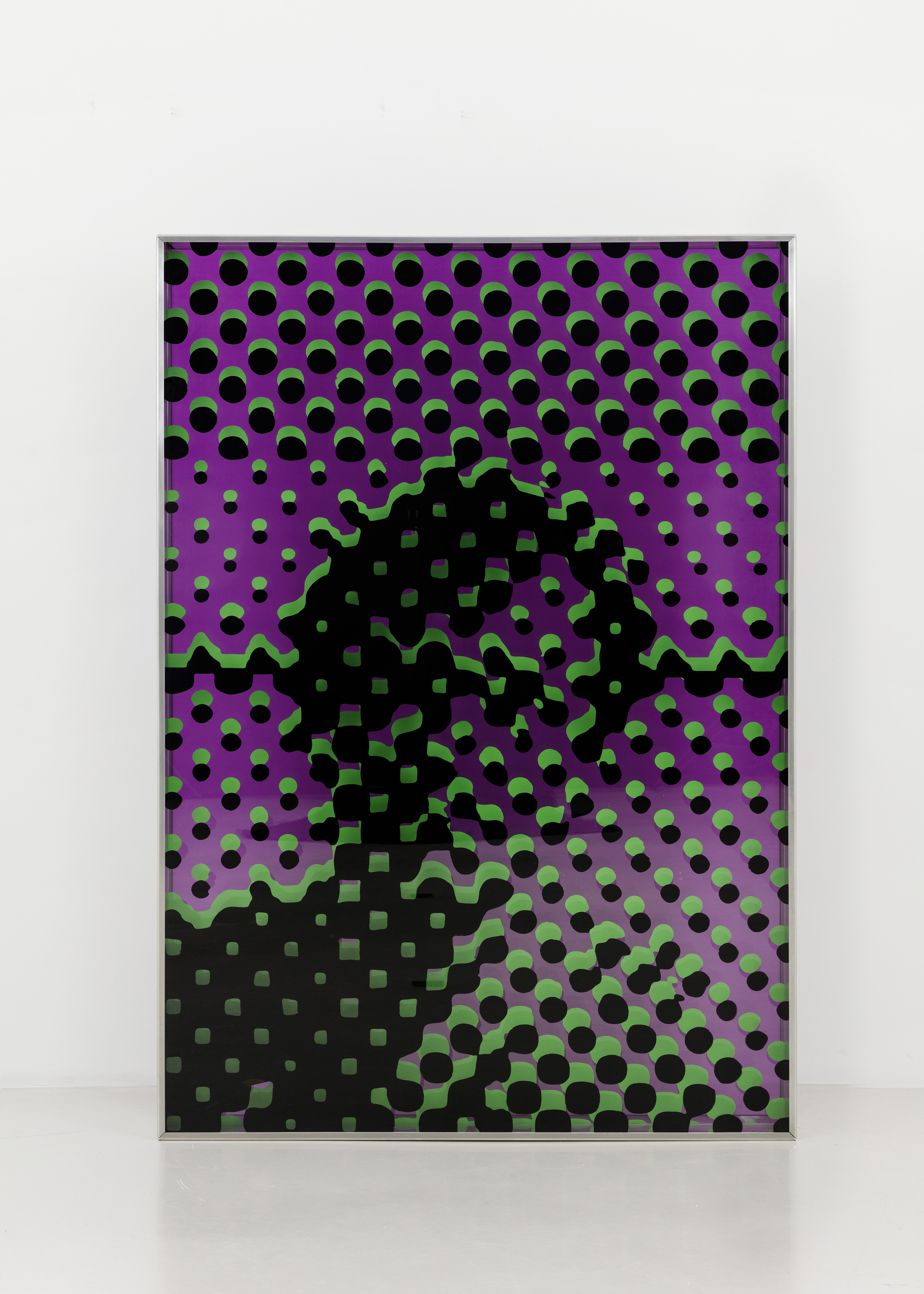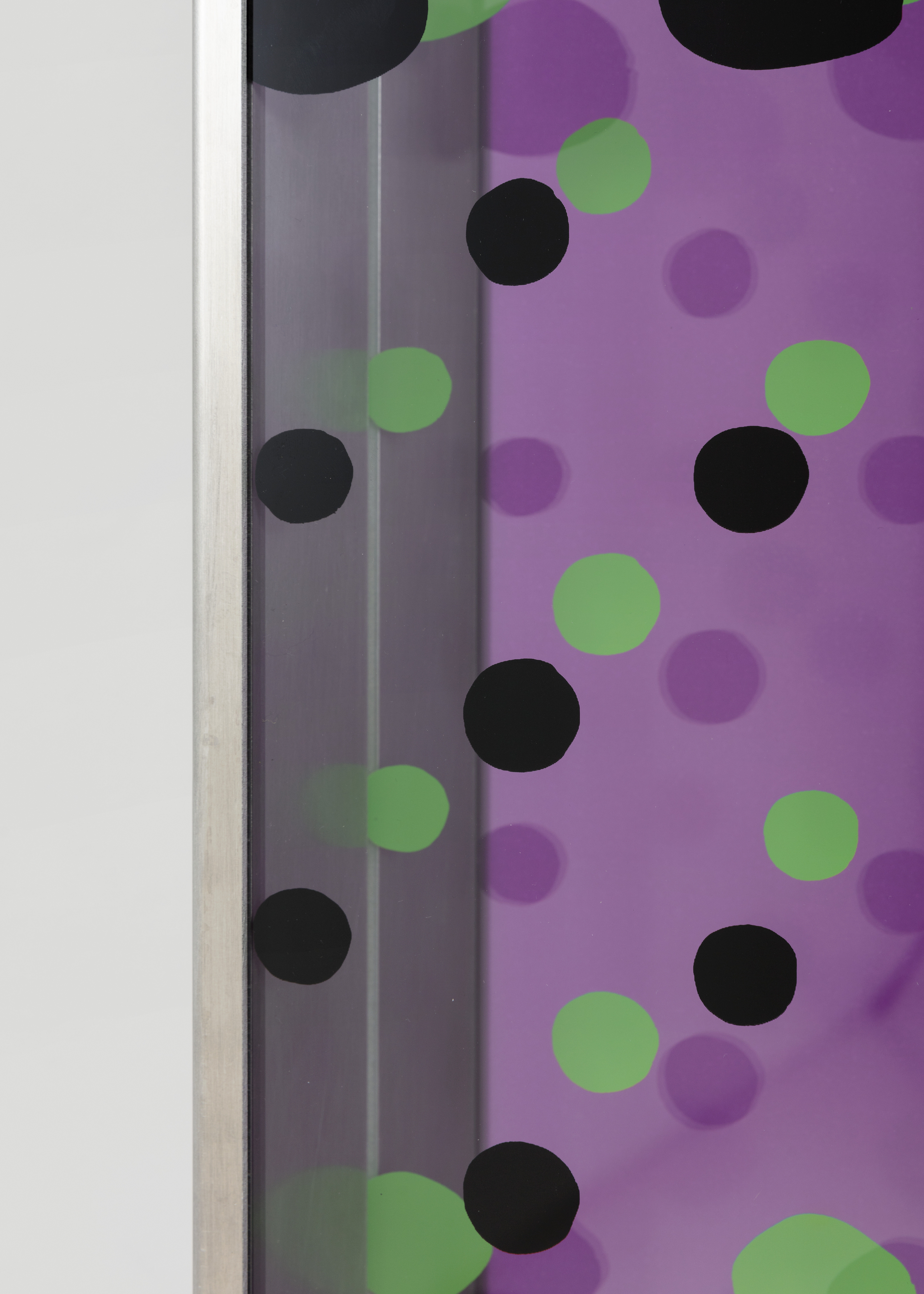 Sérigraphie sur 3 plaques en plexiglass, chassis en aluminum (mauve, vert, noir)