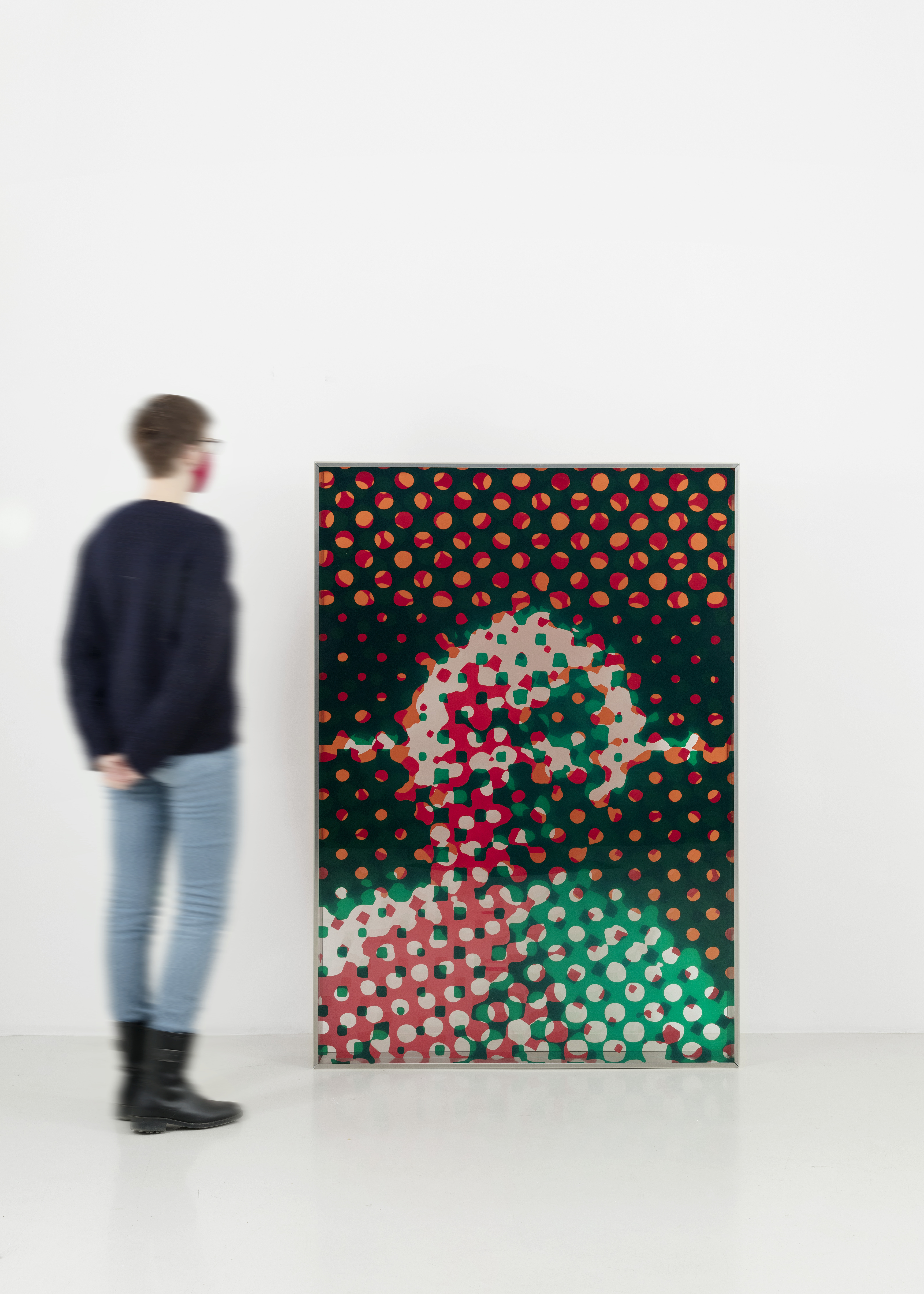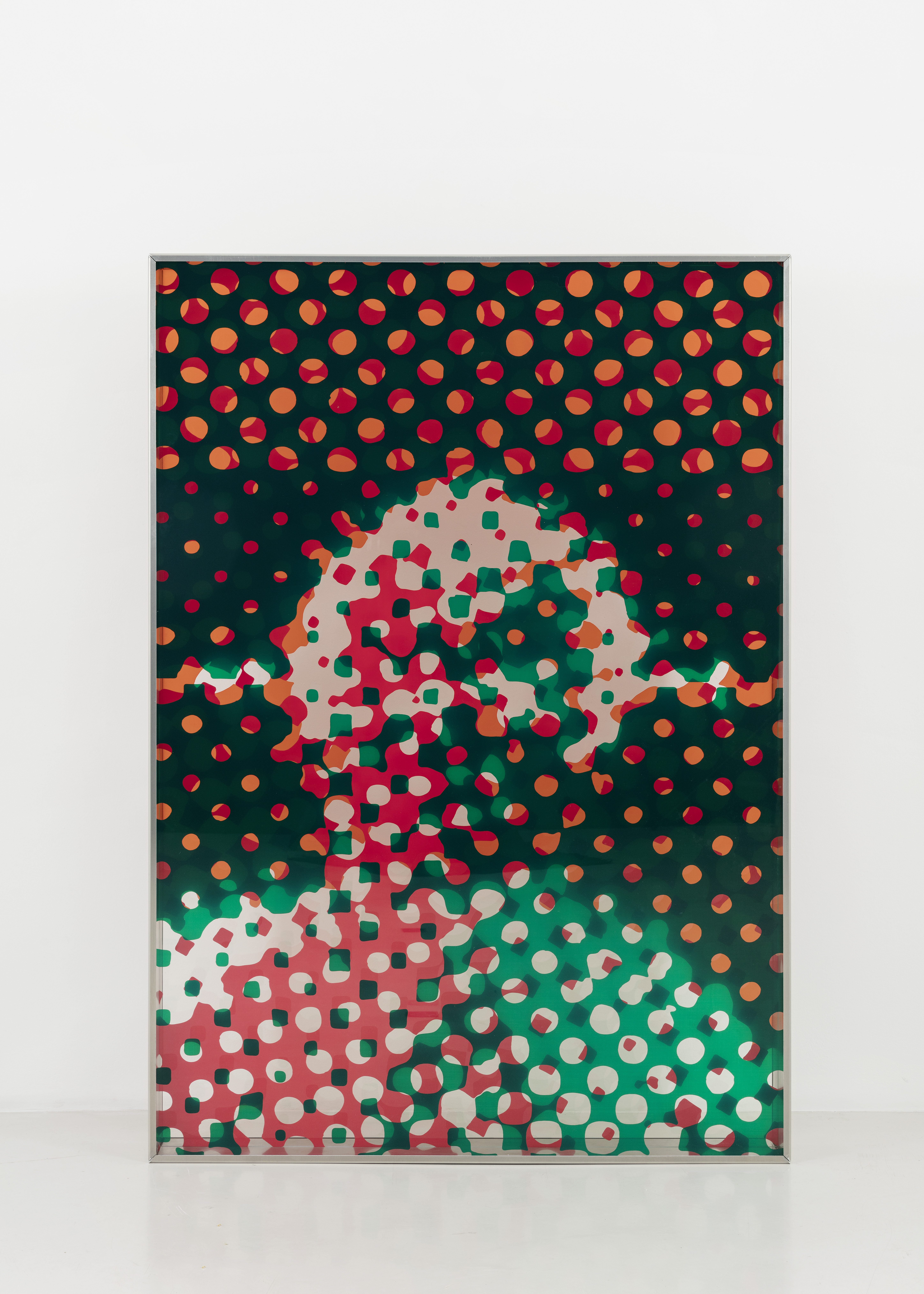 Sérigraphie sur 3 plaques en plexiglass, chassis en aluminum (vert, orange, rouge)