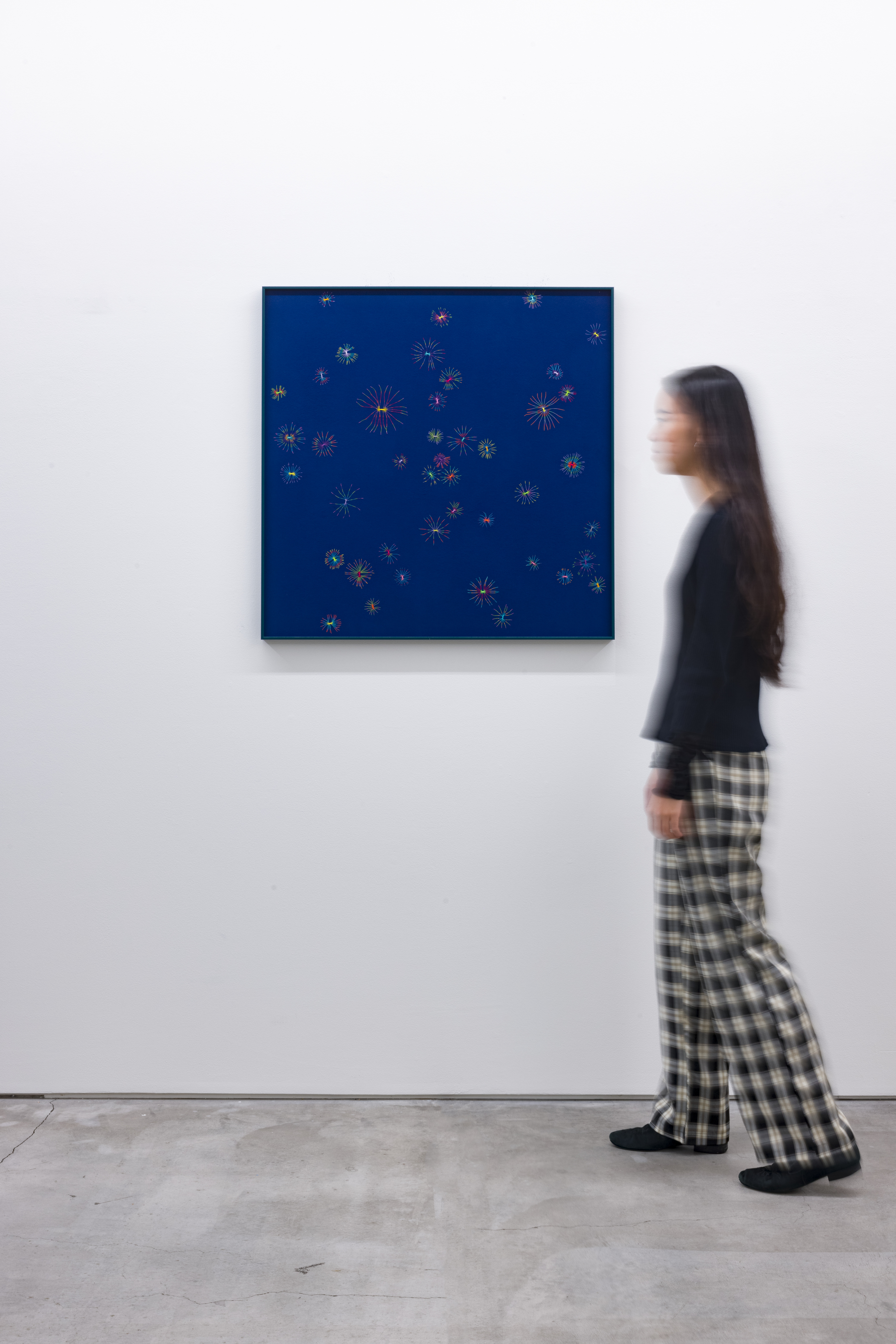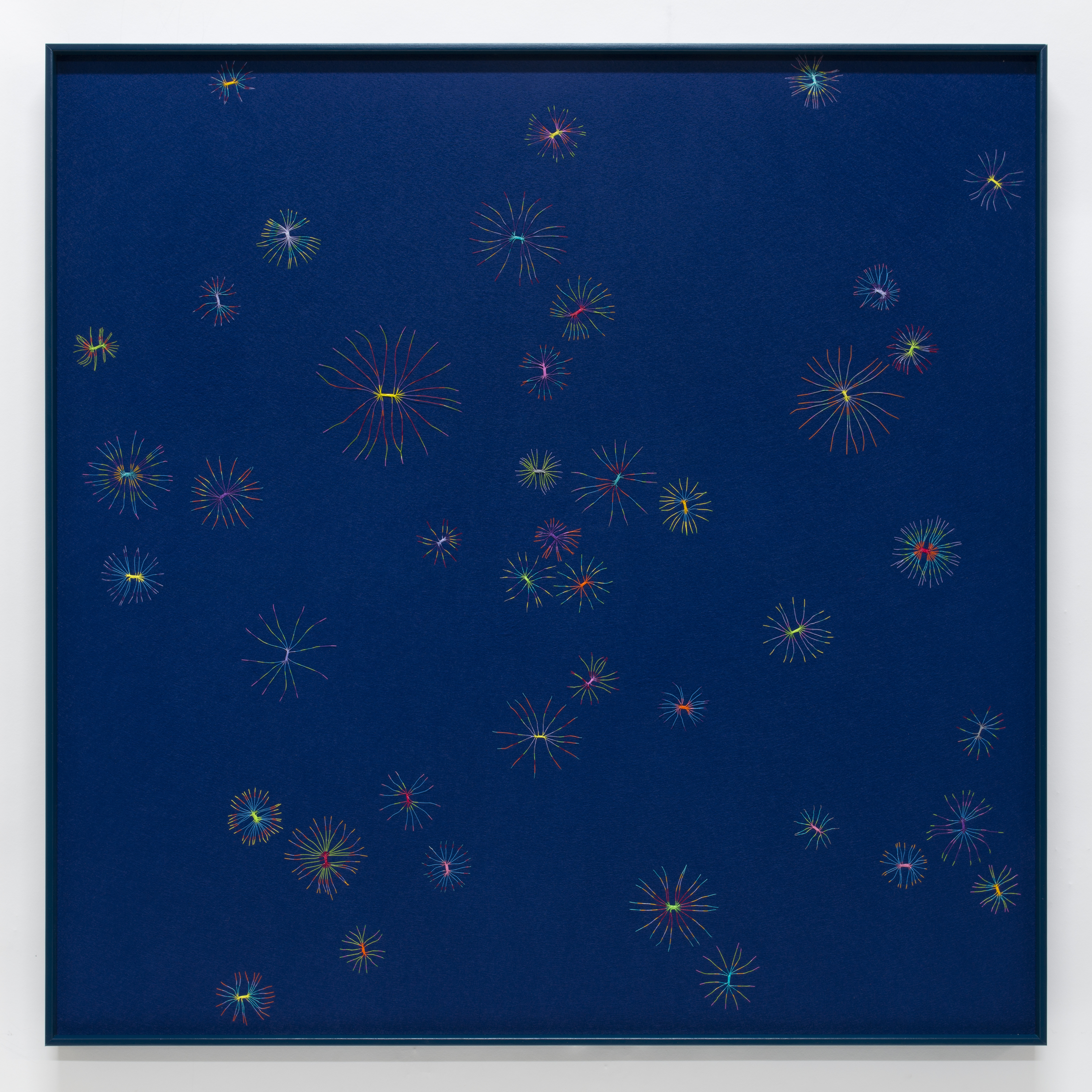 Copper thread, acrylic paint, fabric and frame