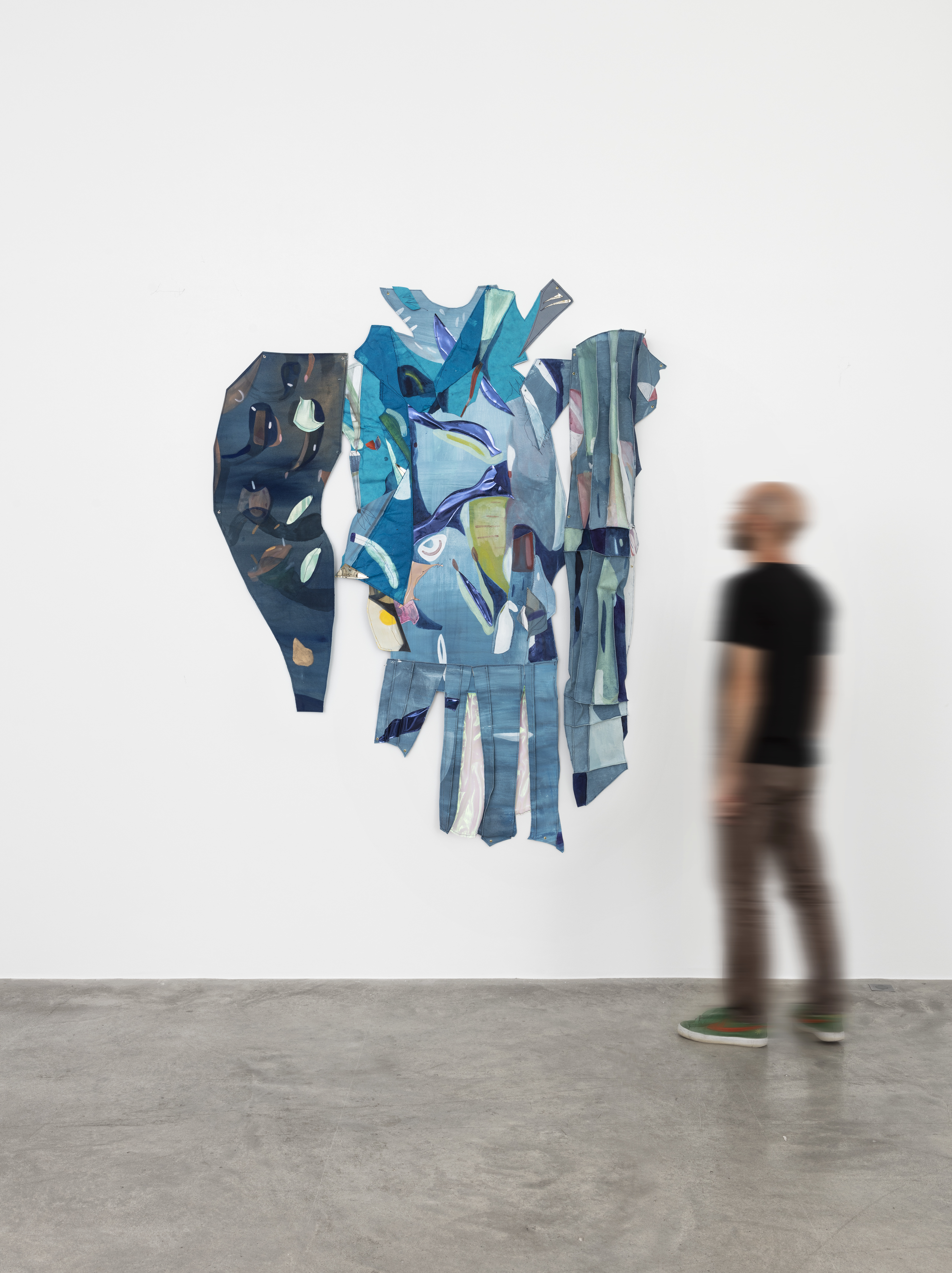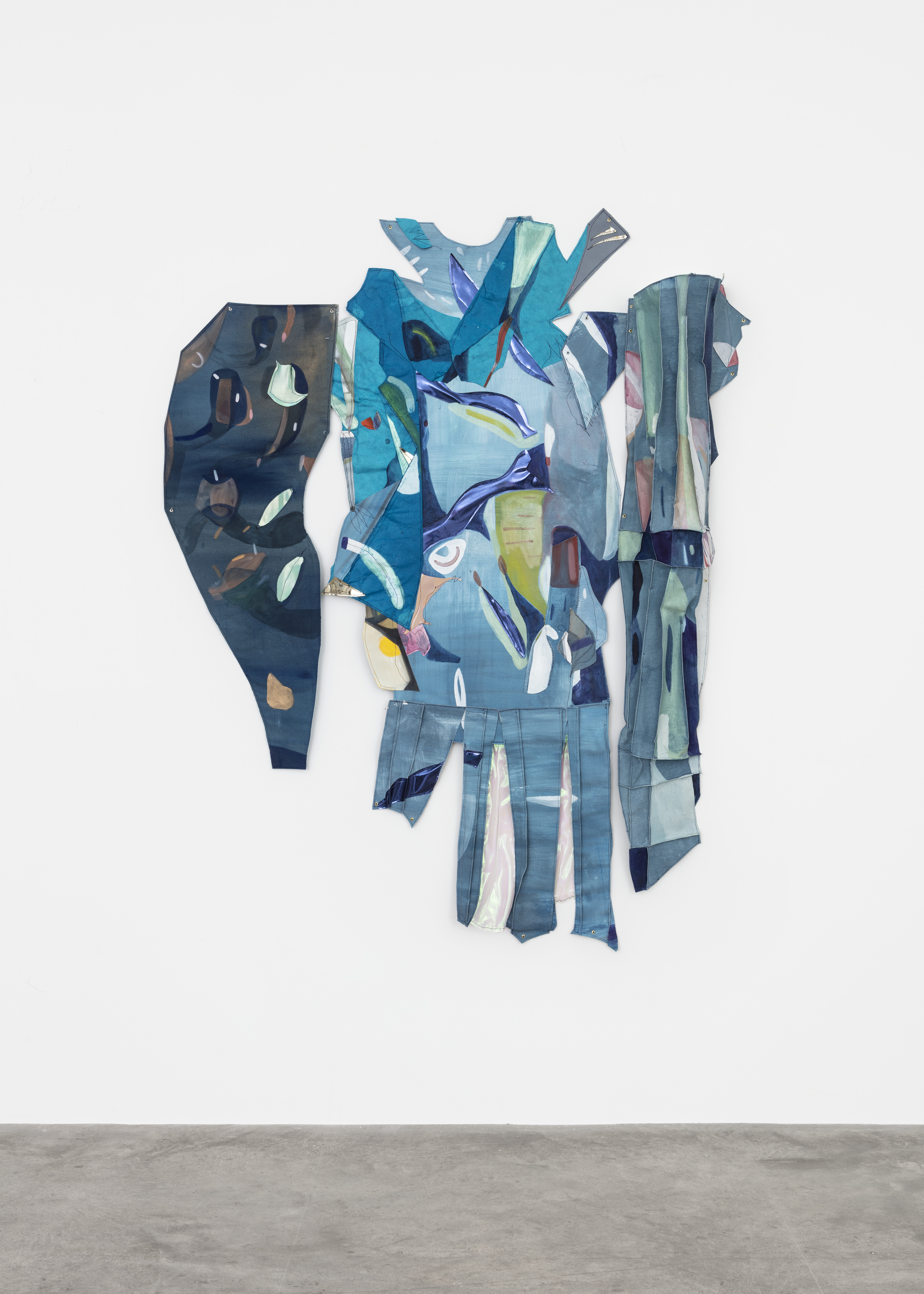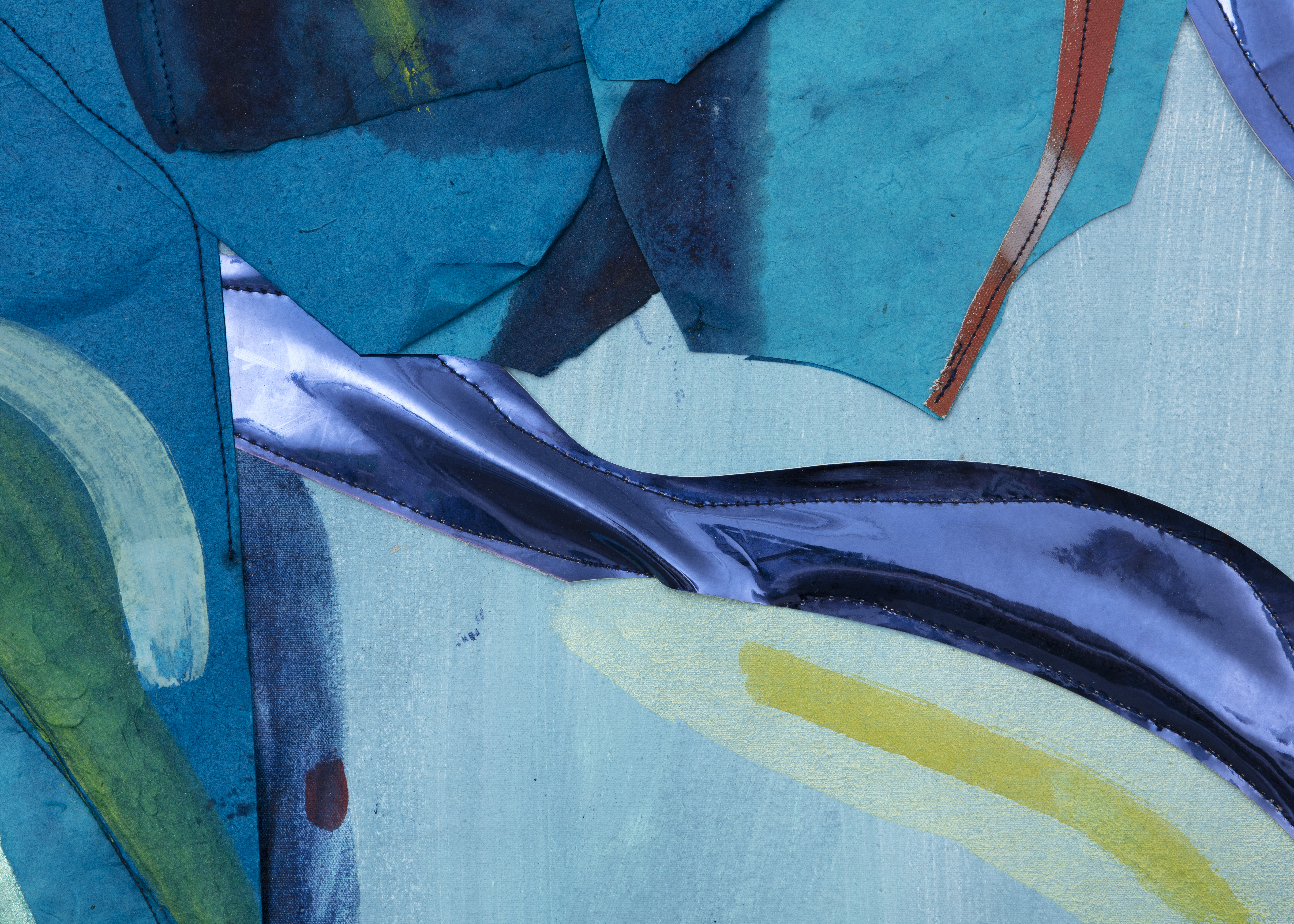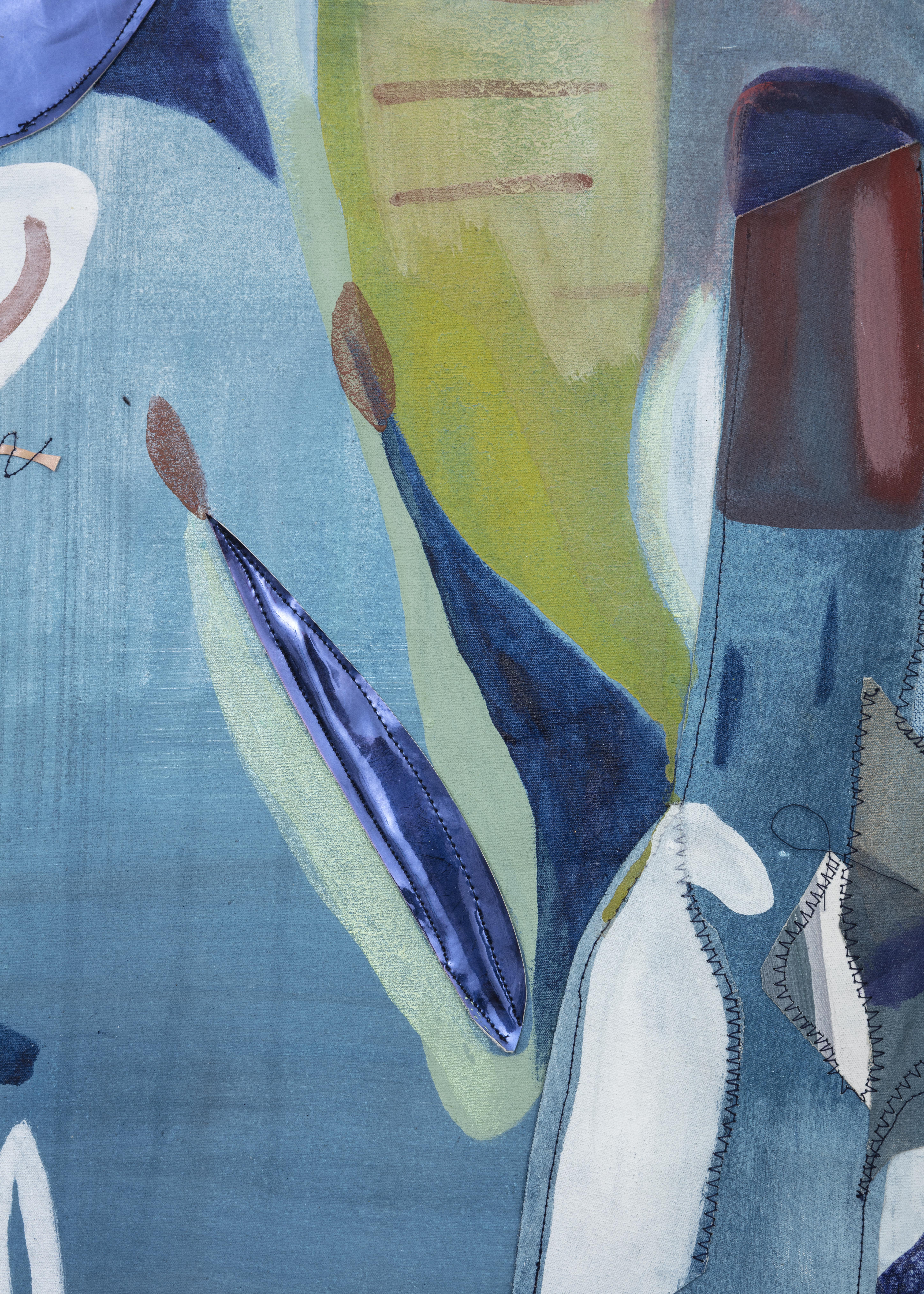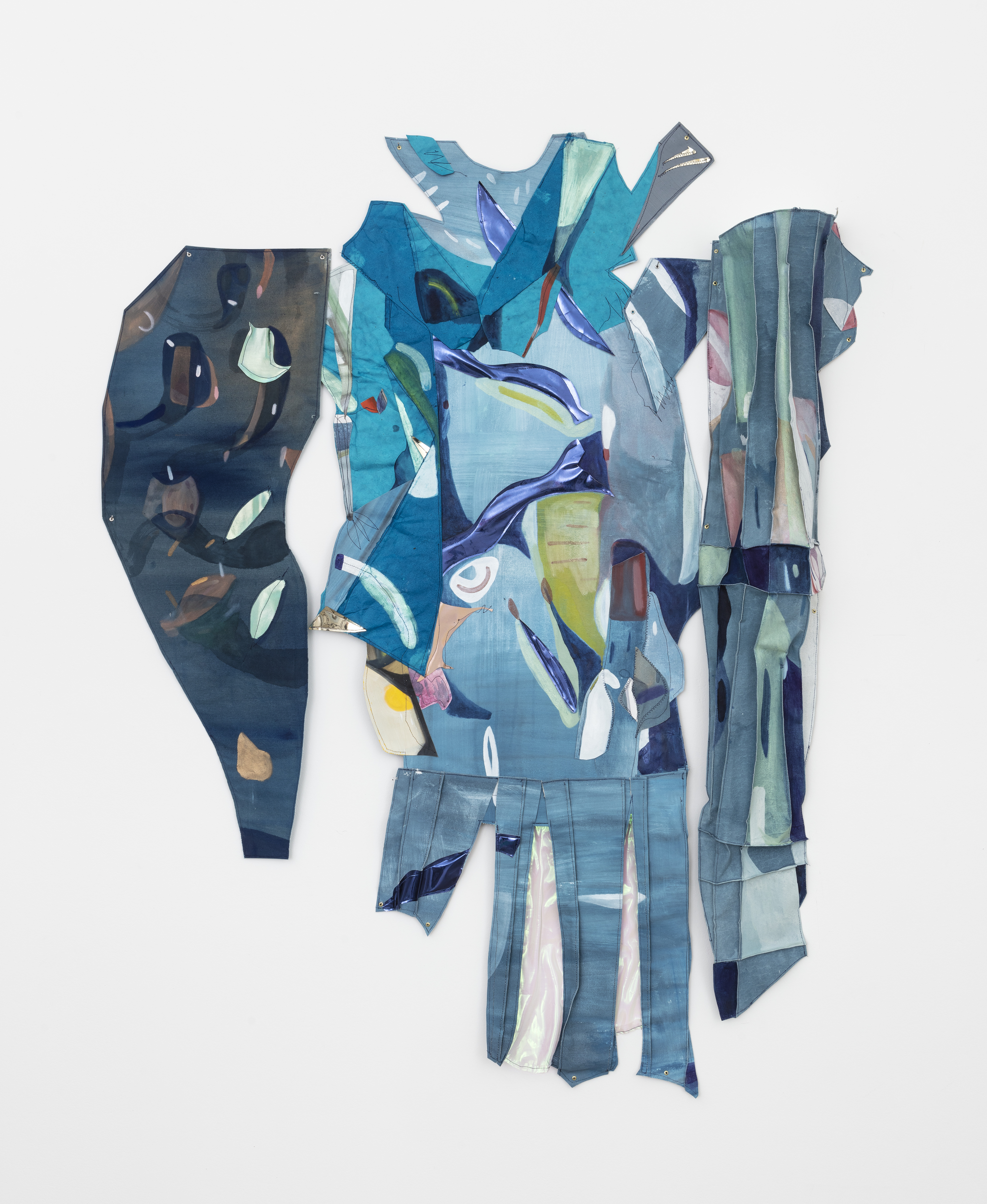 Huile et aquarelle sur toile, vinyle, tissu irisé