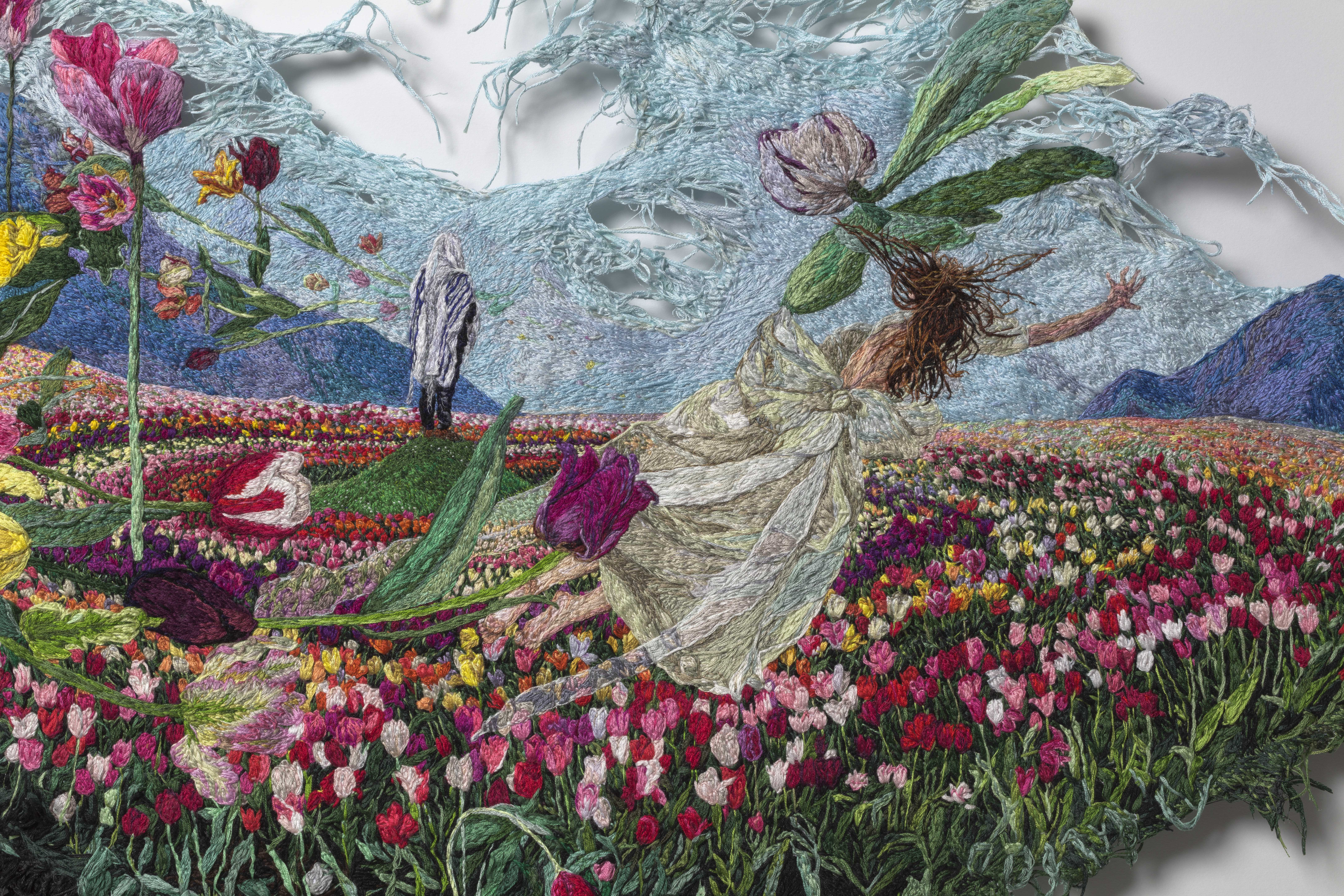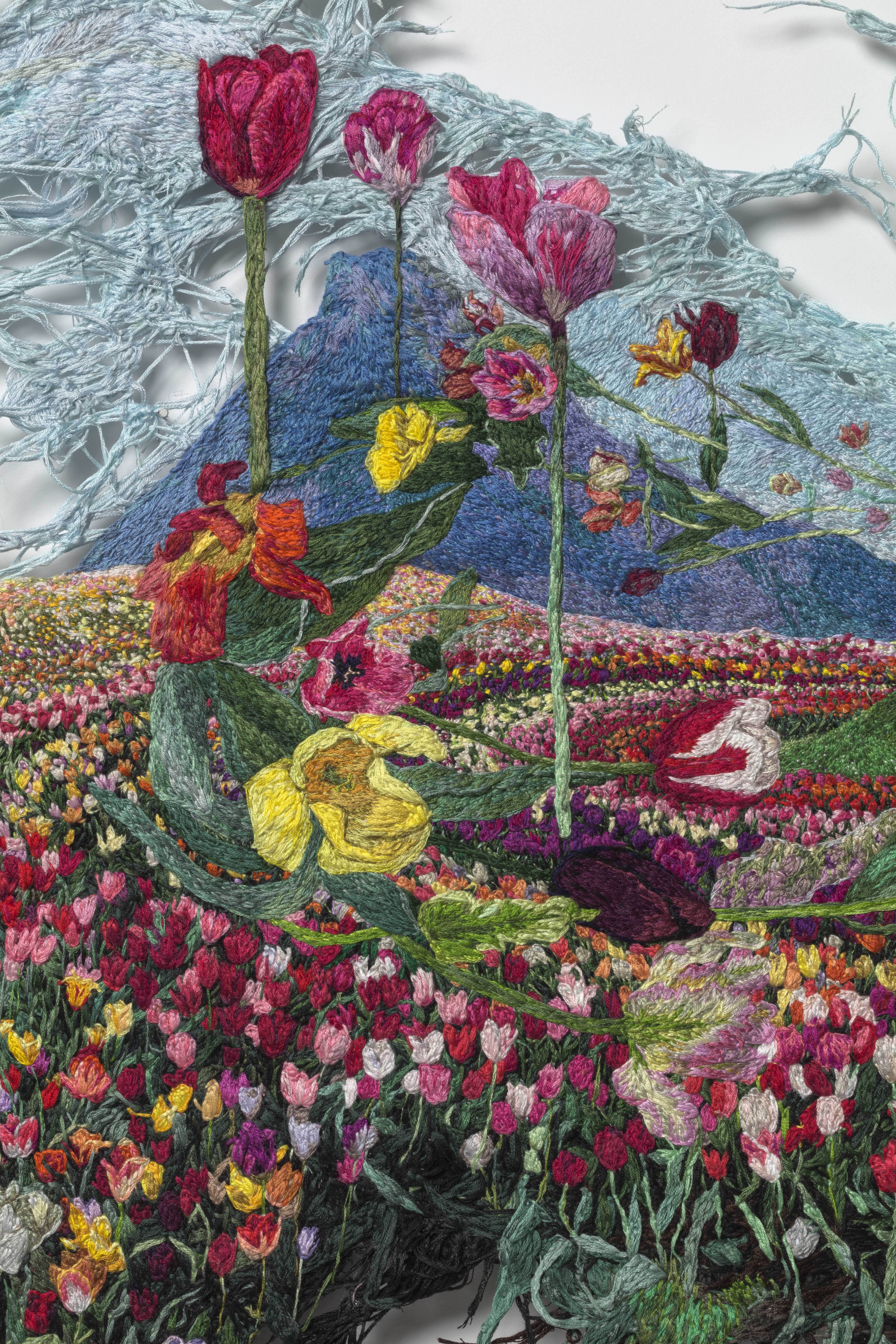 Embroidery thread, fabric, acrylic, aluminum