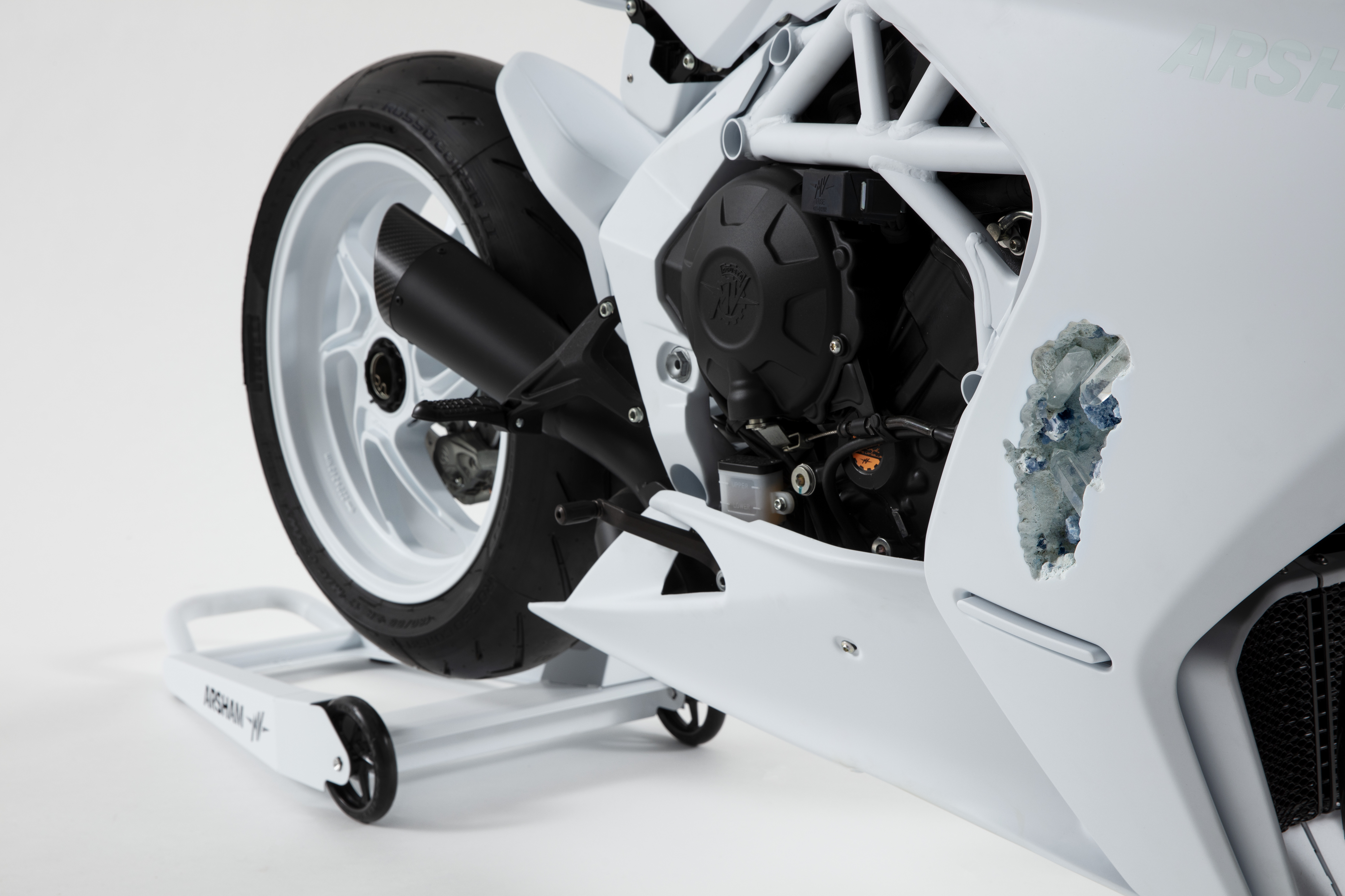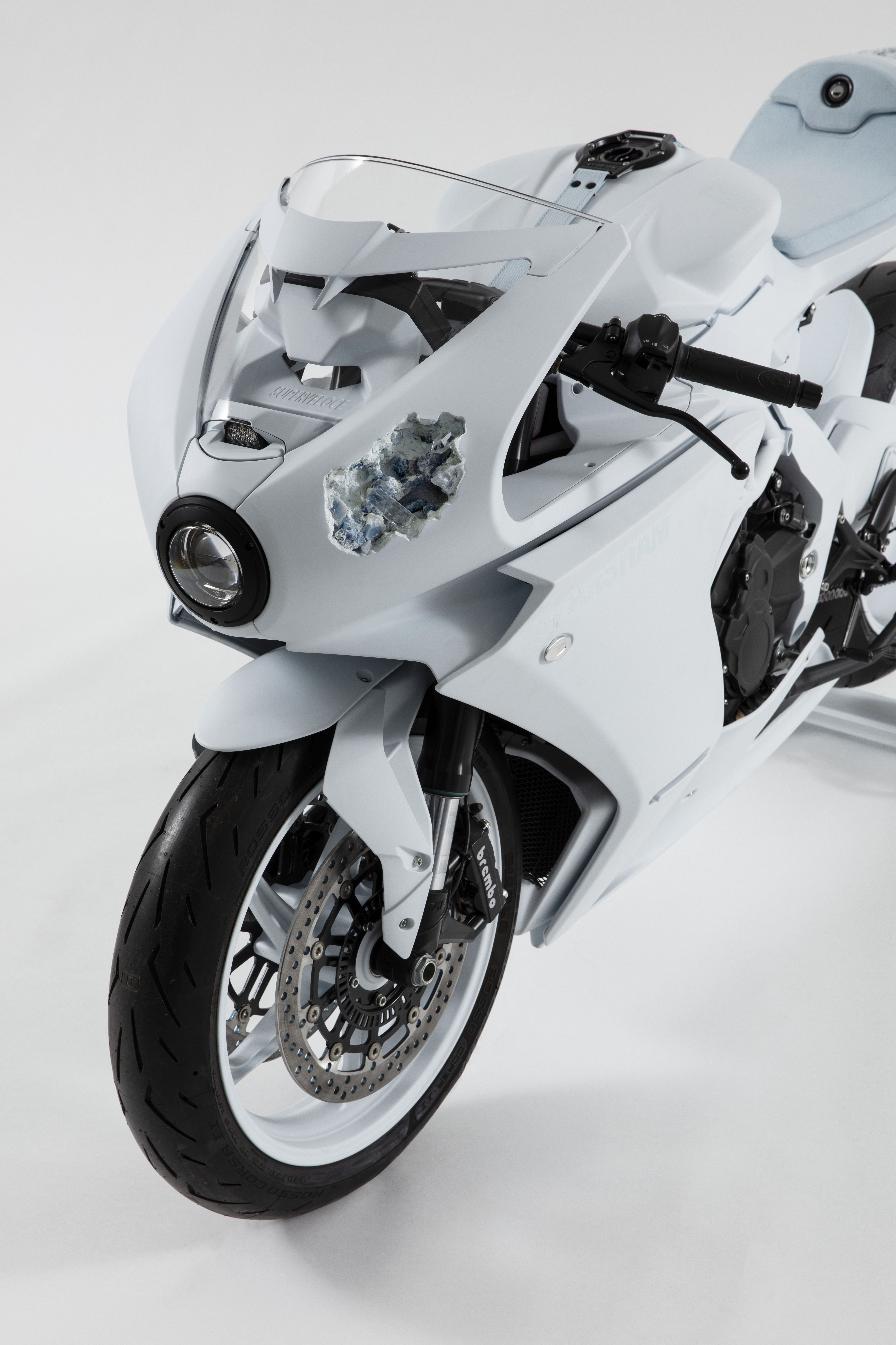 Superveloce 800, blue calcite, quartz, hydrostone
