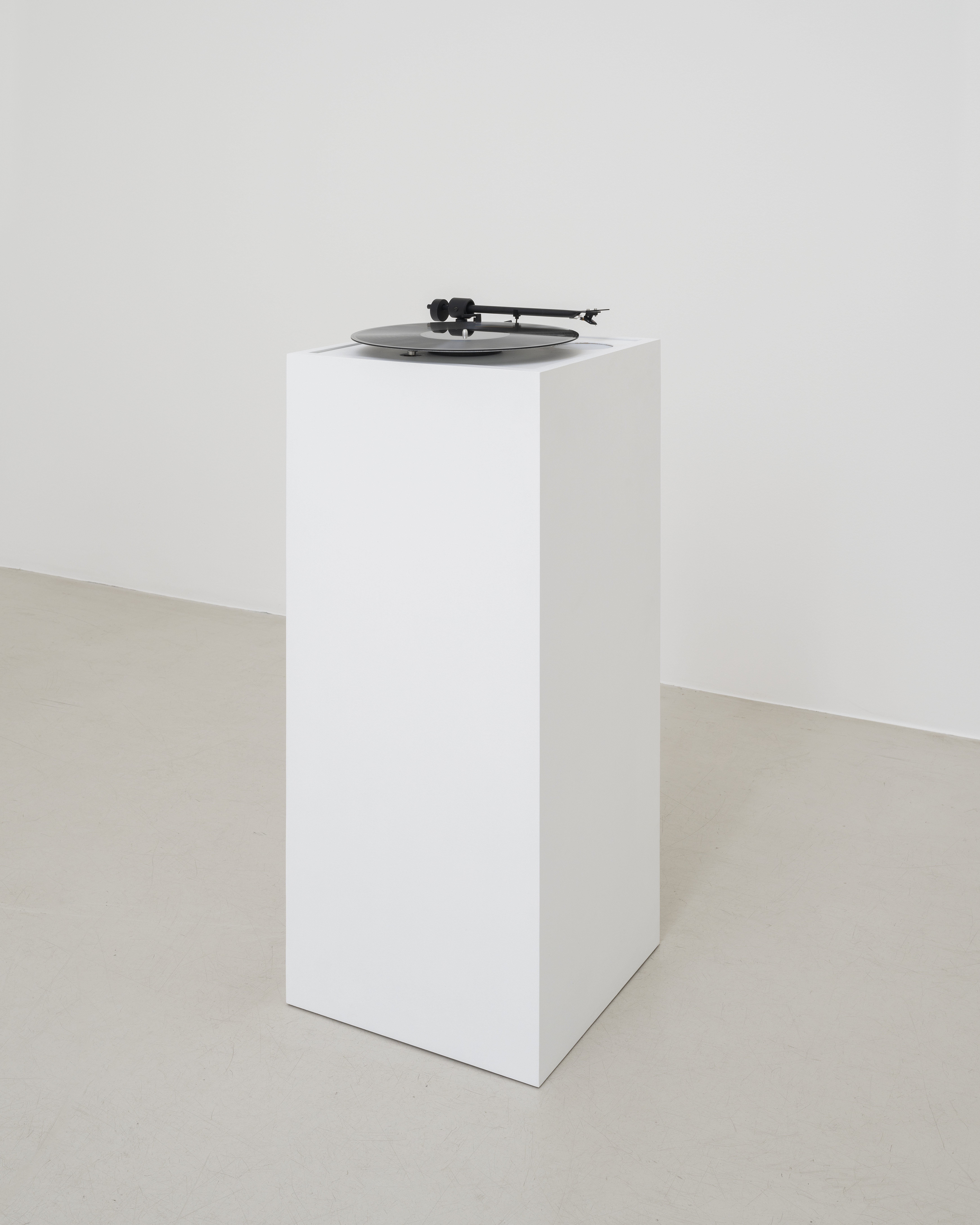 Monophonic microgroove cut on vinyl, autonomous playback system, wooden structure Duration: 18 min