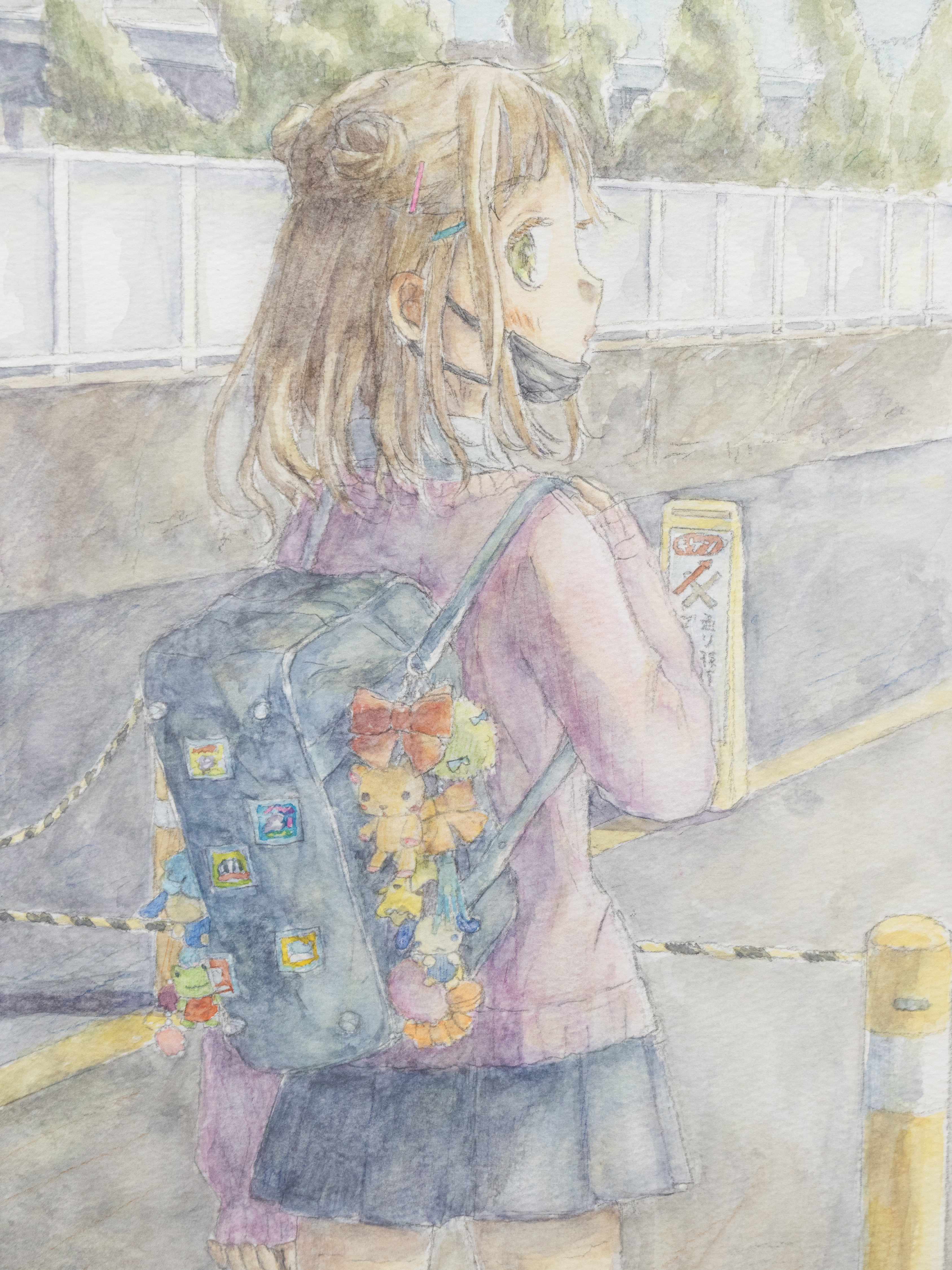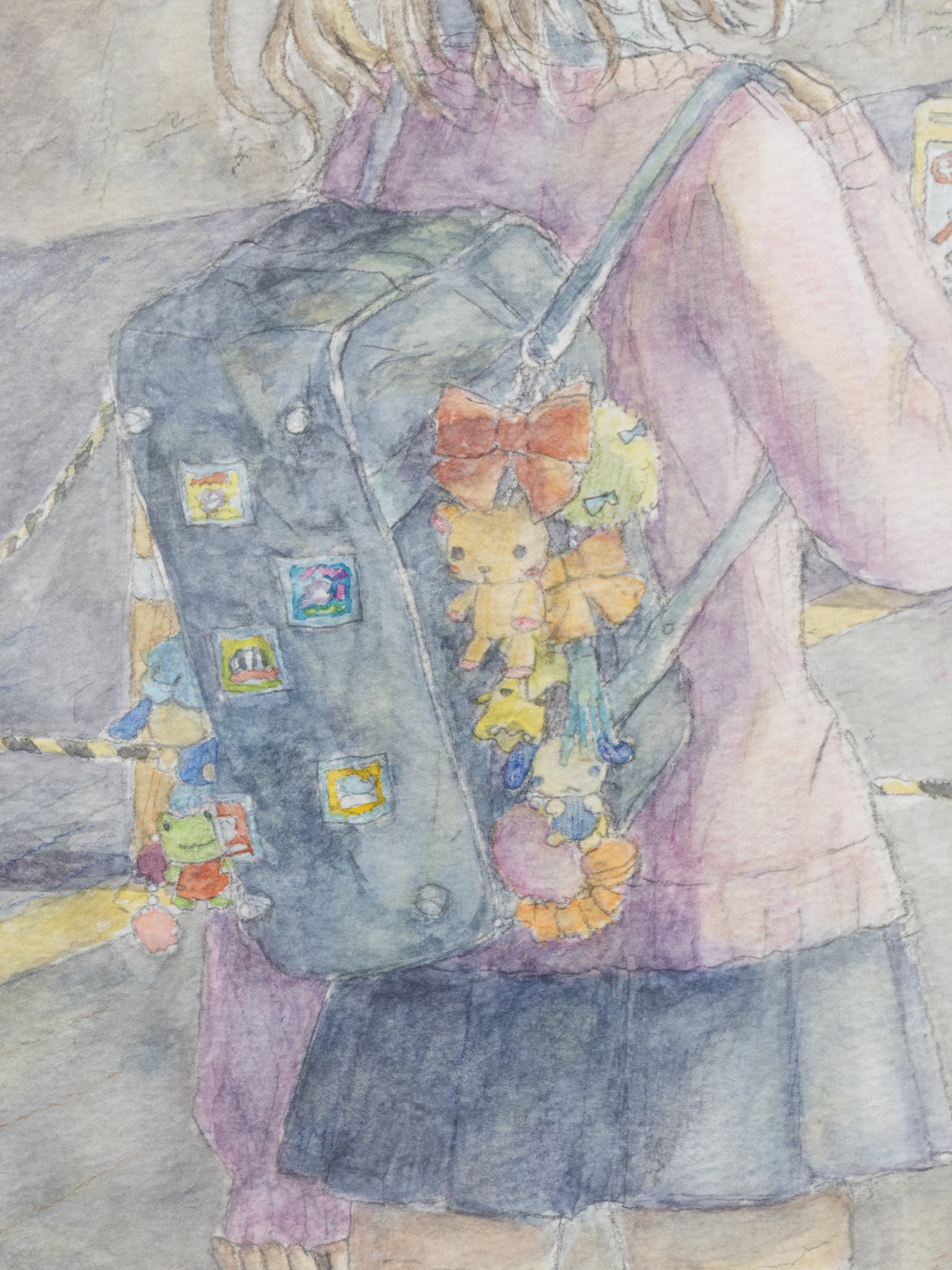 Watercolor, color pencil, and pencil on paper