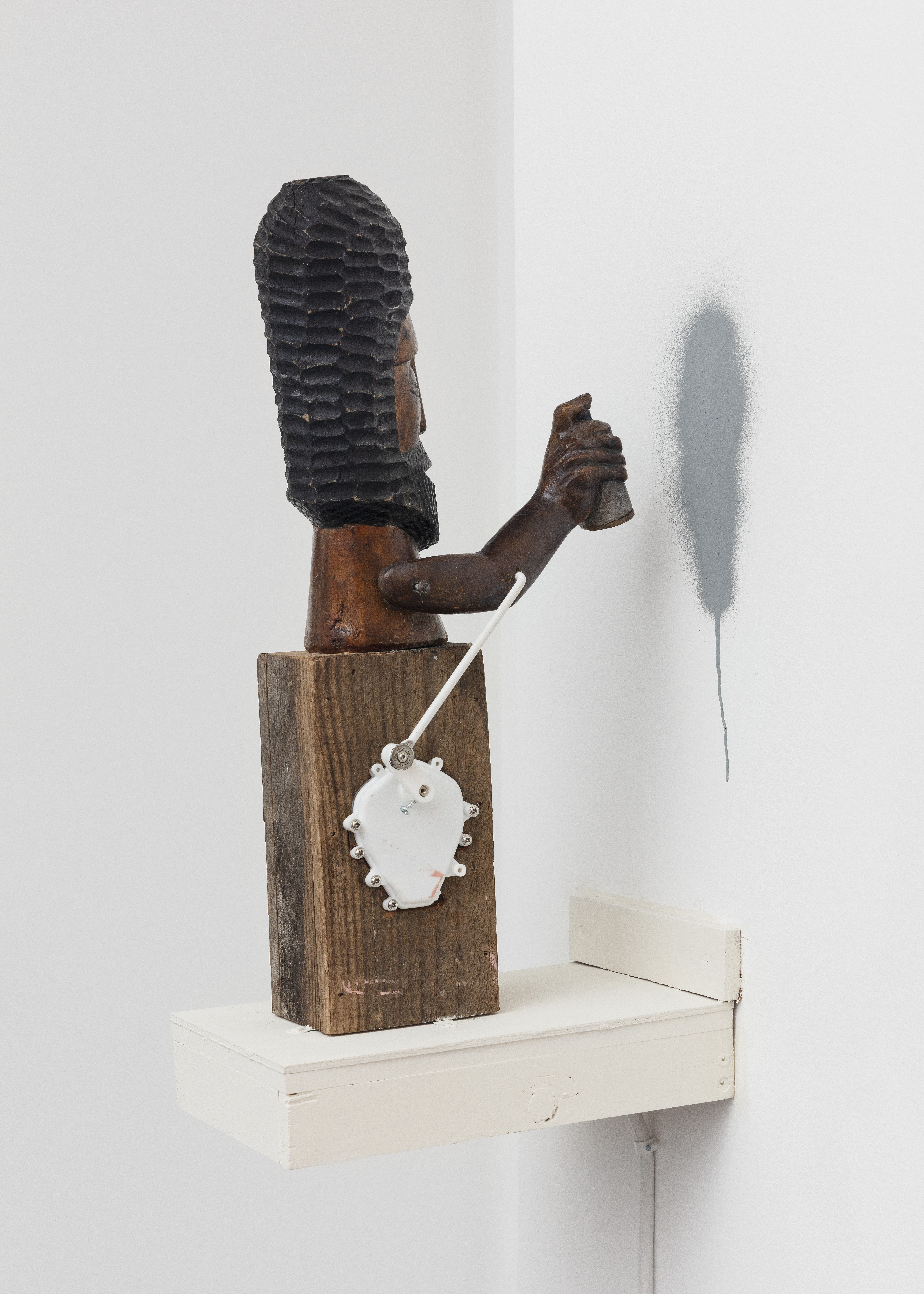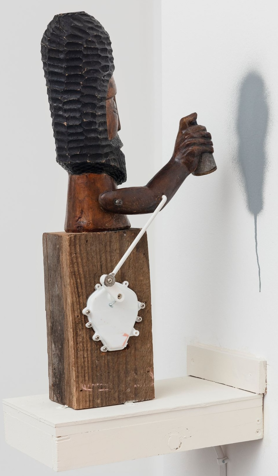 Wooden carved sculpture and motor