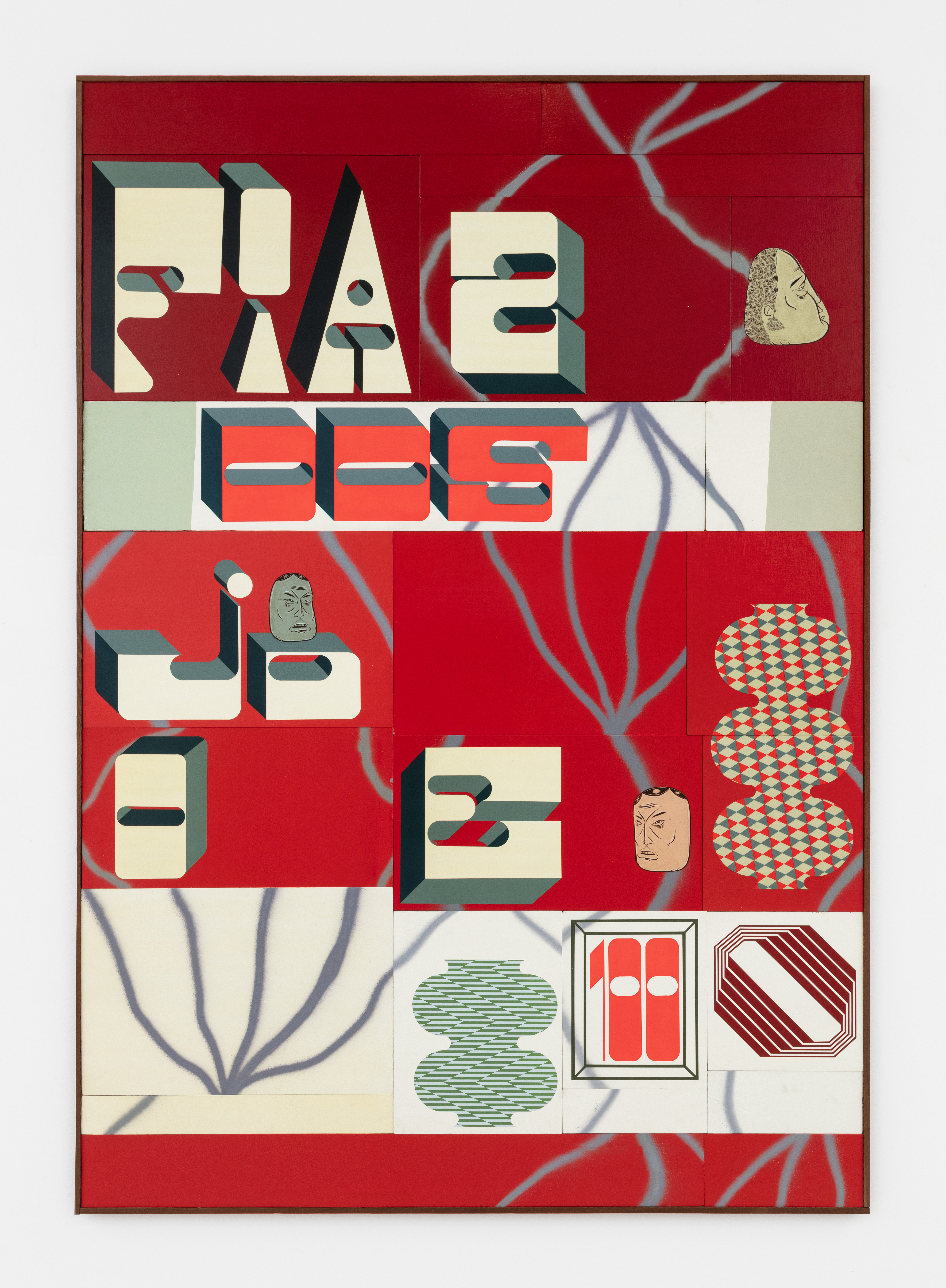 Acrylic, gouache, and aerosol paint on panel; 23 elements