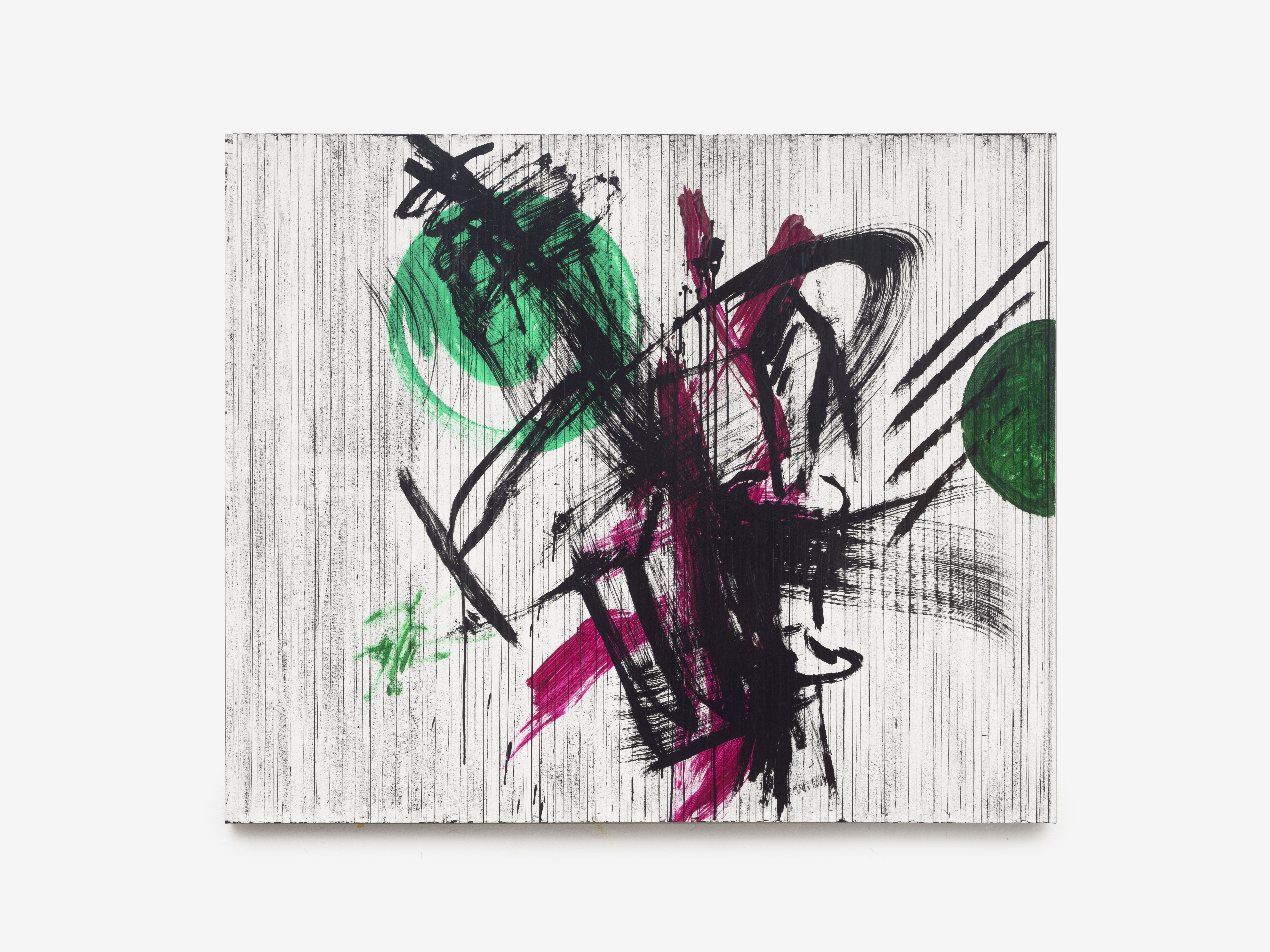 Audio cassette tape, adhesive tape, acrylic on canvas