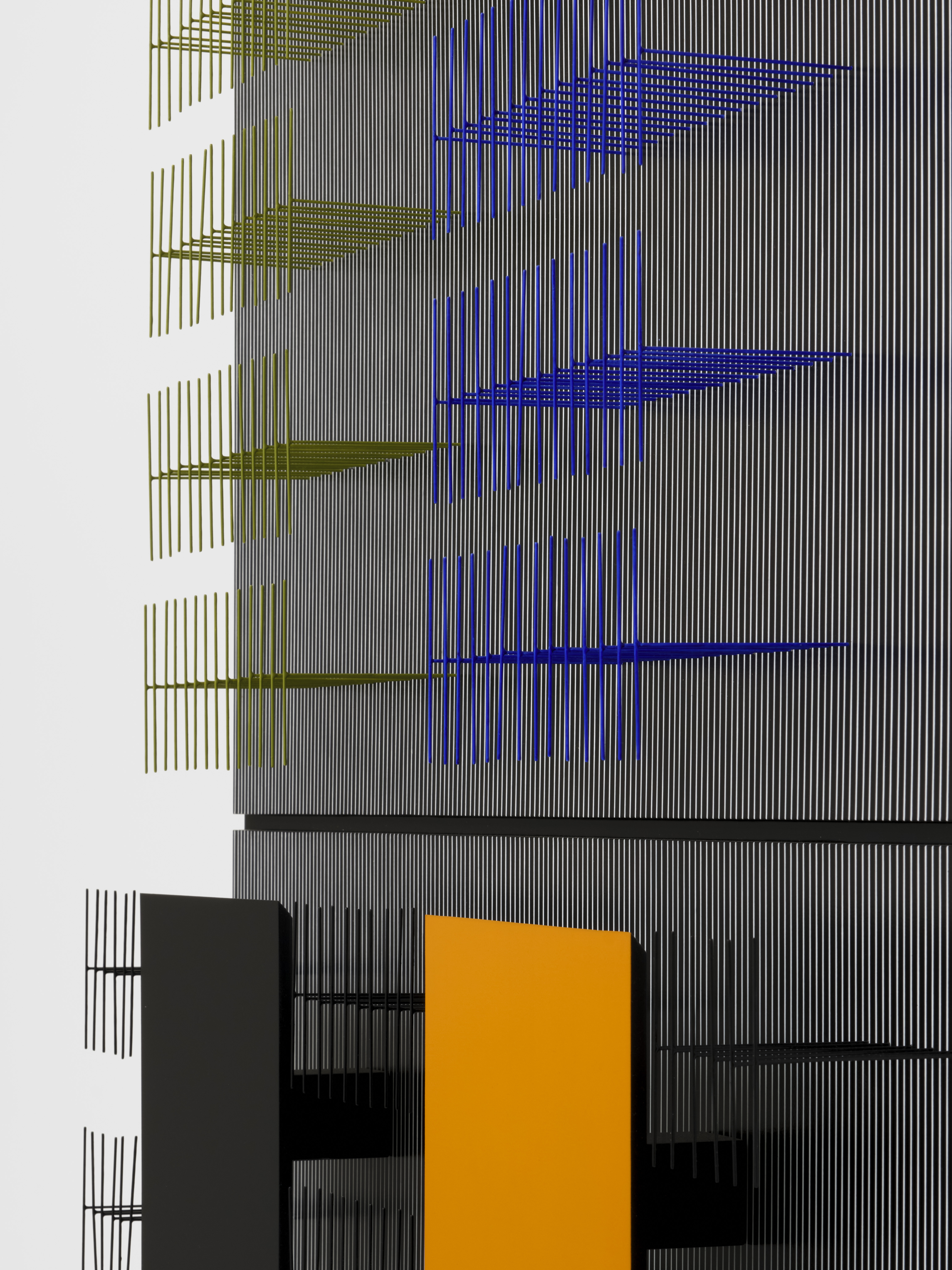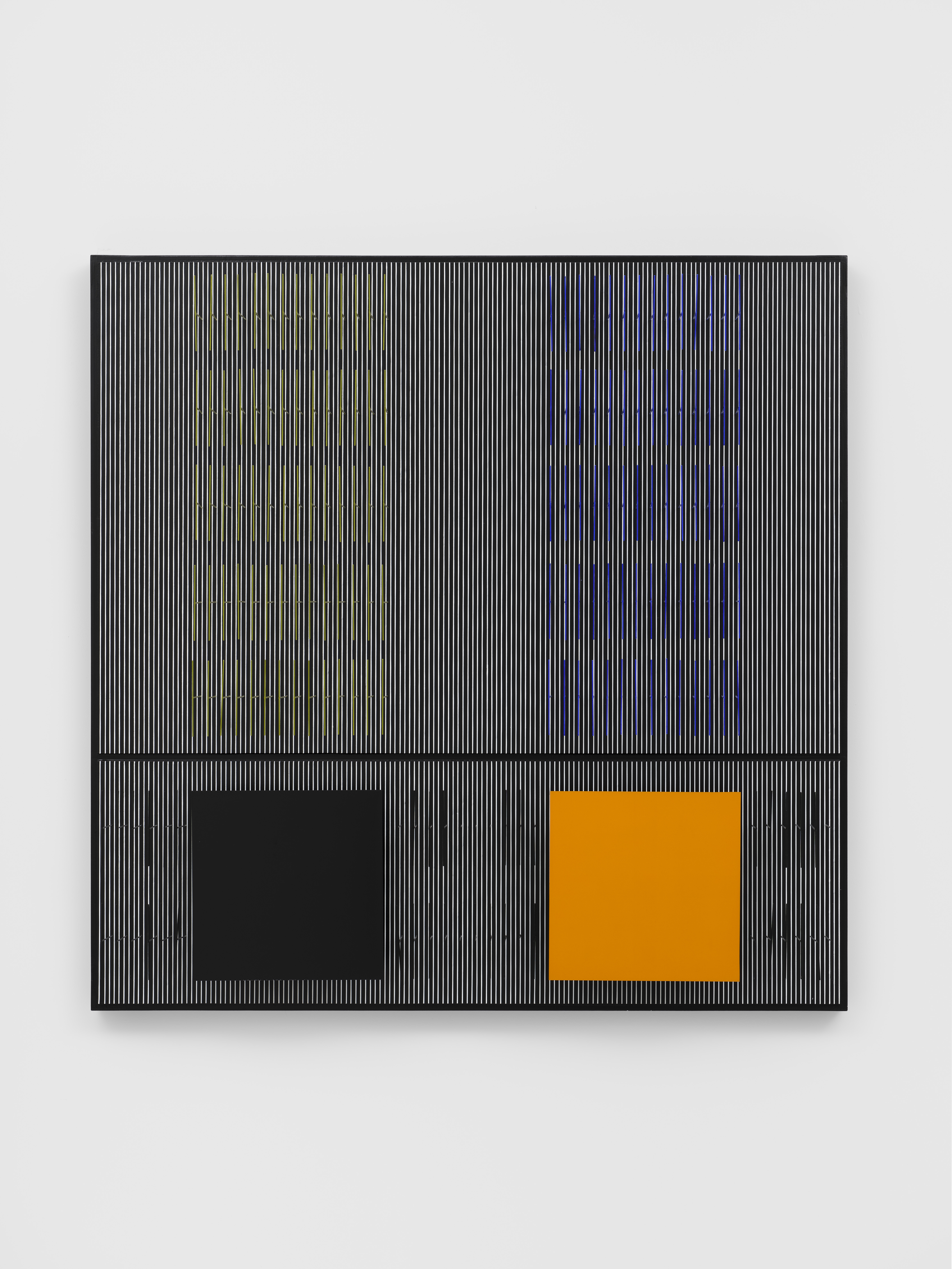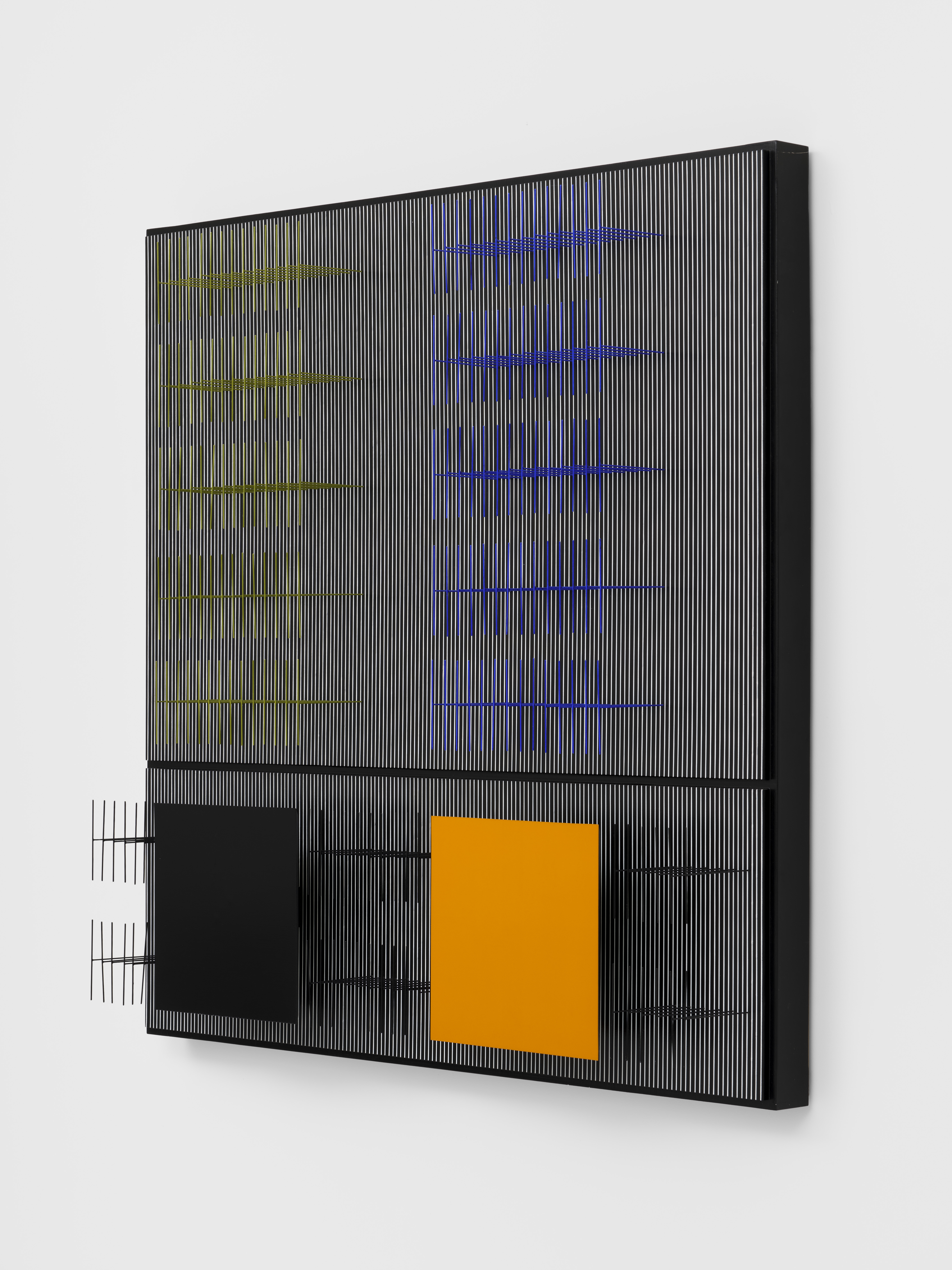Painted wood and metal relief