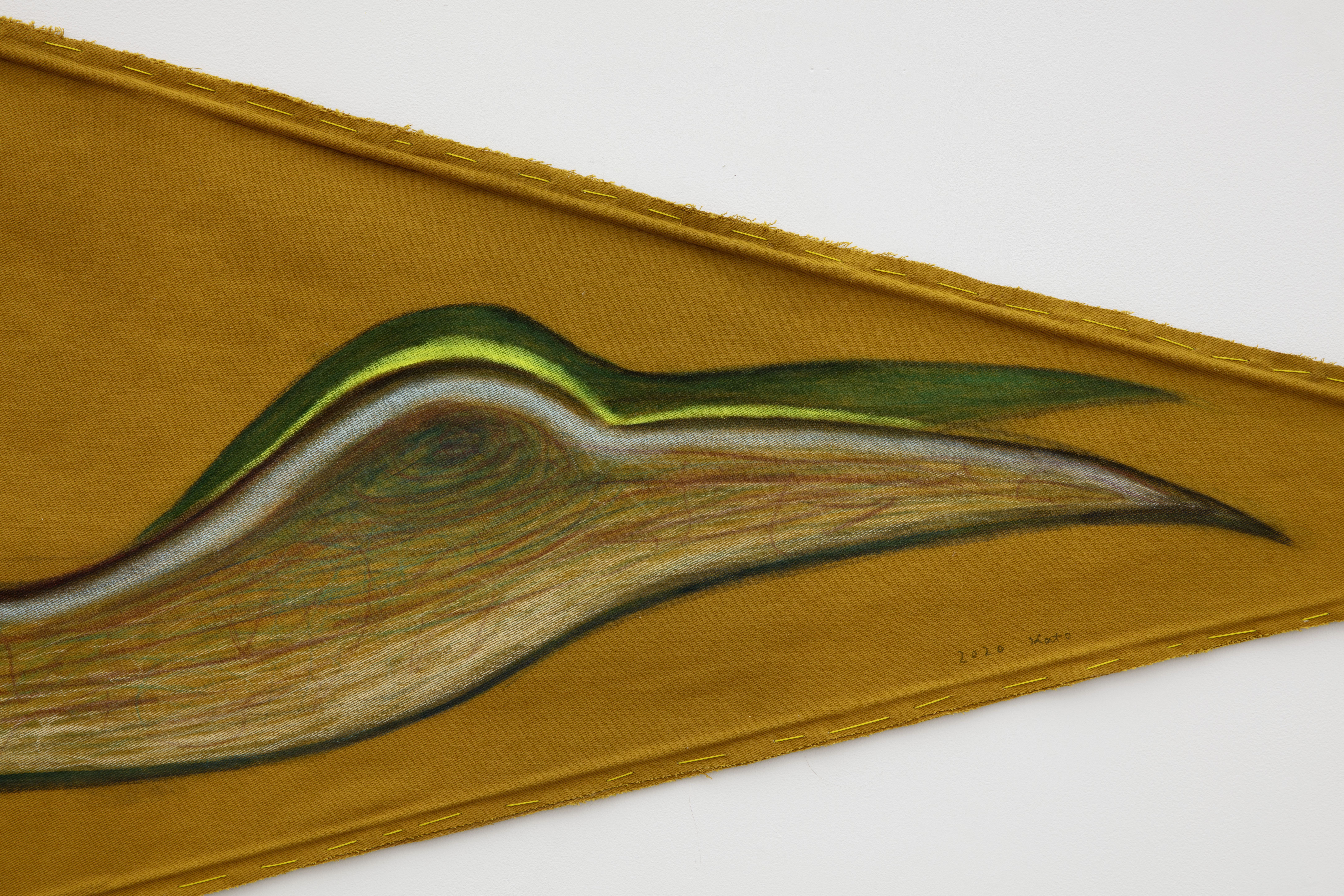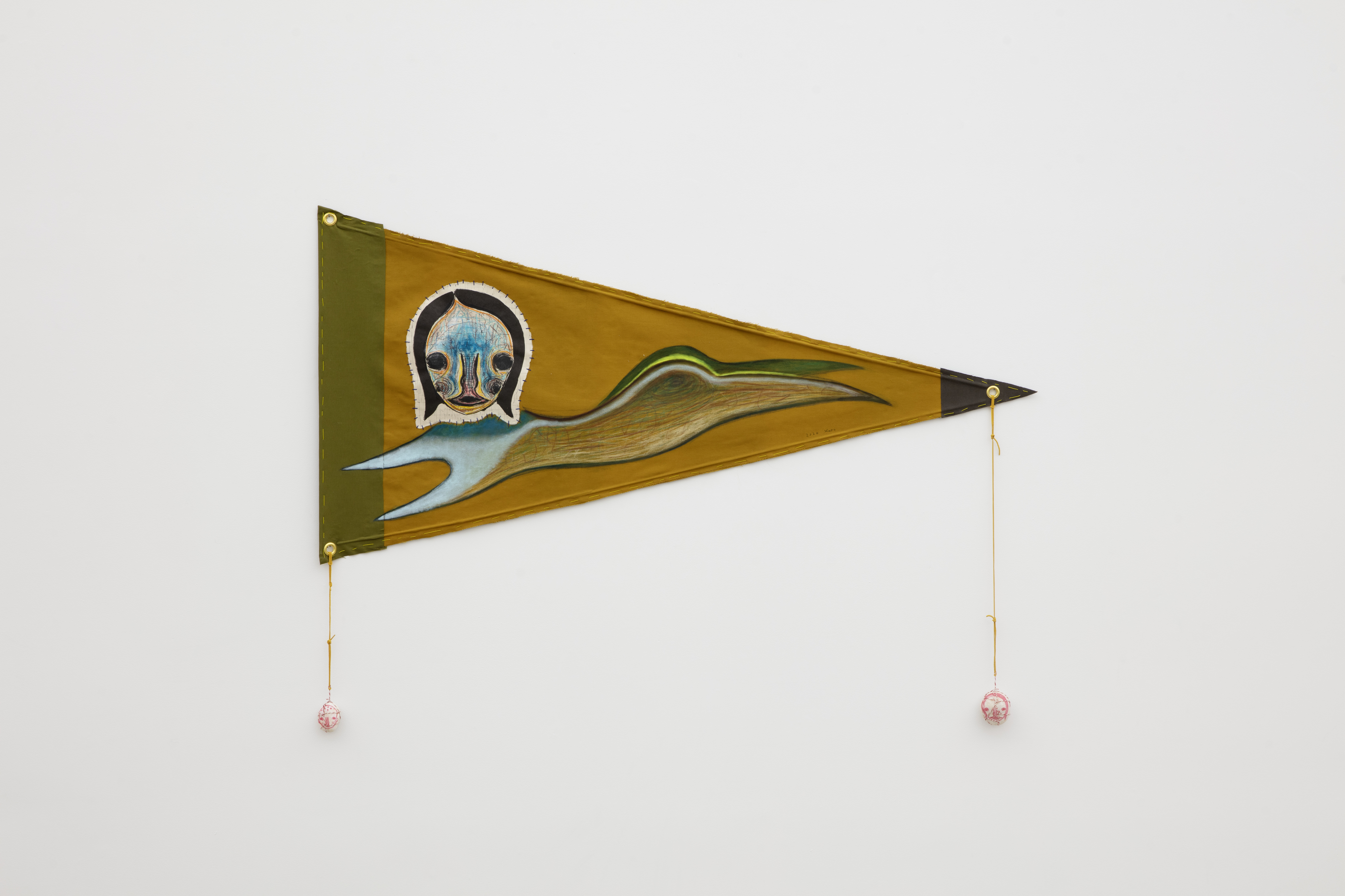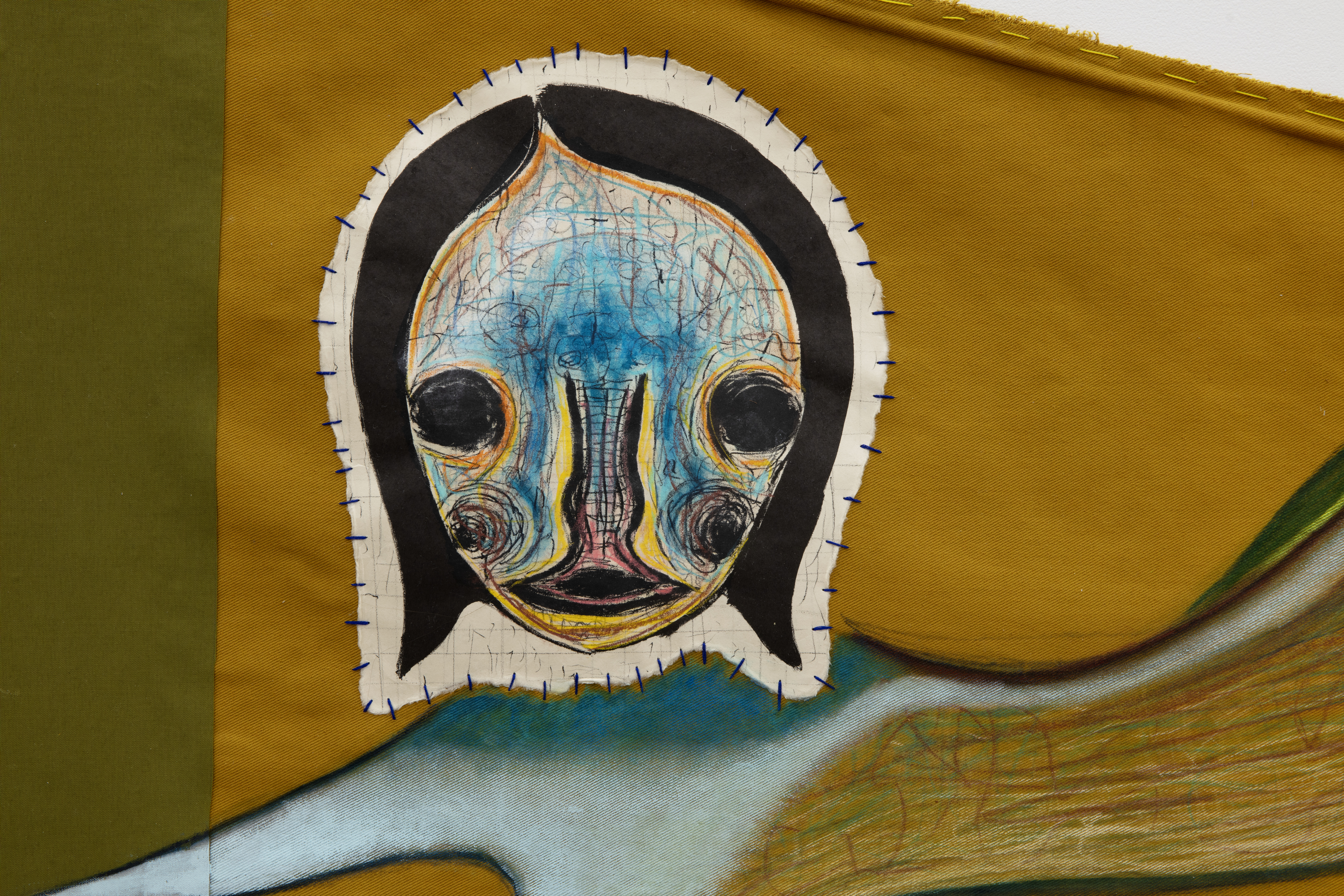 Fabric, lithograph, acrylic, pastel, embroidery, wood, leather, thread, stone