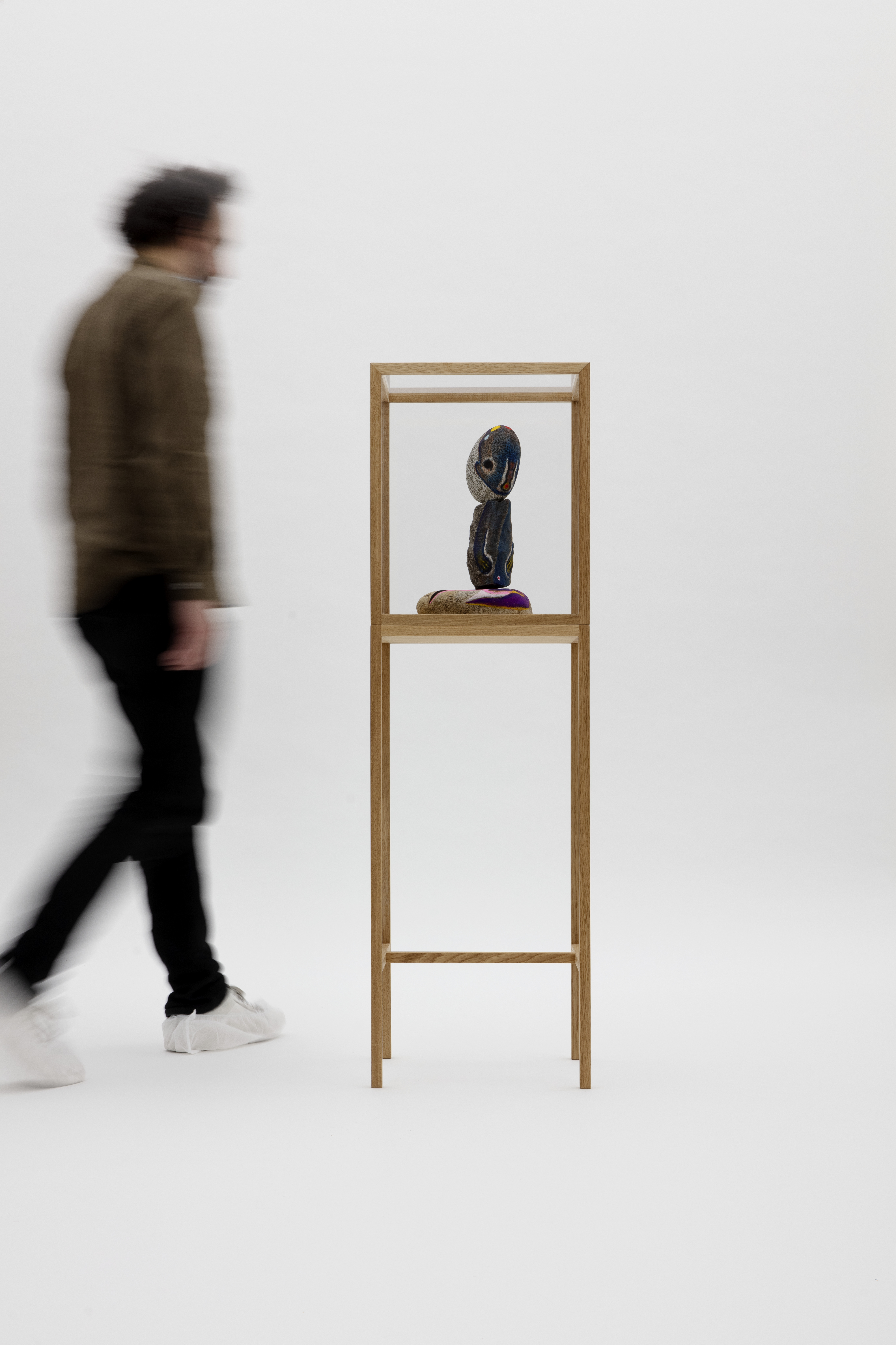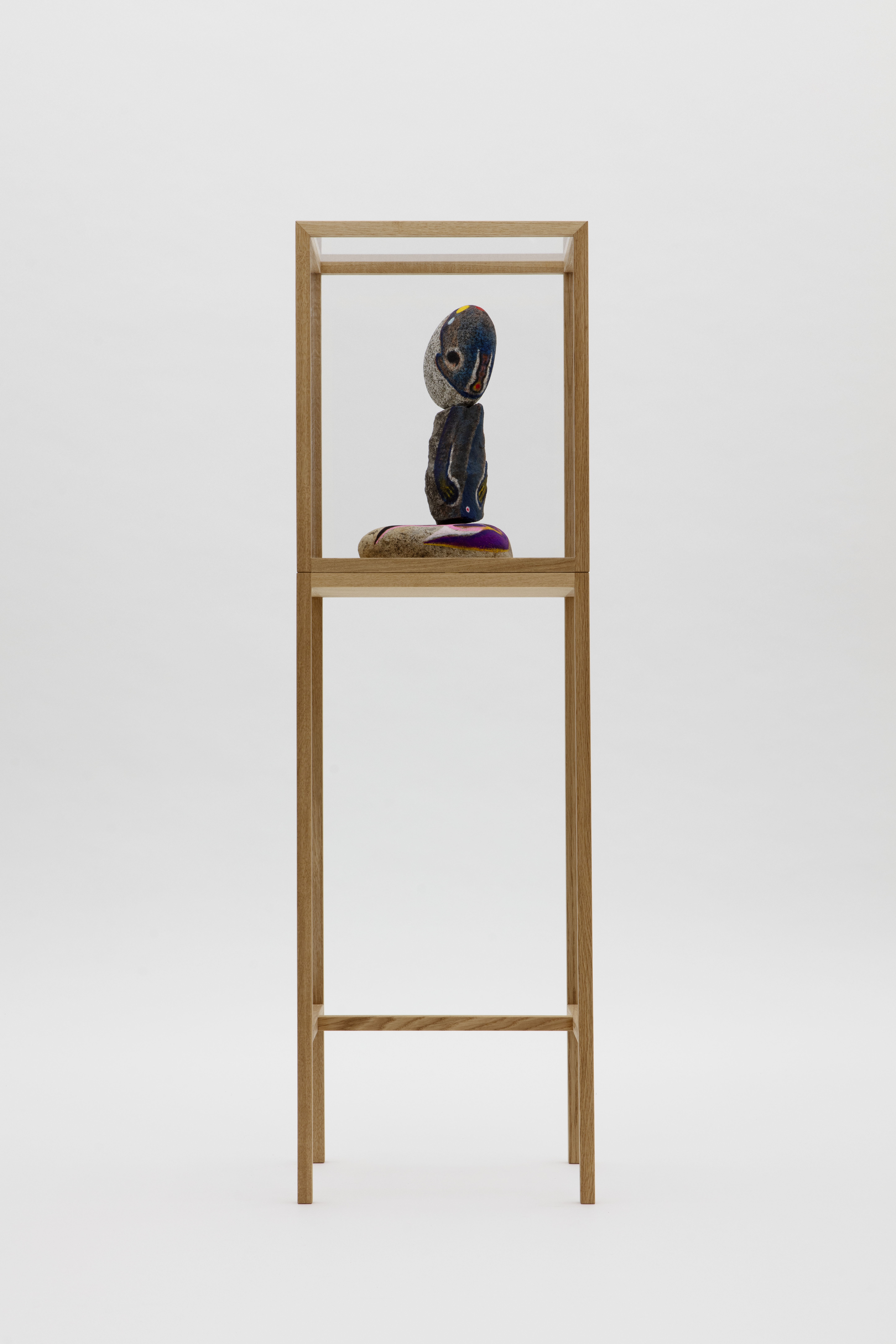 Stone, acrylic, stainless steel, wood case with plexiglass cover