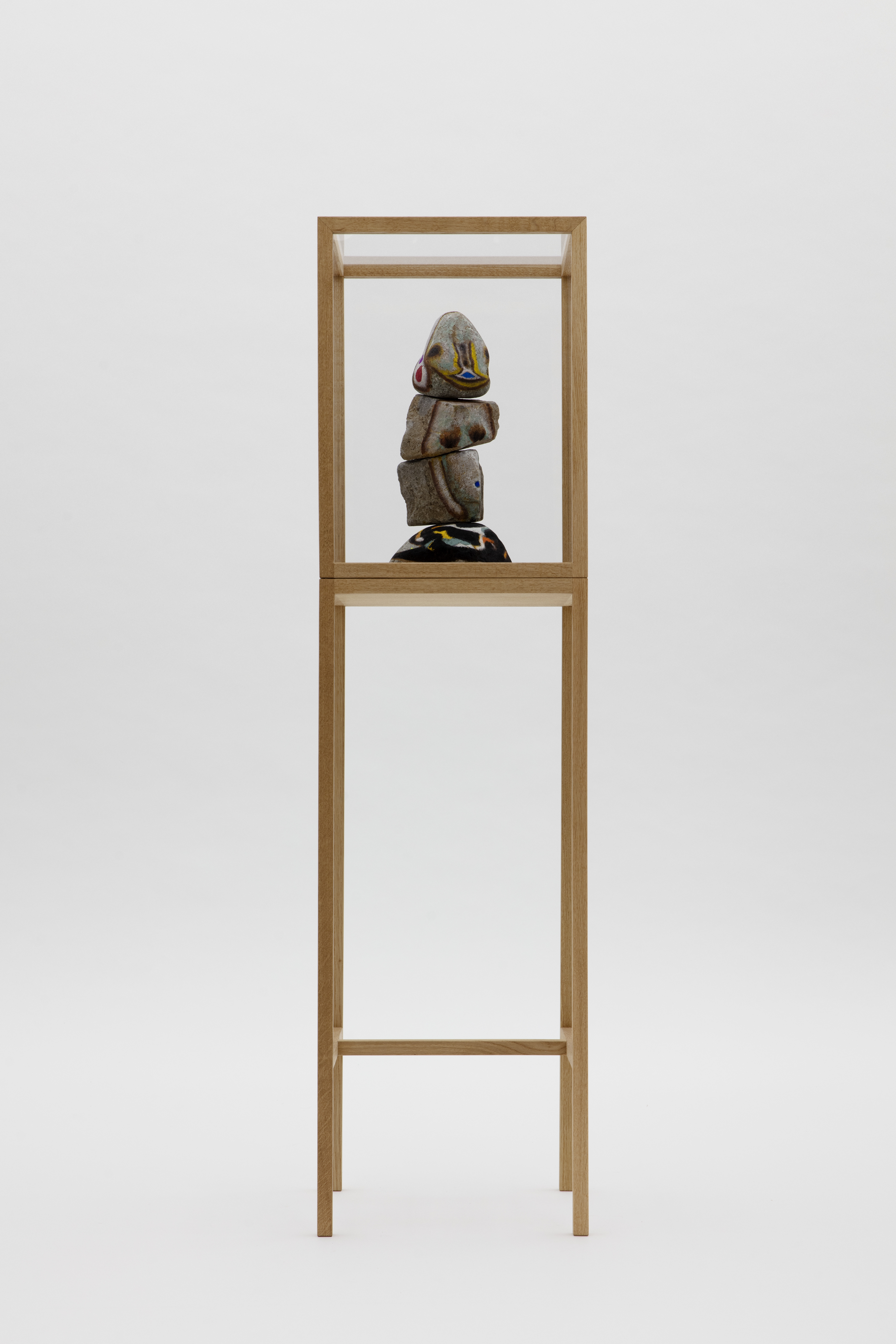 Stone, acrylic, stainless steel, wood case with plexiglass cover