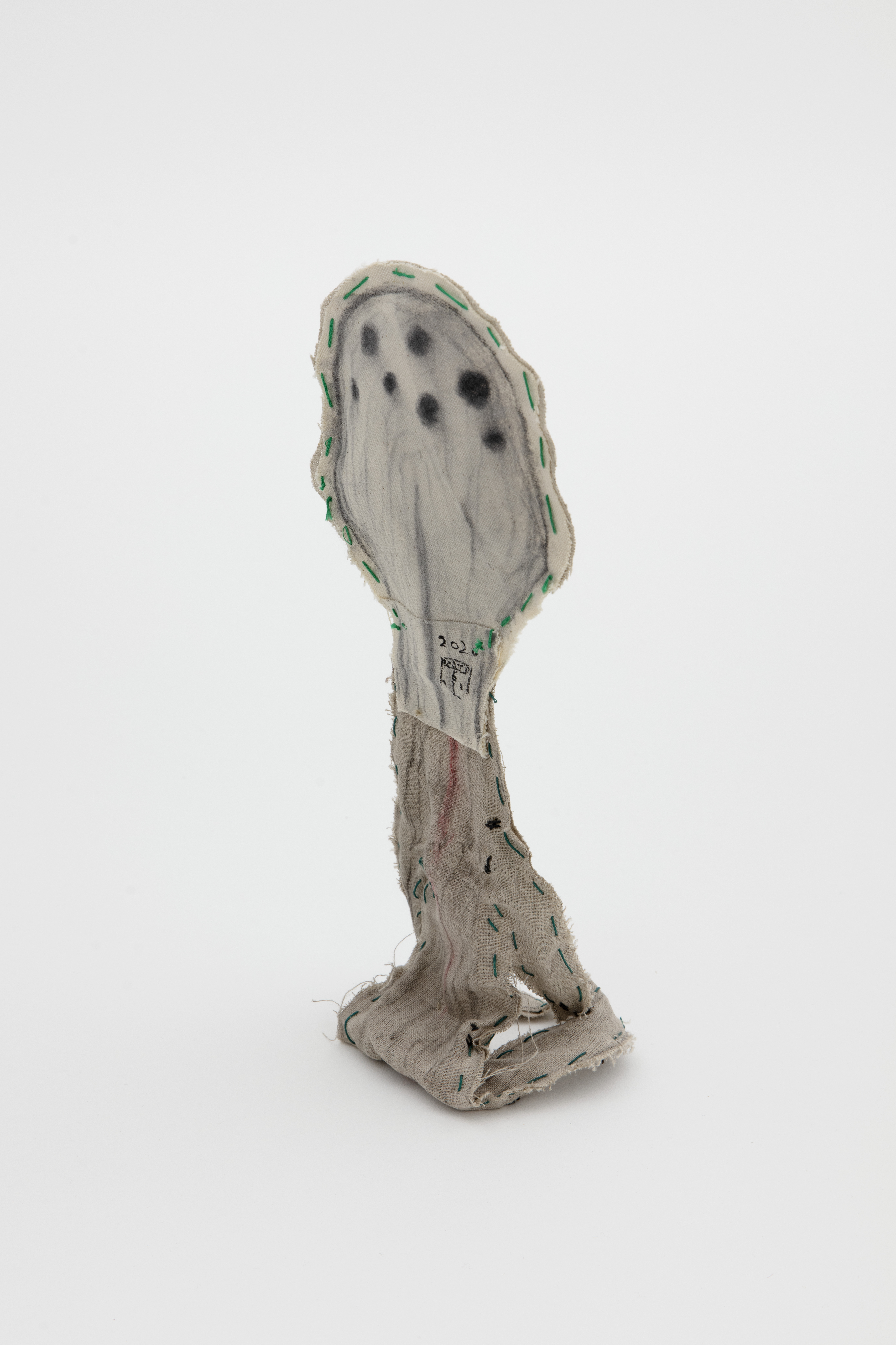 Fabric, charcoal, pastel, acrylic, thread, wire