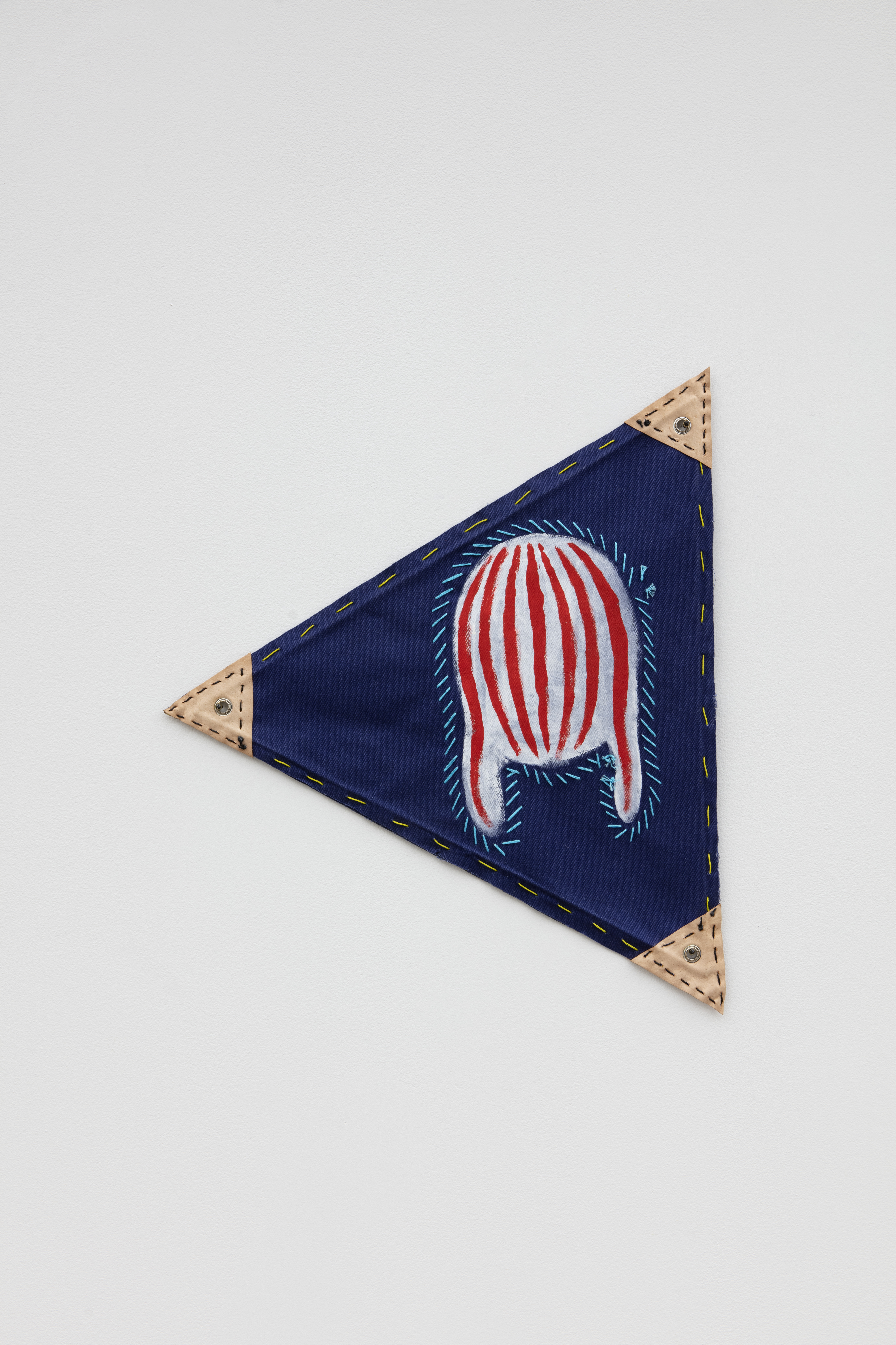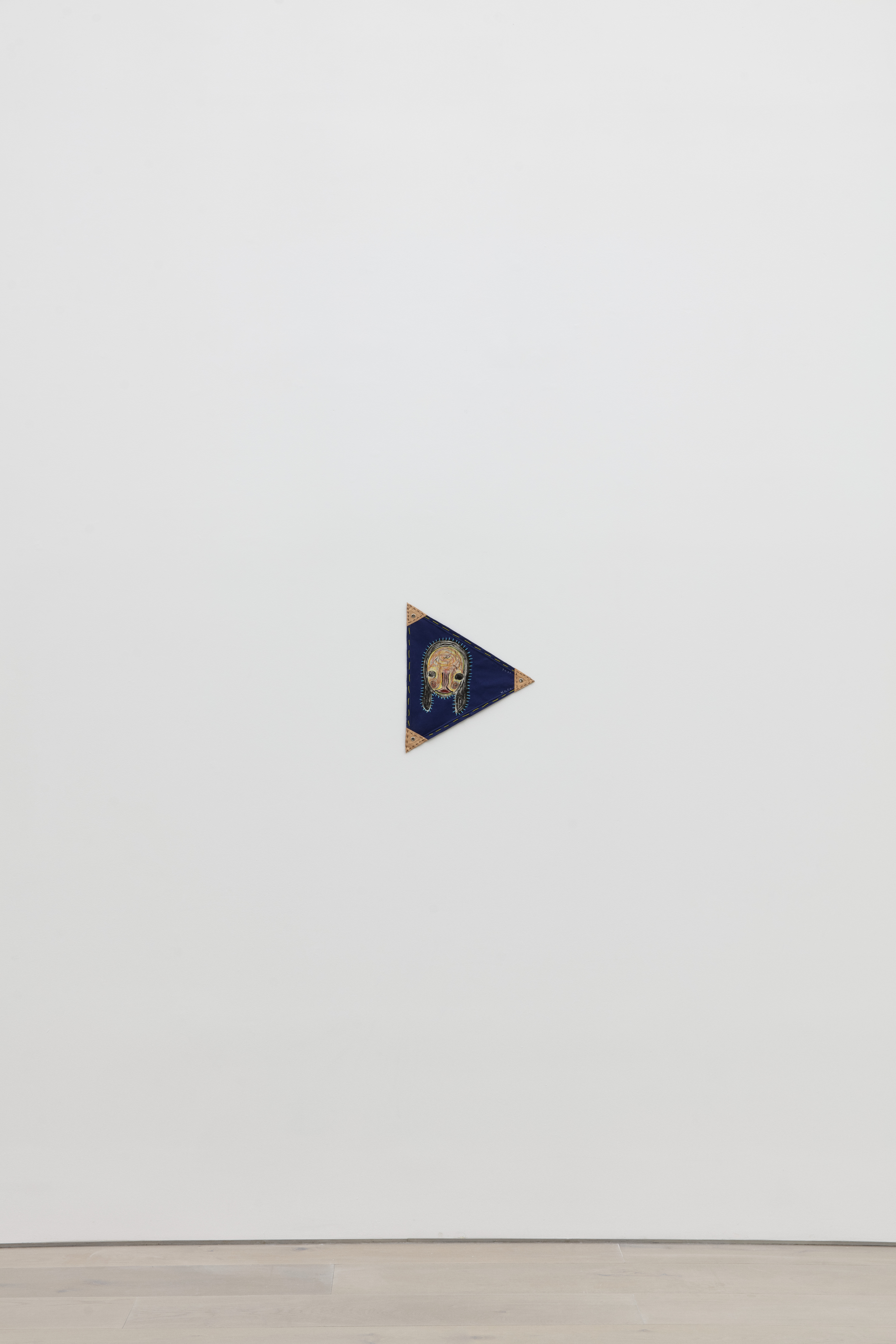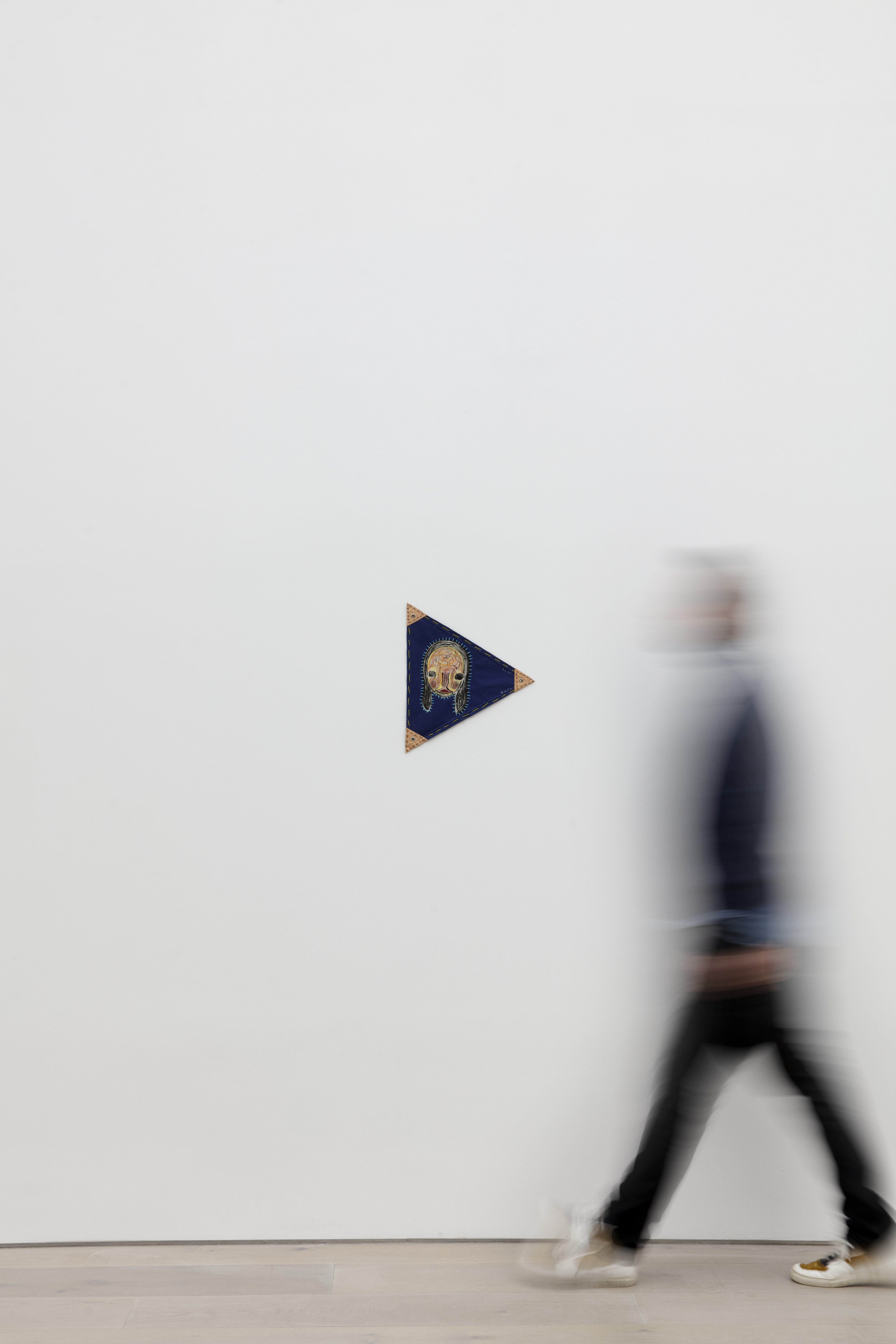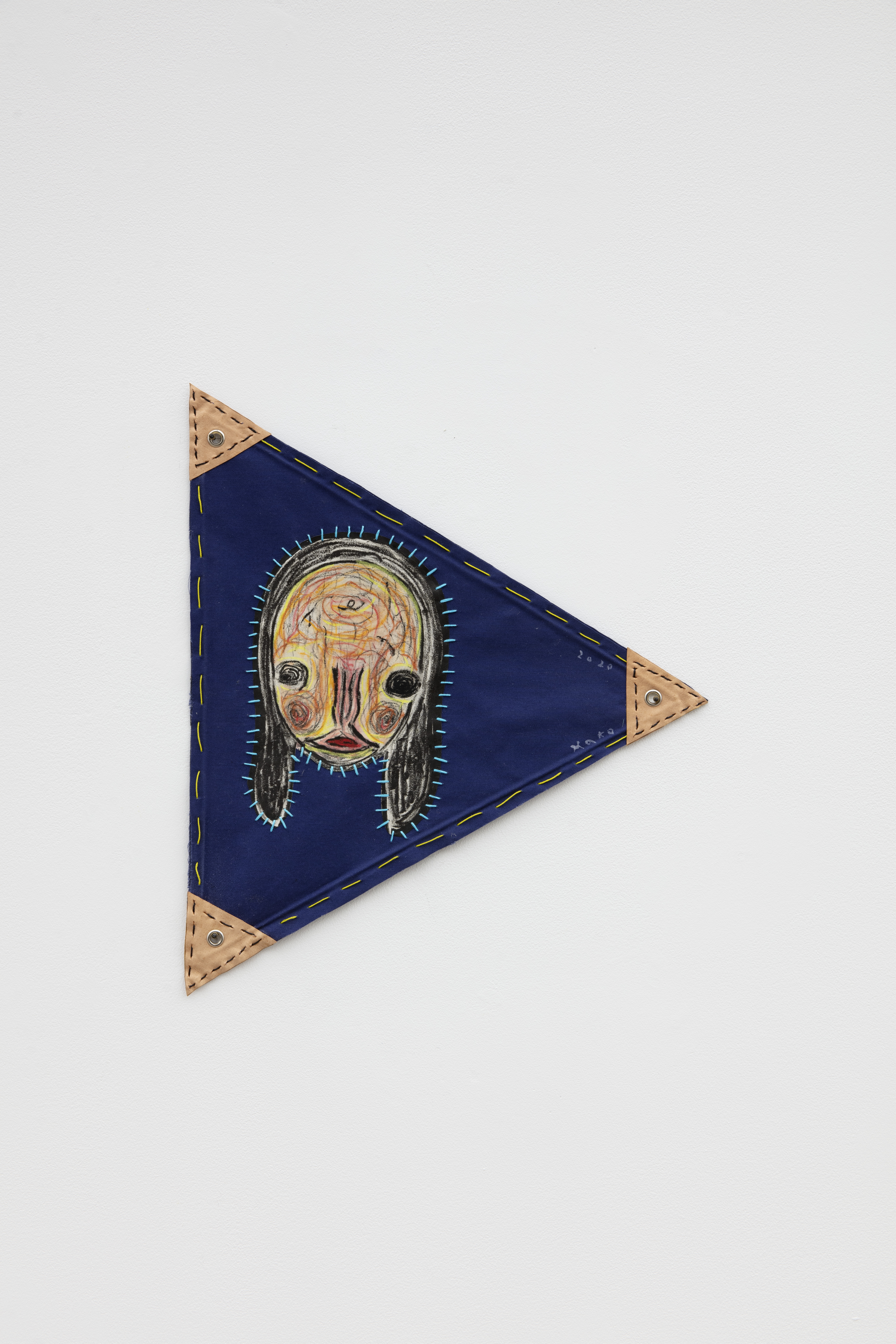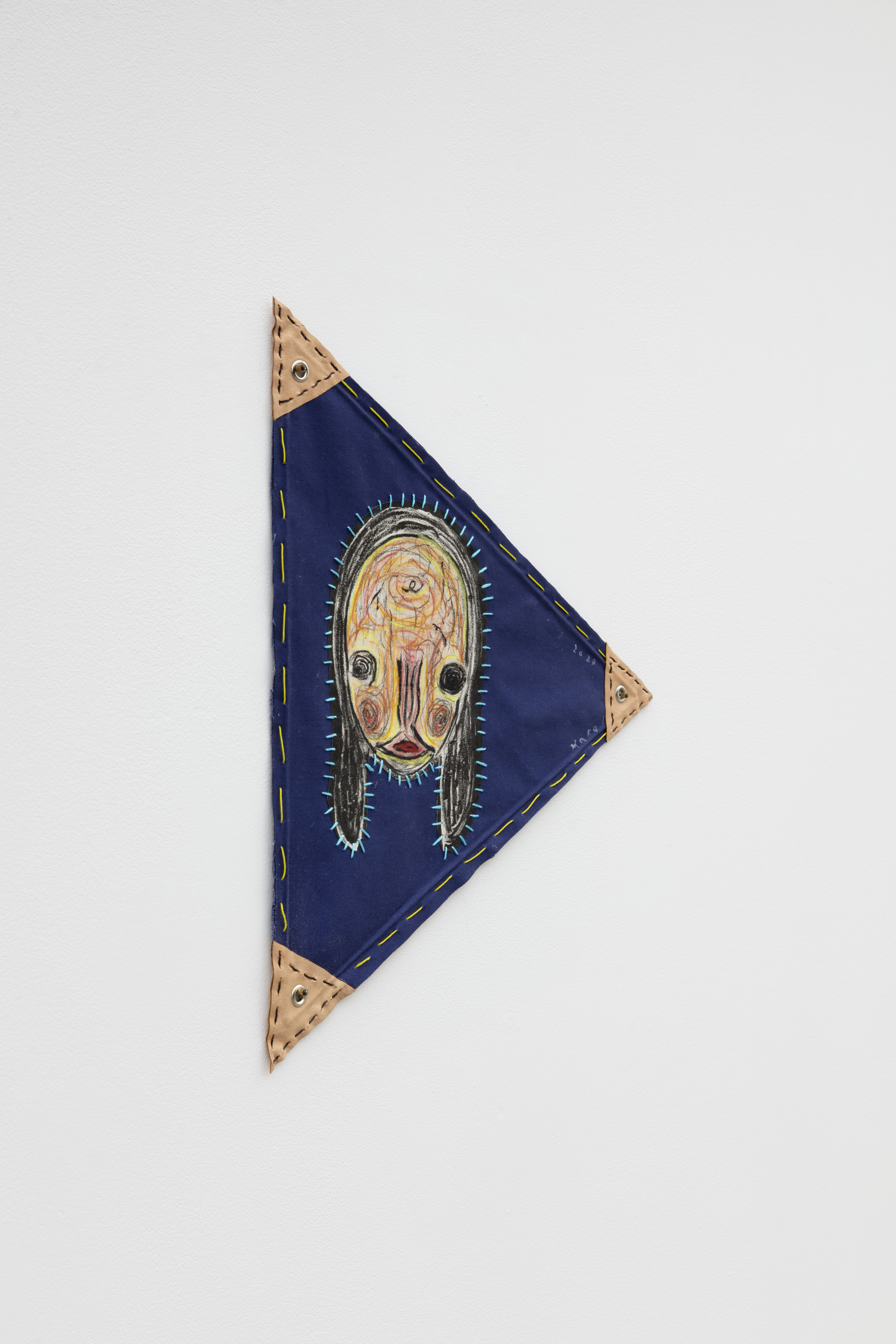 Fabric, lithograph, acrylic, pastel, embroidery, wood, leather
