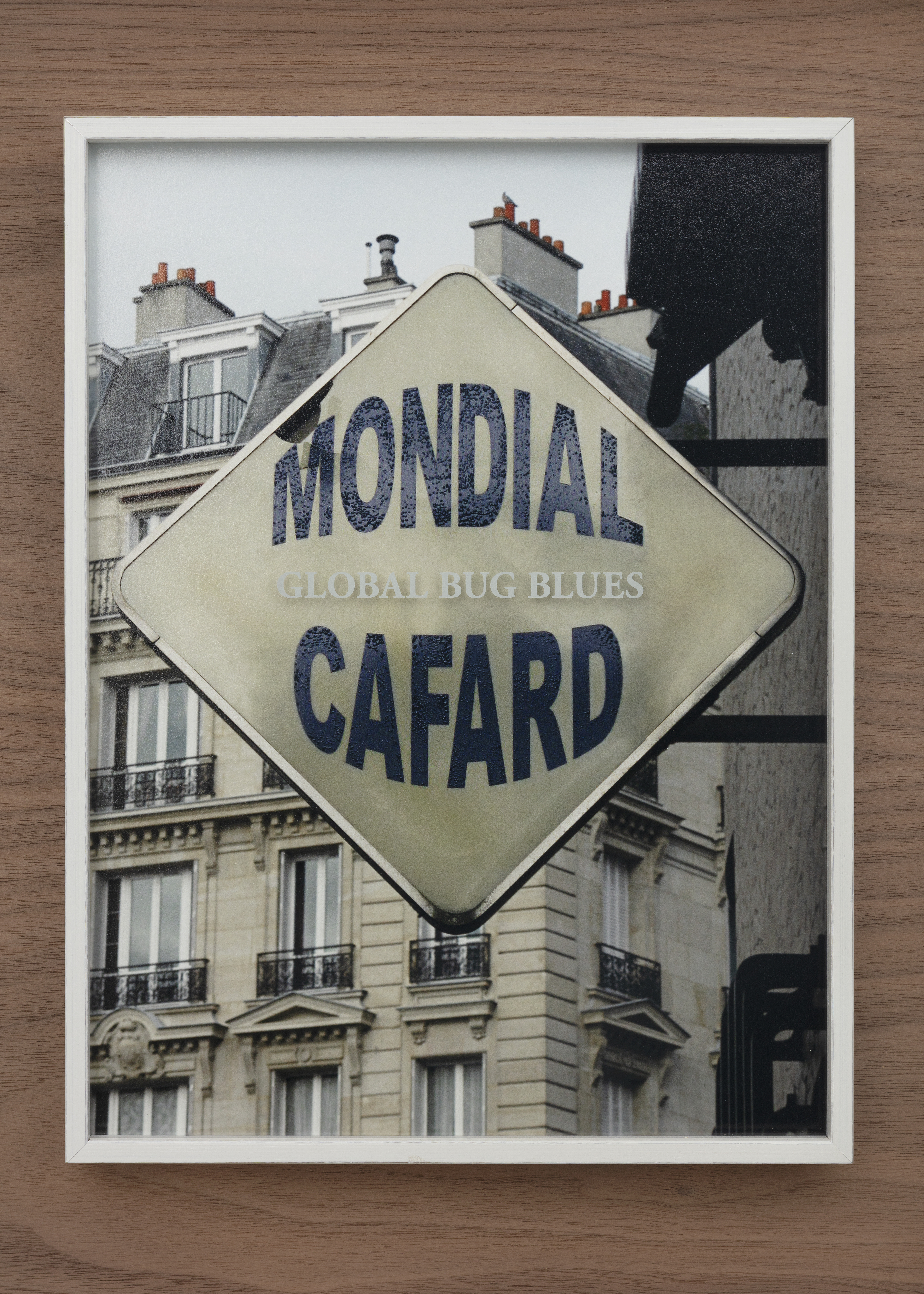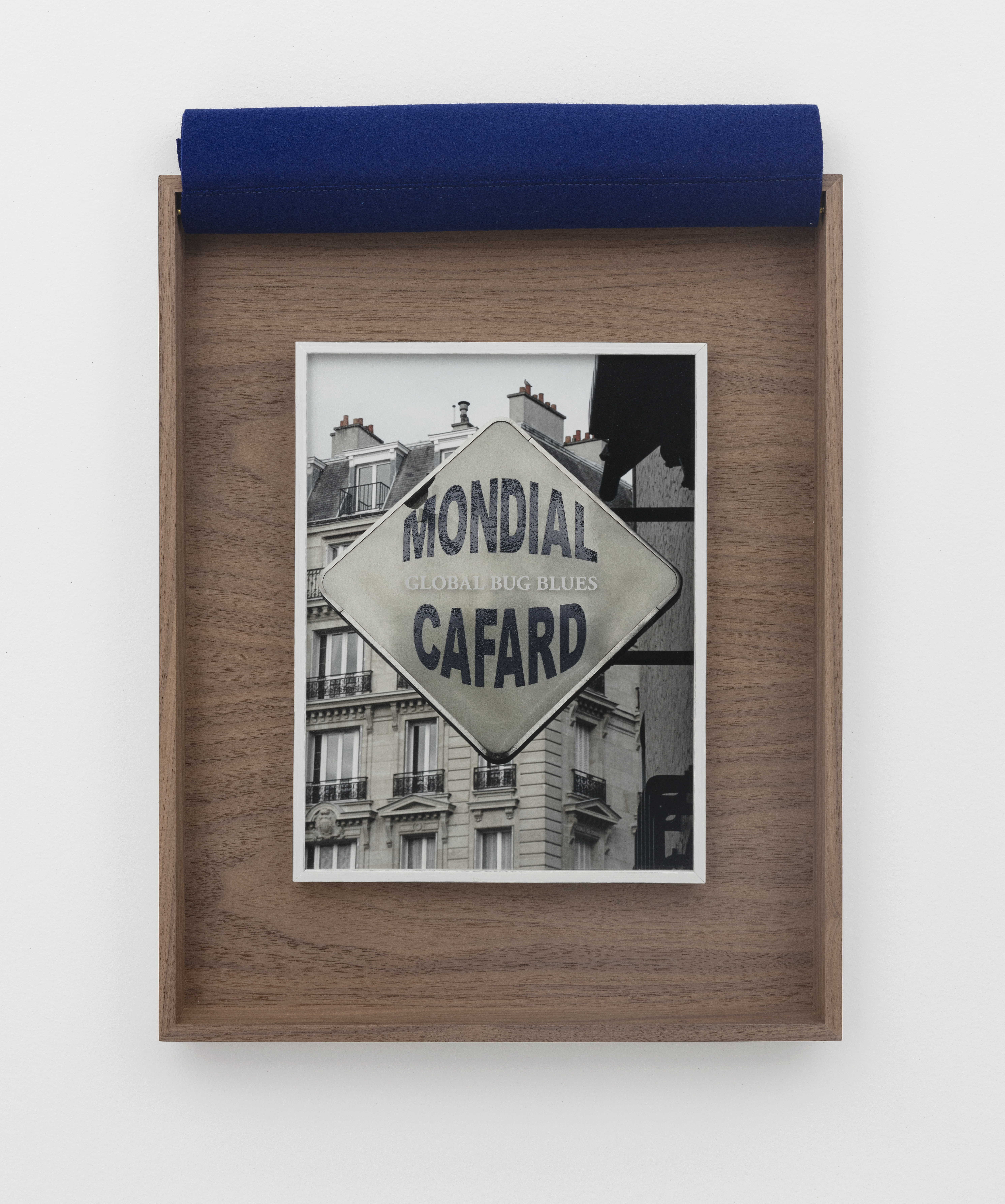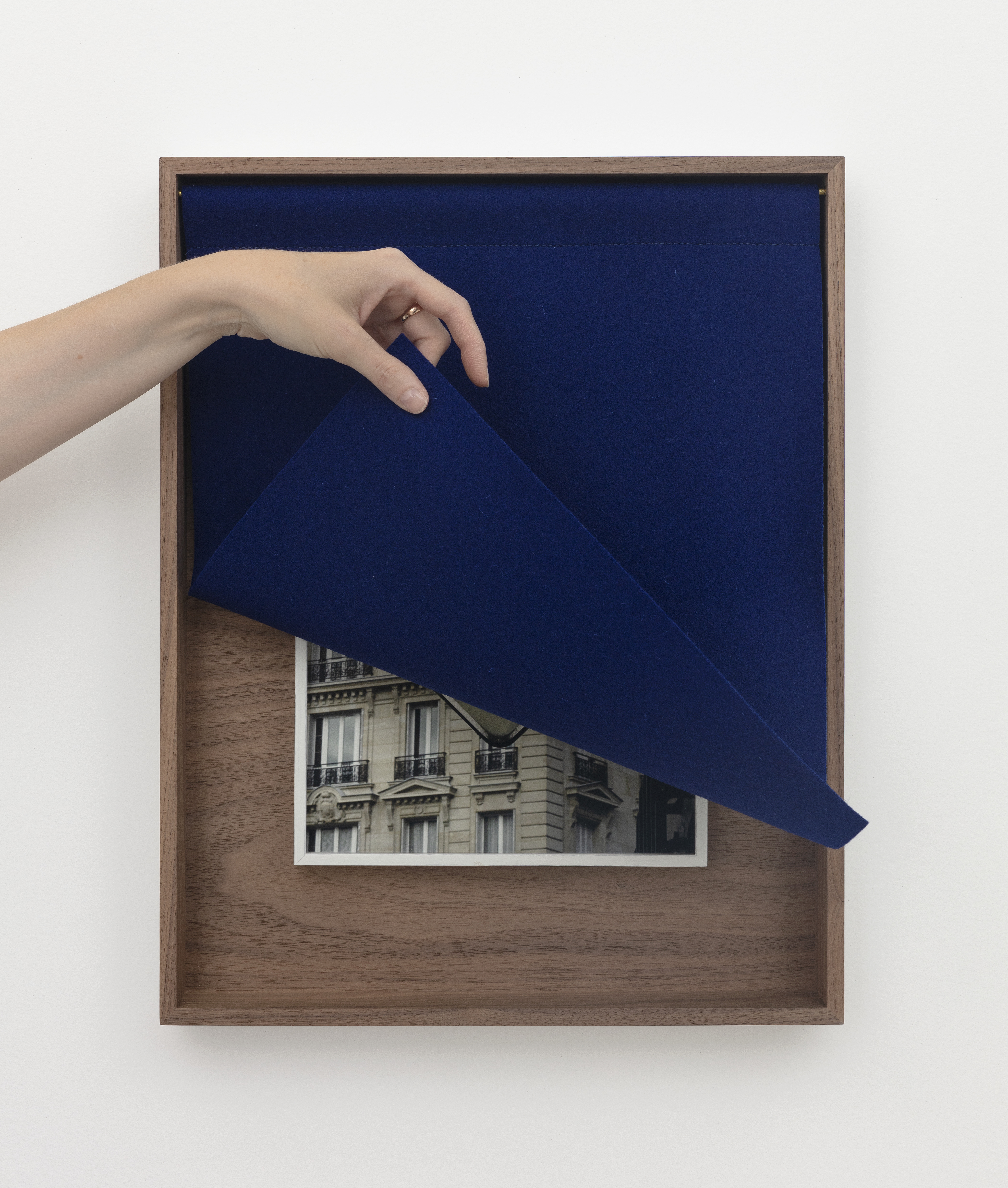 Color photograph, embroidered woolen cloth, framing