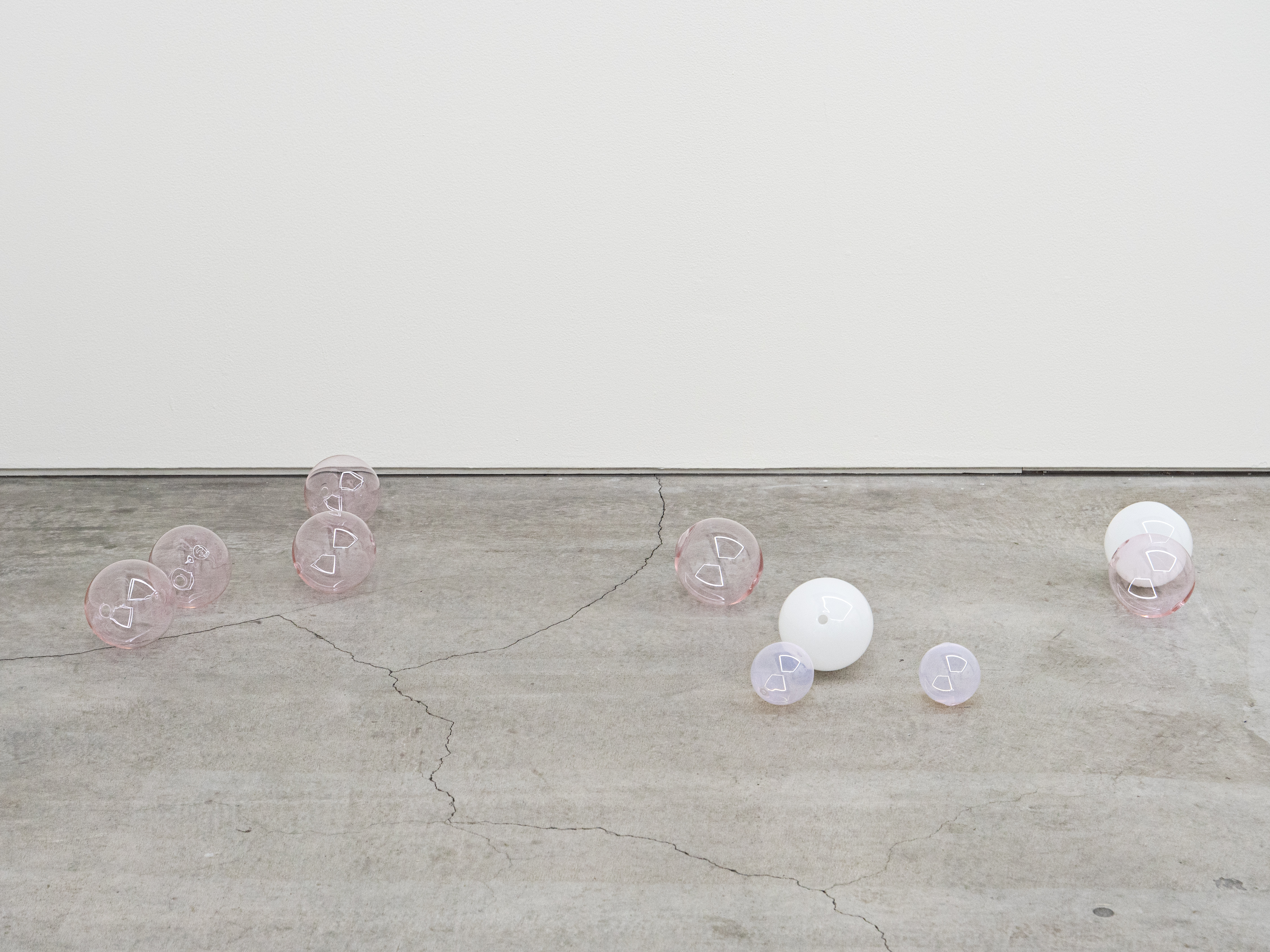 Hand-blown glass, paper, dimensions variable