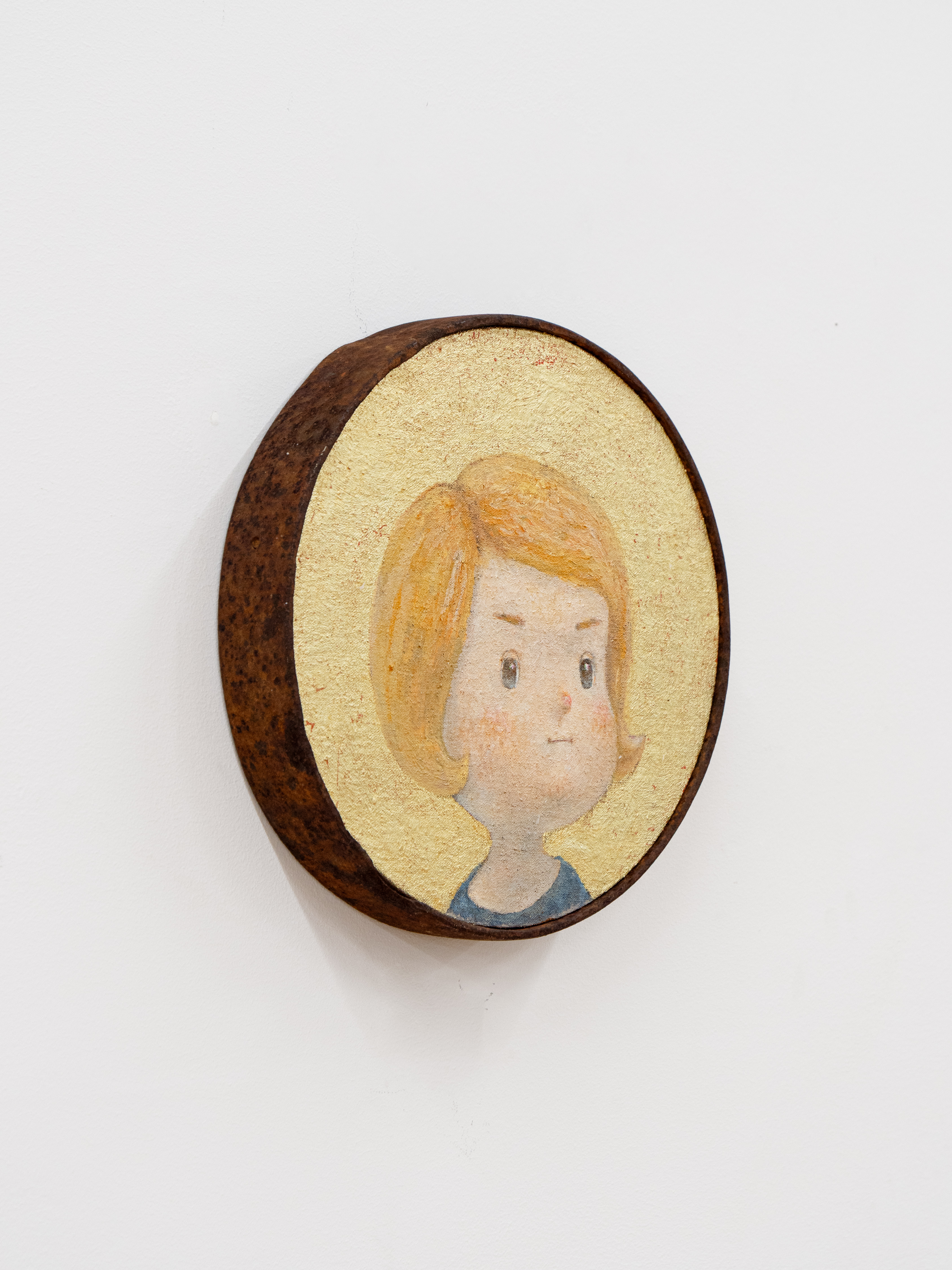 Oil on fabric on panel with old iron frame