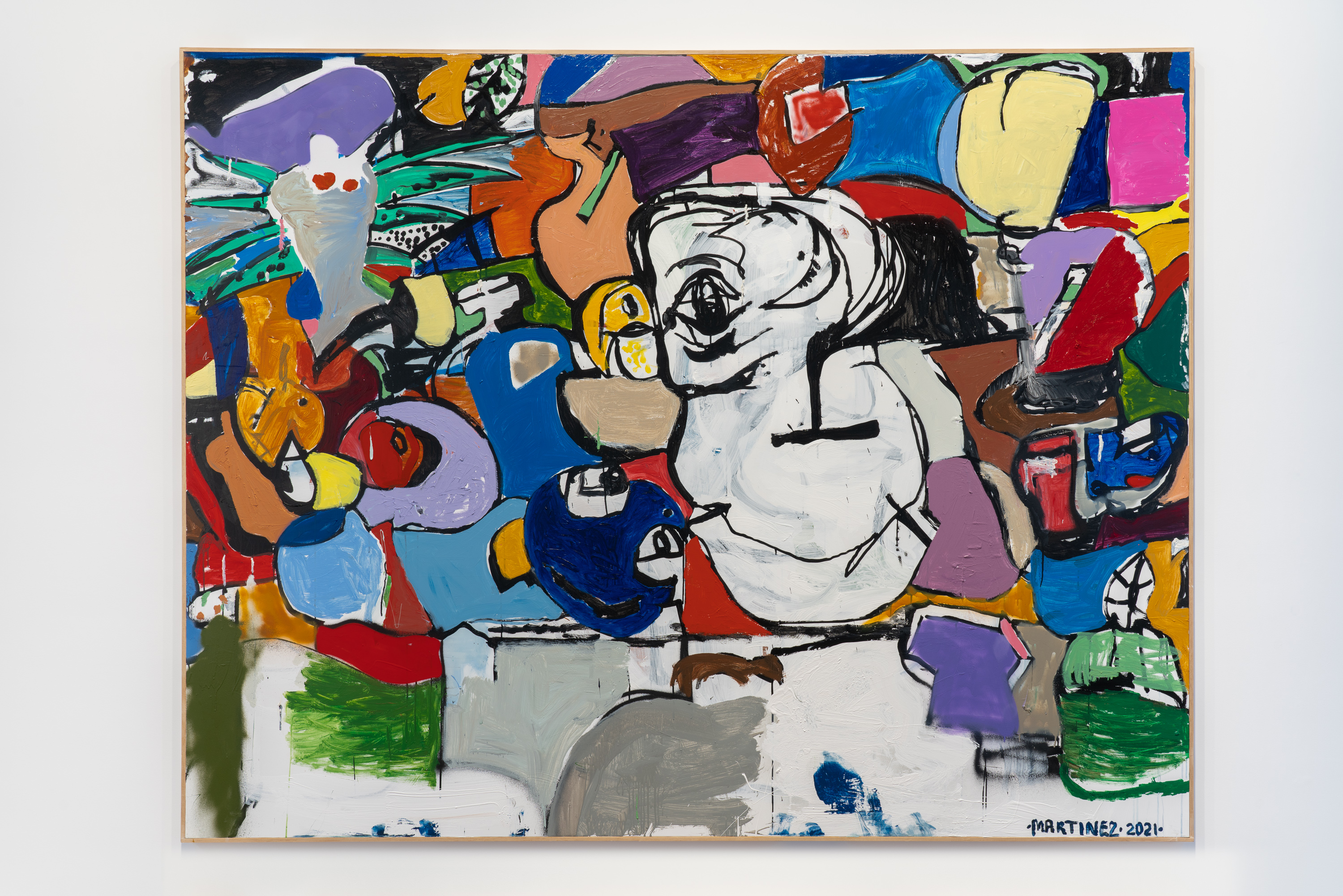 Oil, acrylic and spray paint on canvas in artist's frame