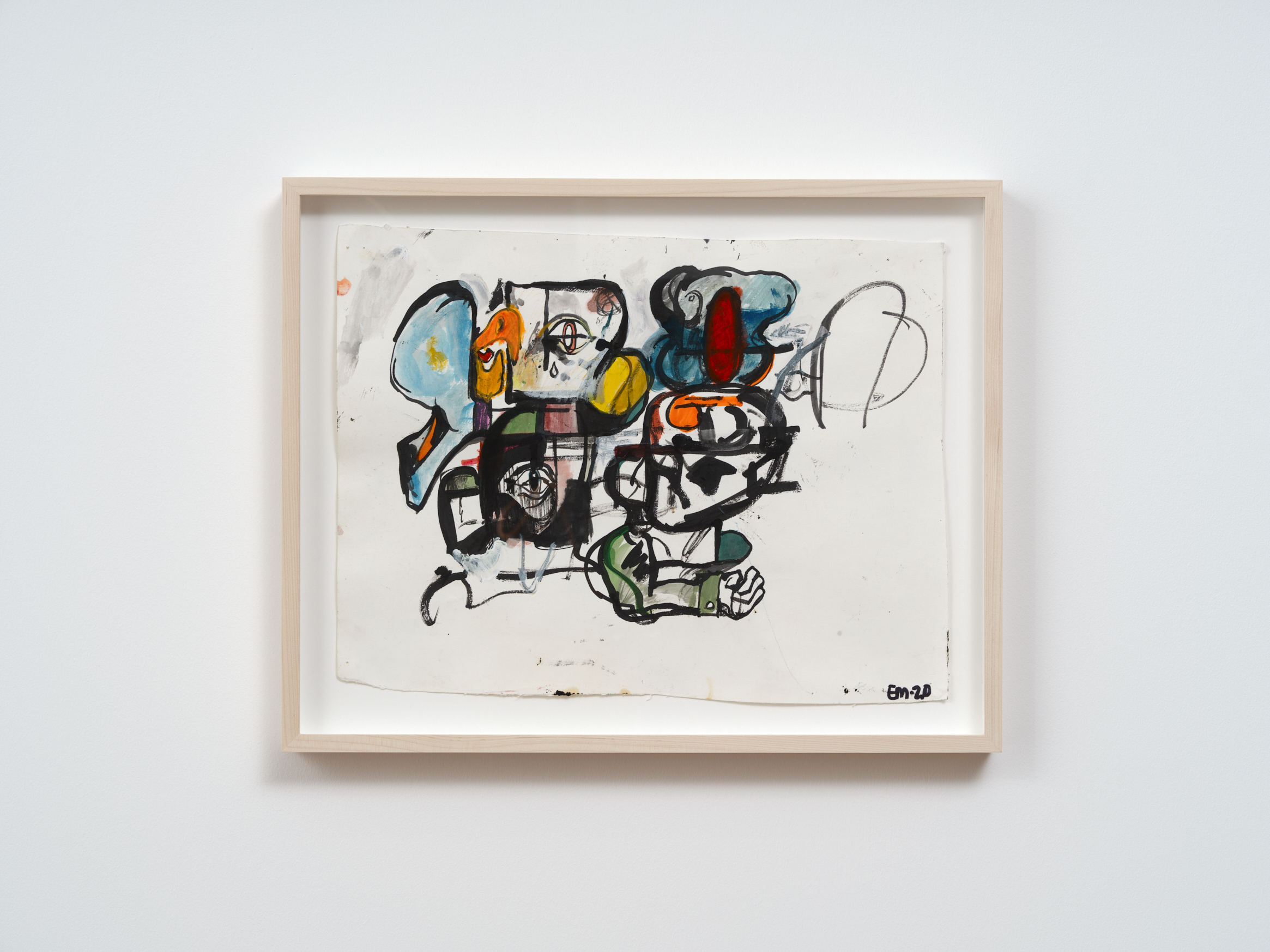 Ink, watercolor, marker, oil pastel, acrylic and debris on paper