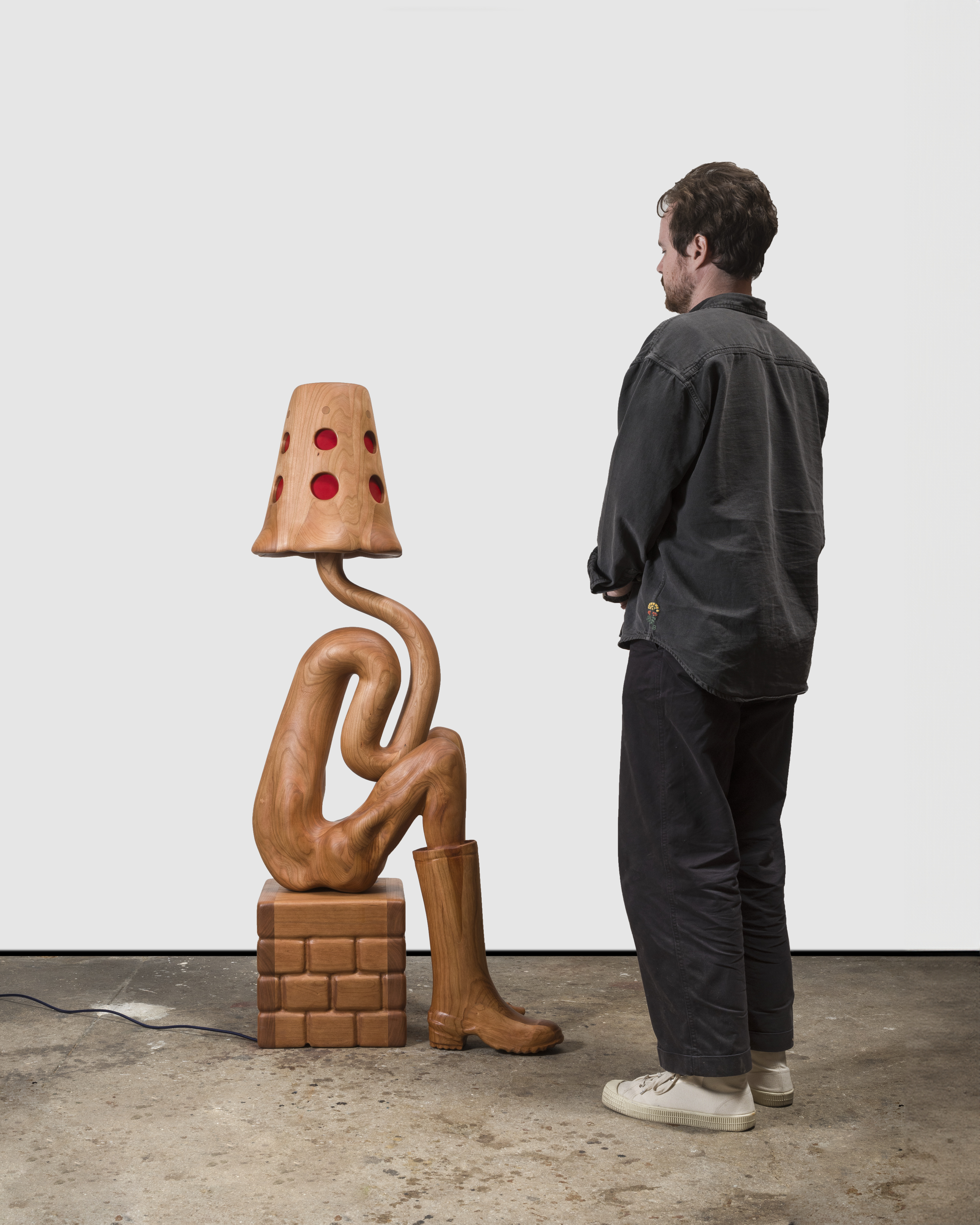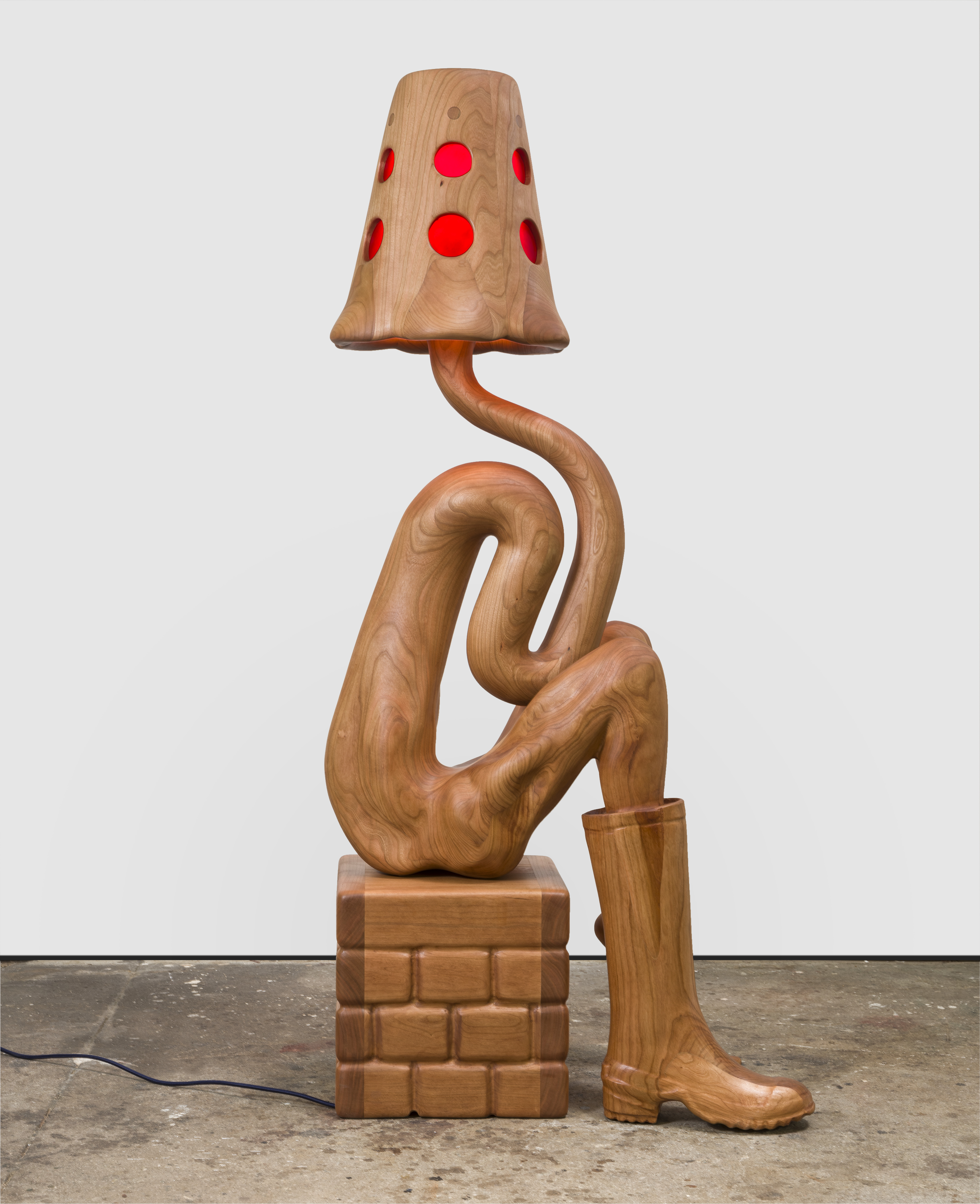Carved cherry, resin and lighting elements