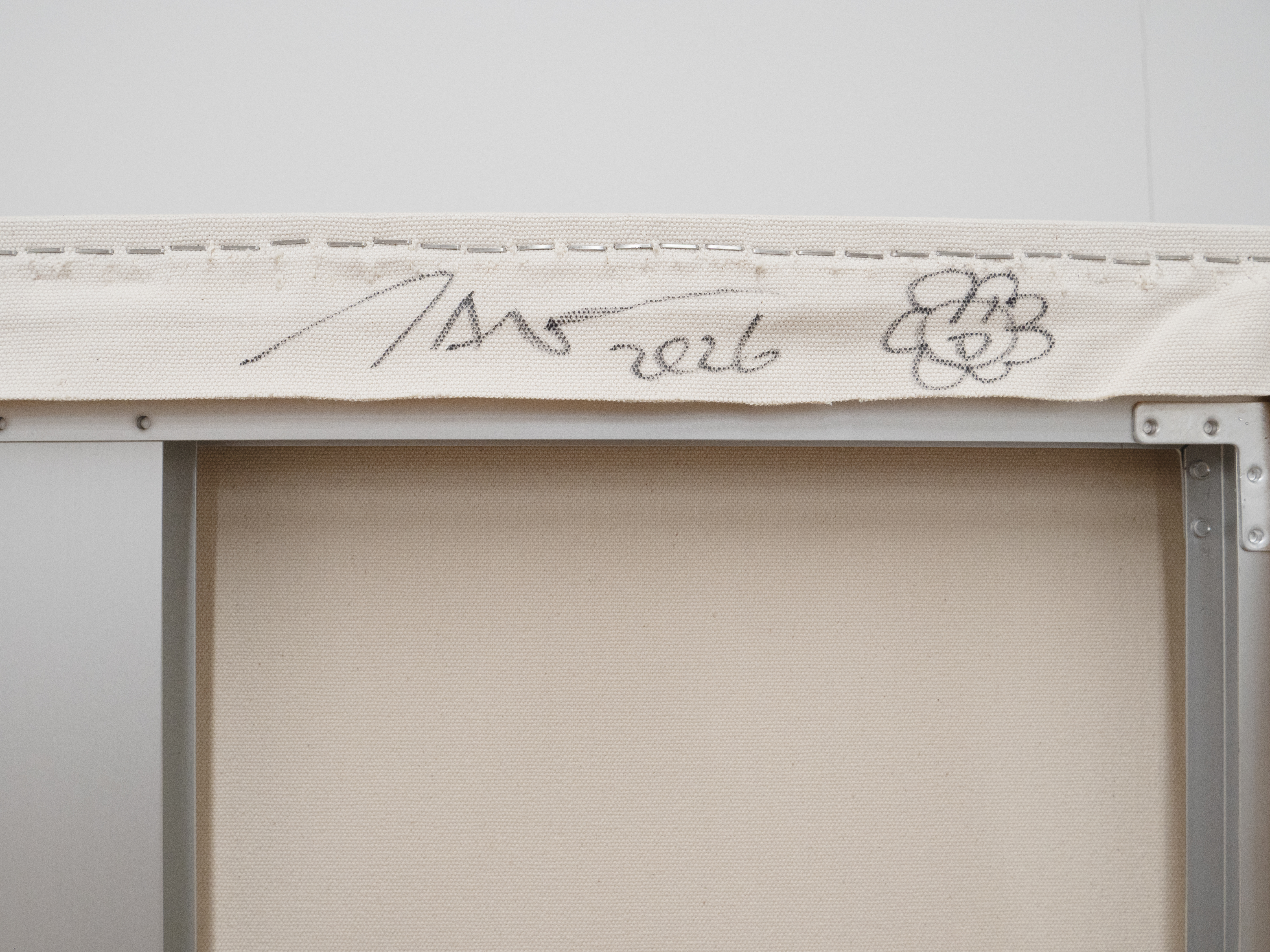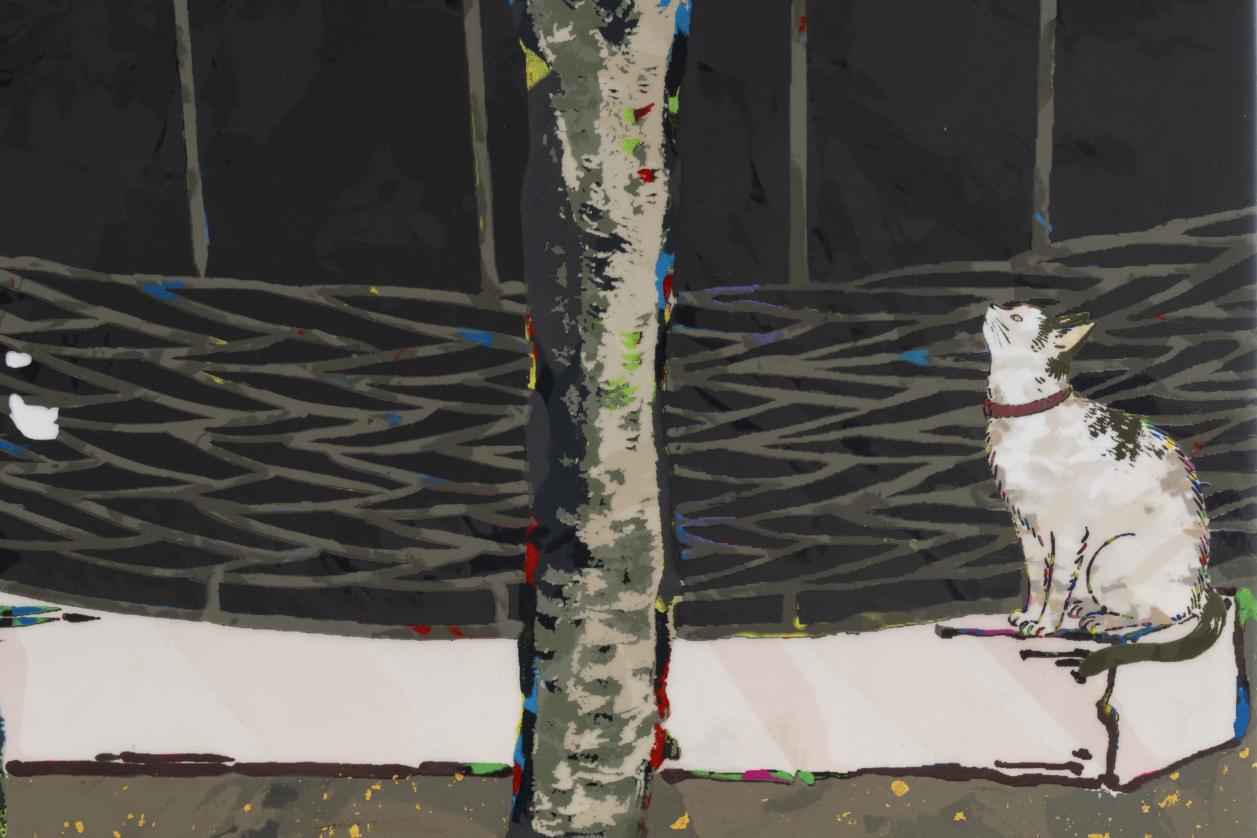 Acrylic, gold leaf and platinum leaf on canvas mounted on aluminum frame