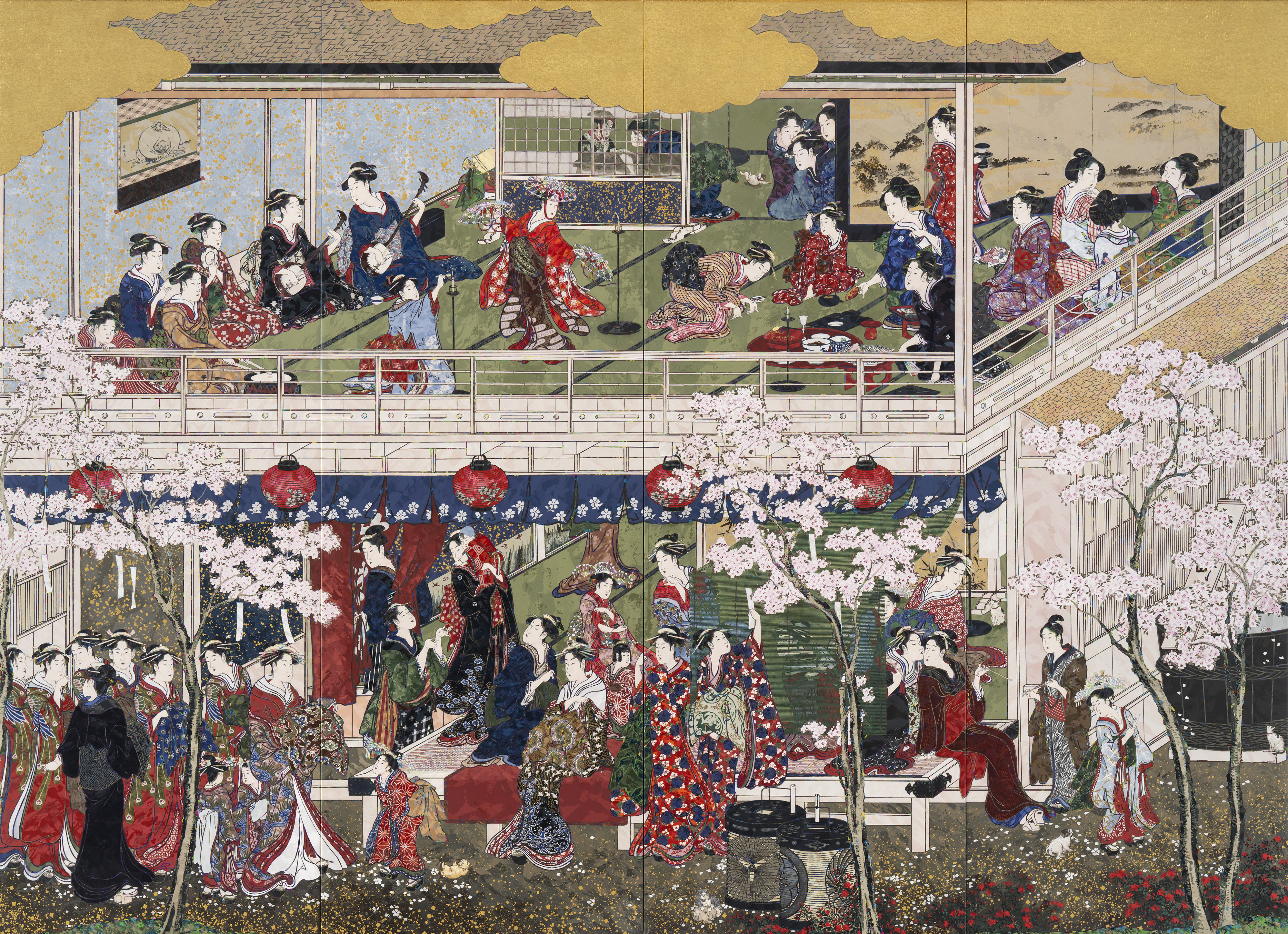 Kitagawa Utamaro’s “Flowers of Yoshiwara” Dogs and Cats Intoxicated by Cherry Blossoms - SUPERFLAT