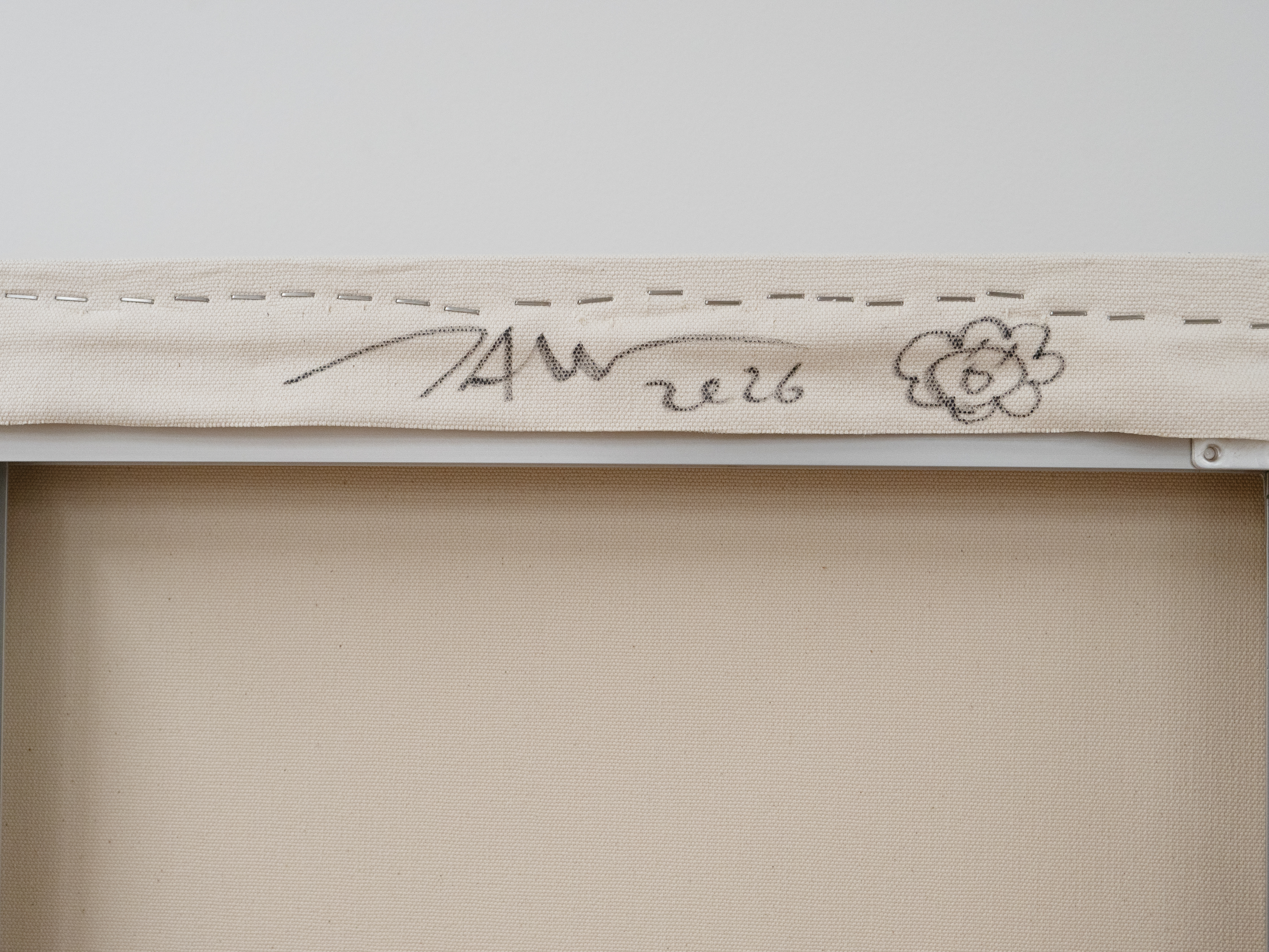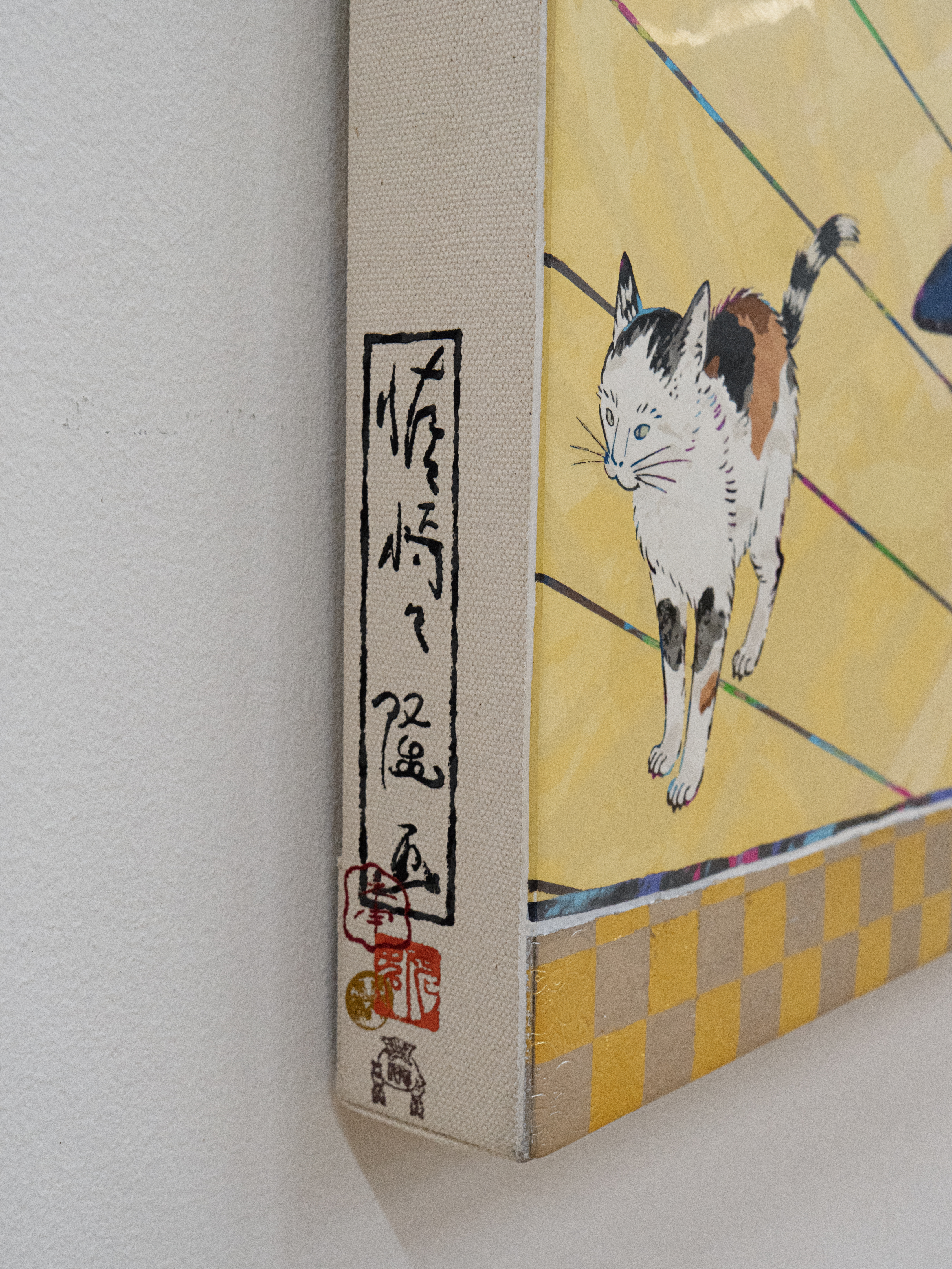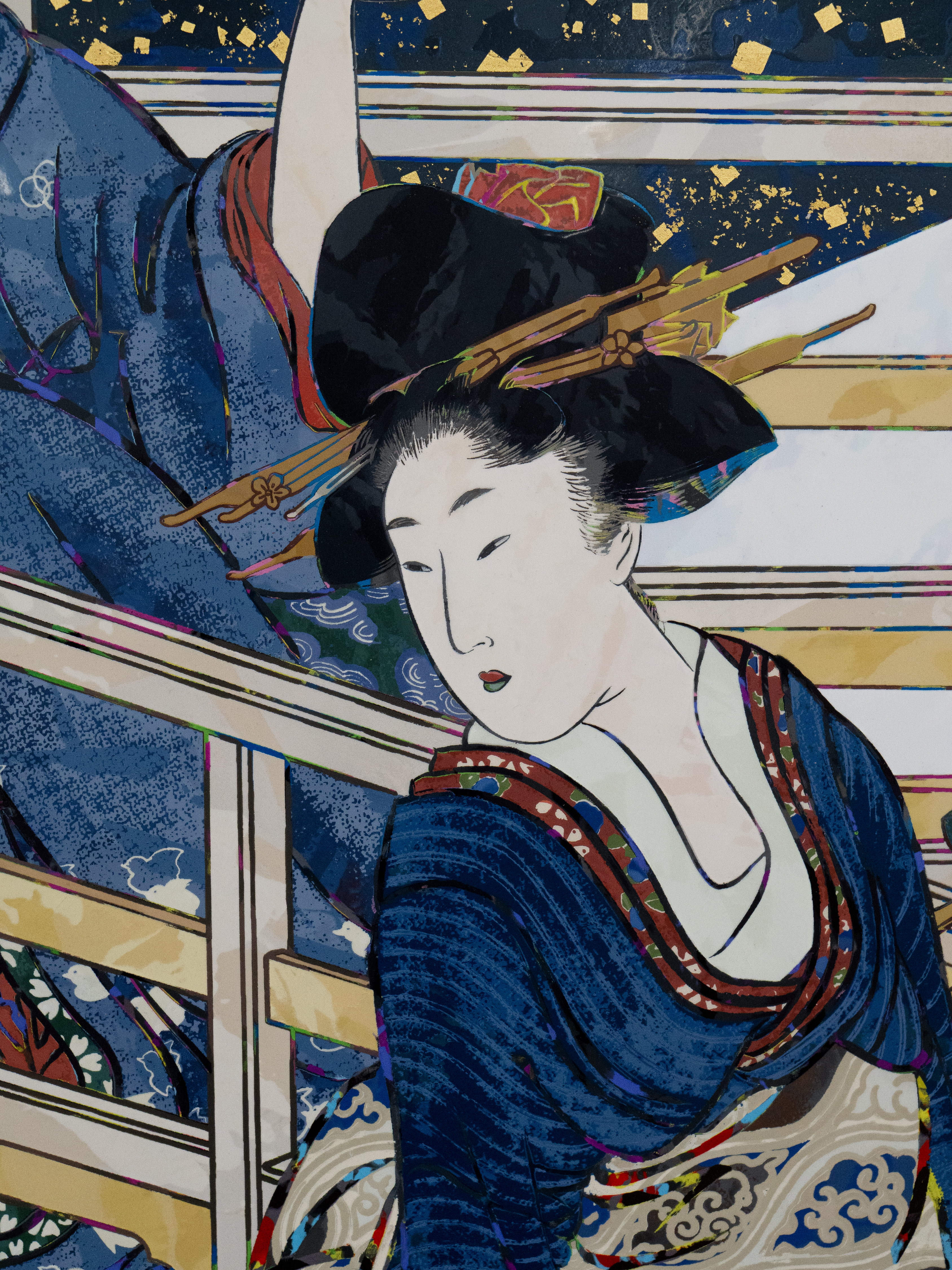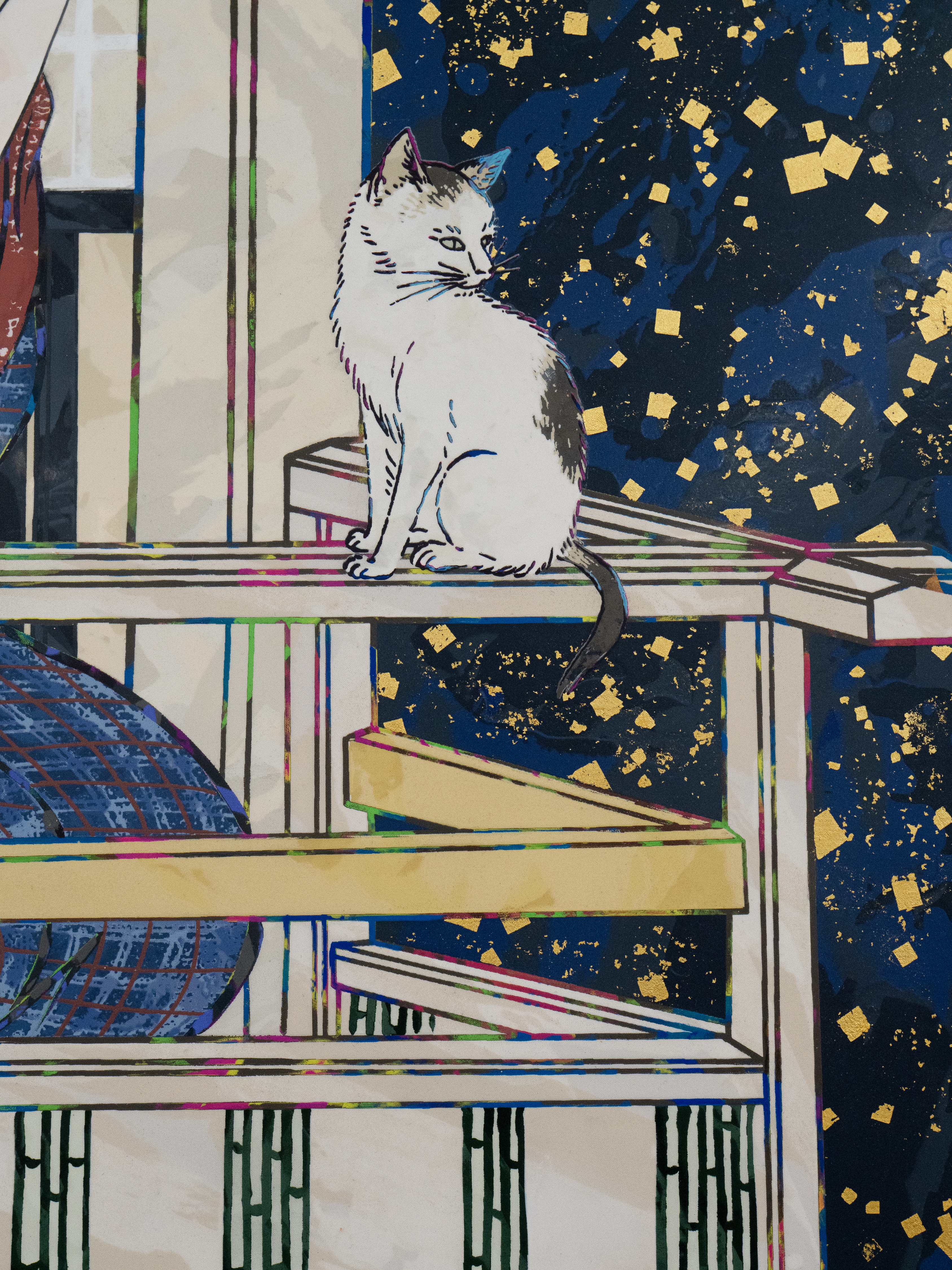 Acrylic, gold leaf and platinum leaf on canvas mounted on aluminum frame