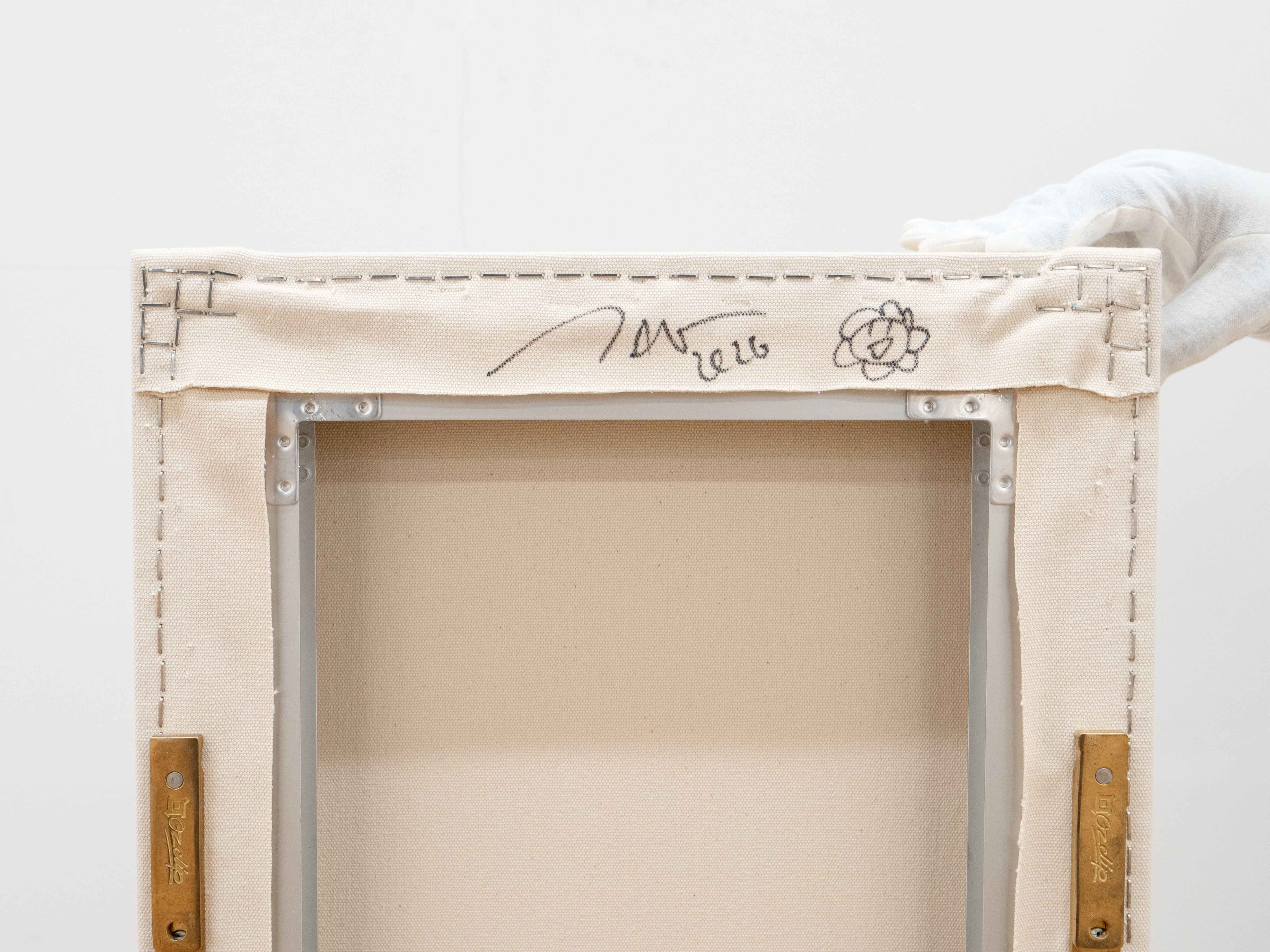 Acrylic and gold leaf on canvas mounted on aluminum frame