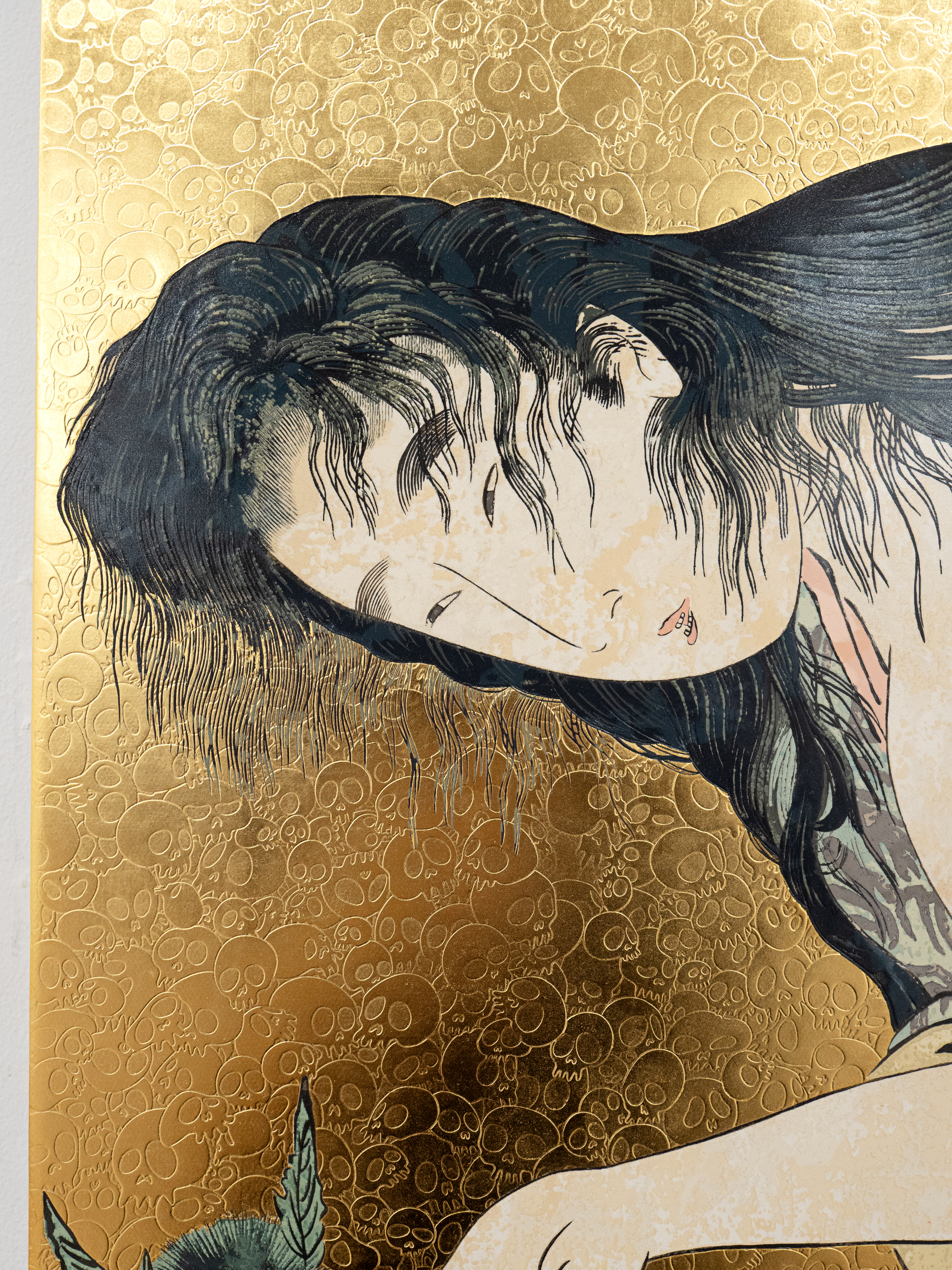 Acrylic and gold leaf on canvas mounted on aluminum frame