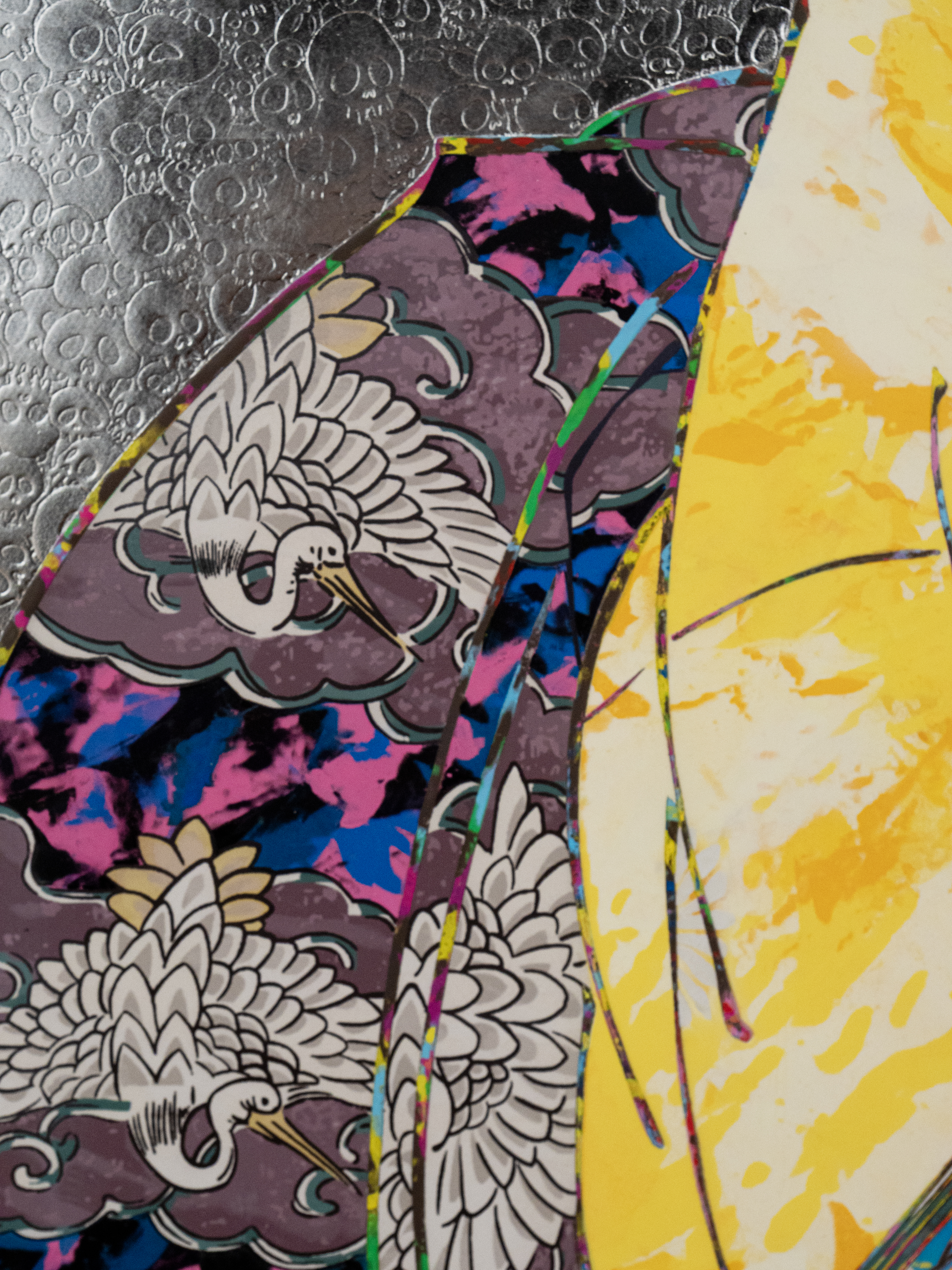 Acrylic and platinum leaf on canvas mounted on aluminum frame