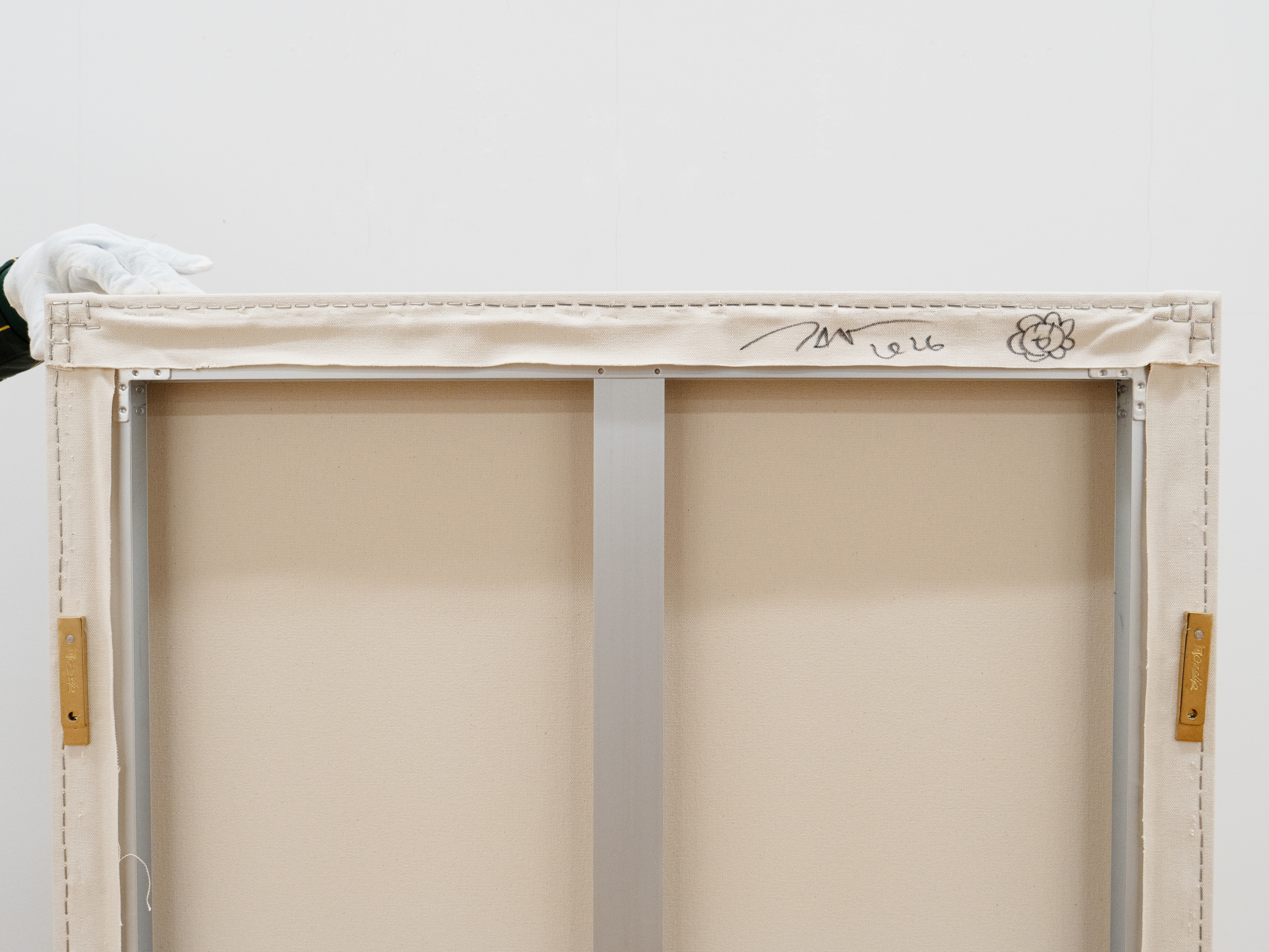 Acrylic and gold leaf on canvas mounted on aluminum frame
