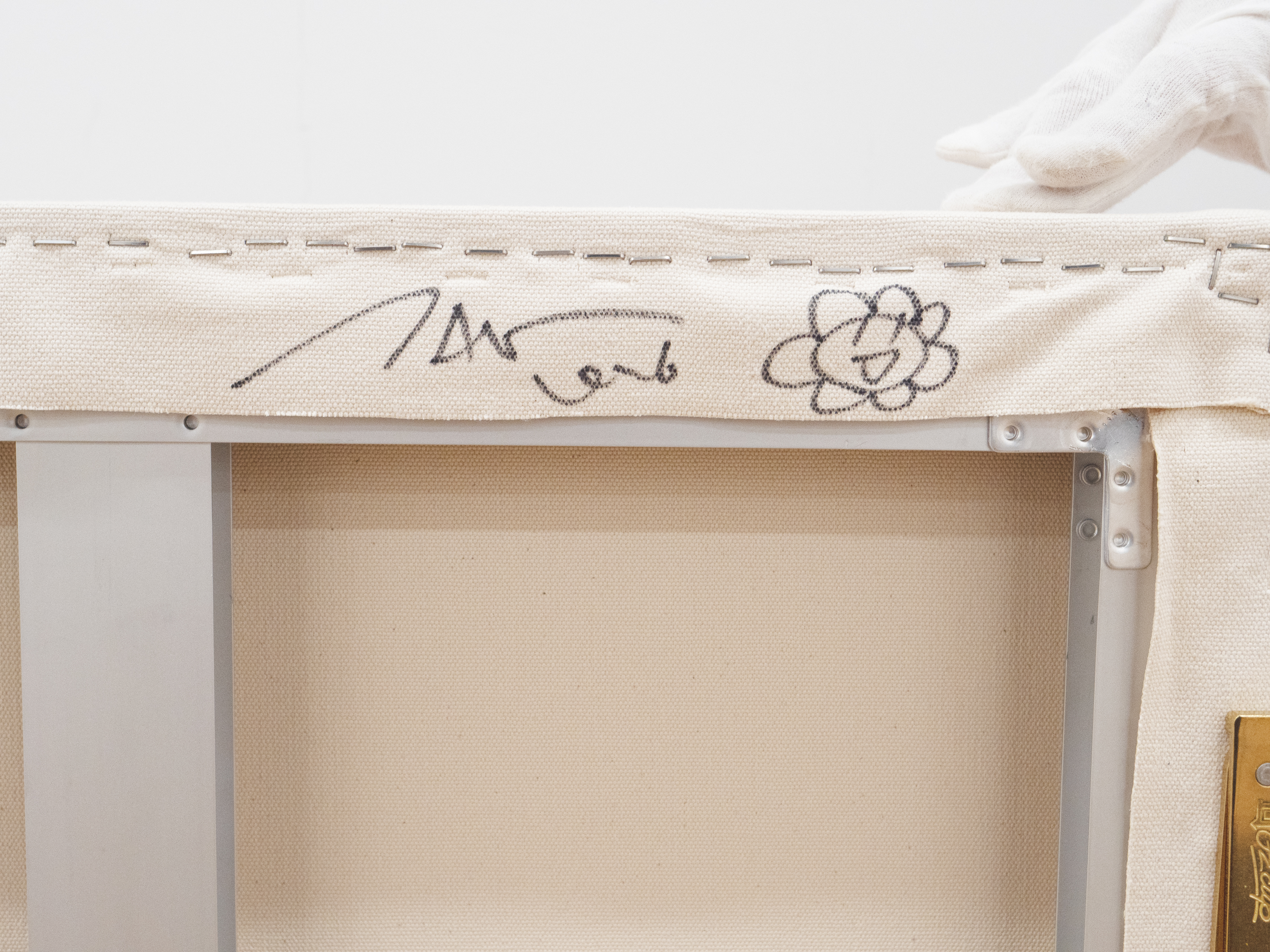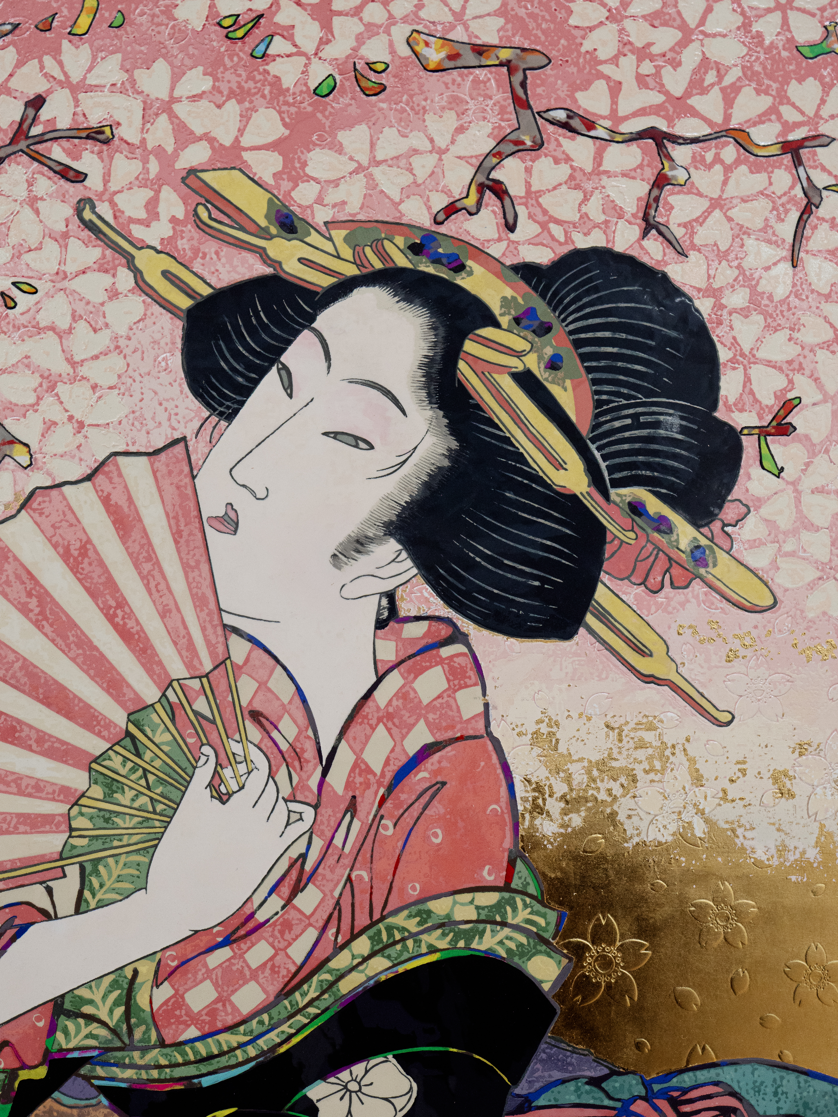 Acrylic and gold leaf on canvas mounted on aluminum frame