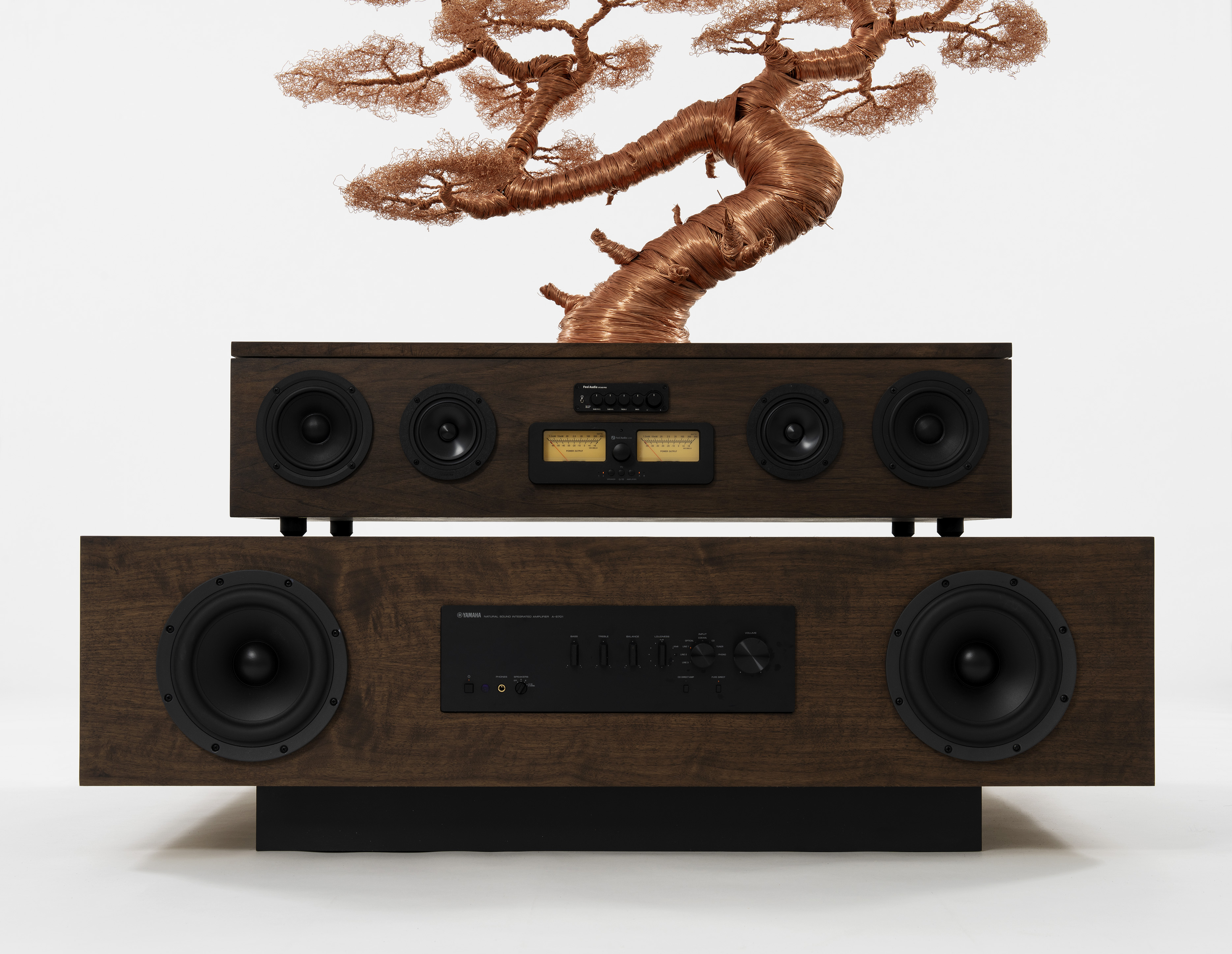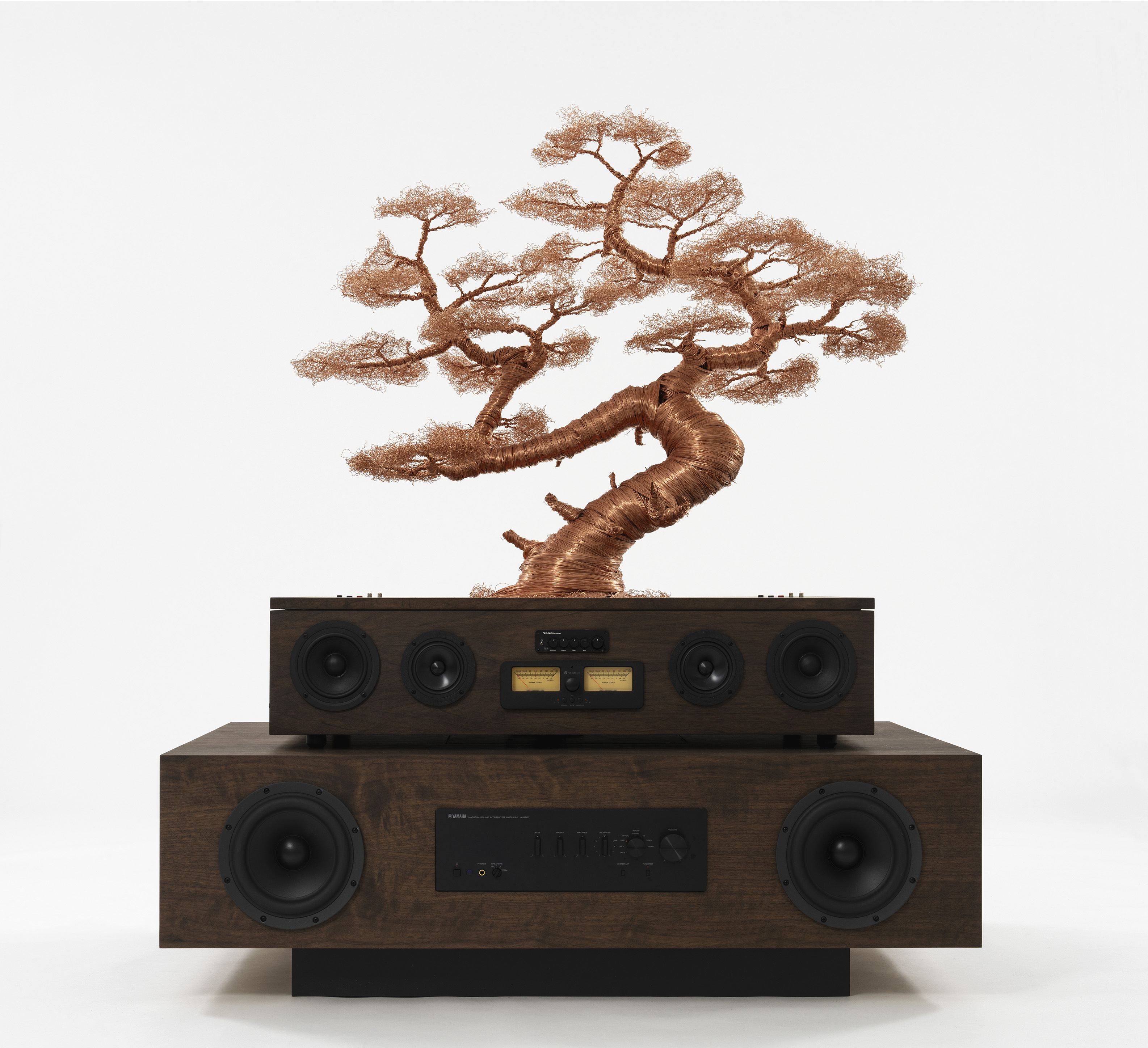 Copper wire, wood, speakers
