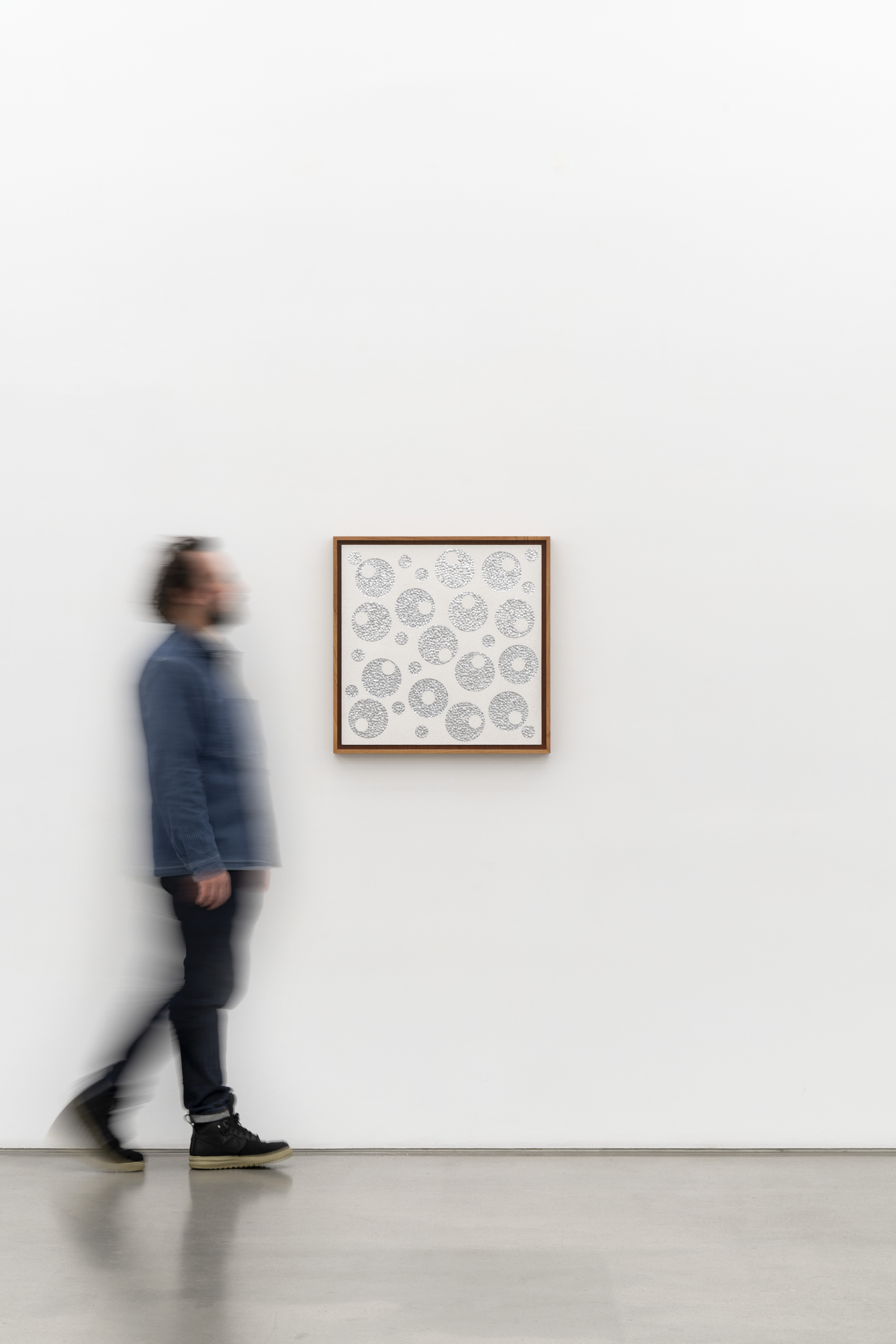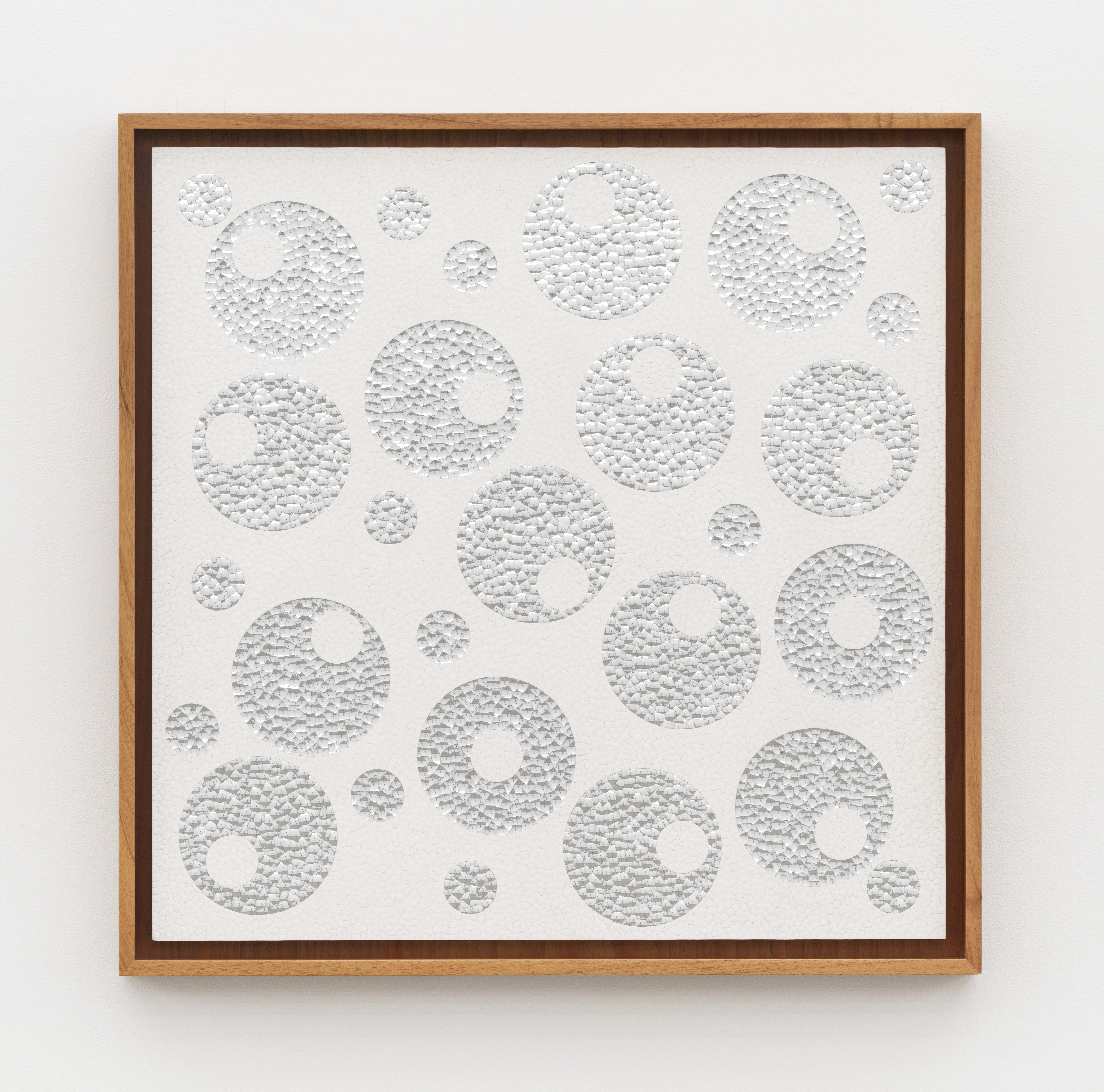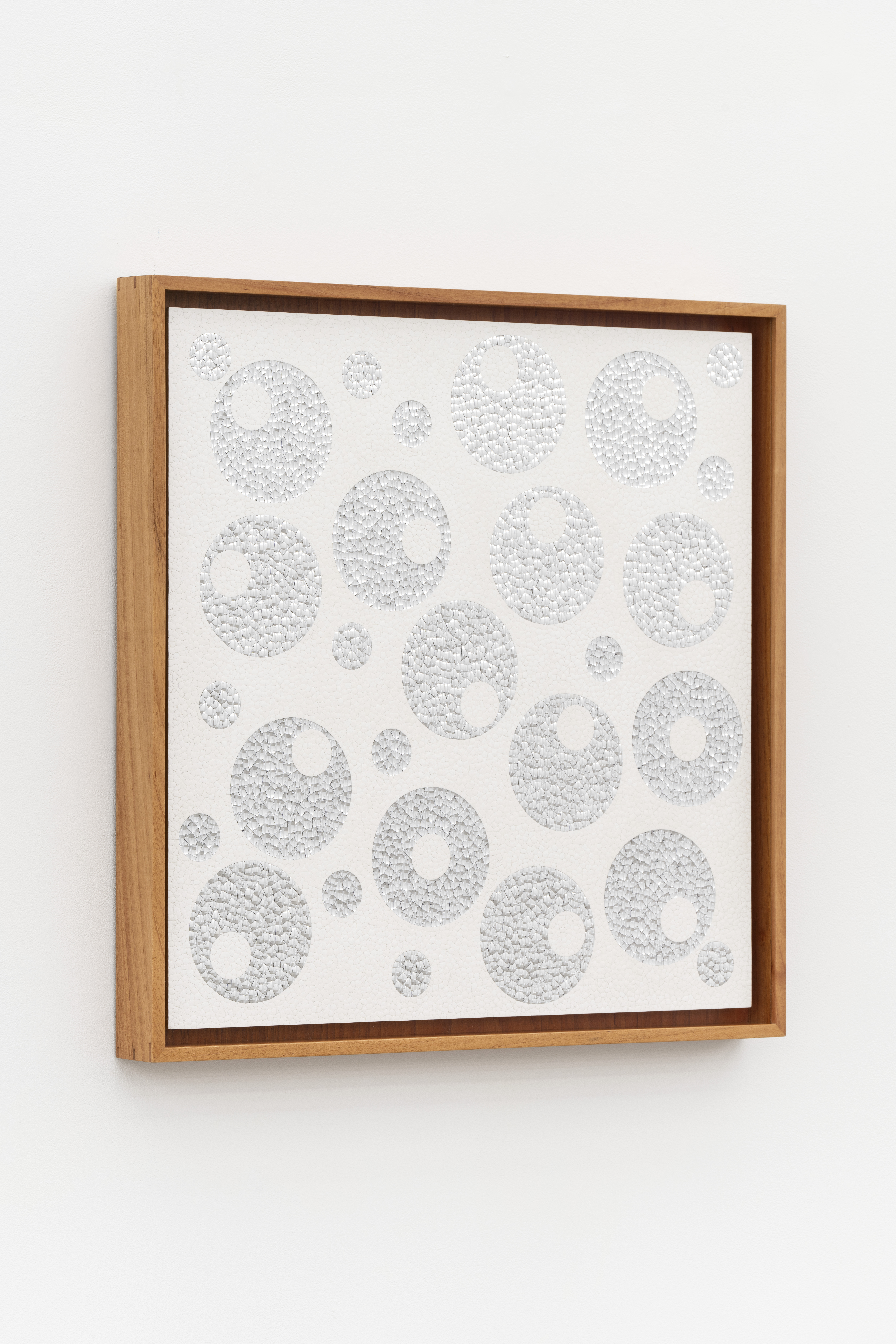 15,260 eggshell fragments, 3,203 concave and 3,723 convex aluminum blown glass fragments on museum cardboard