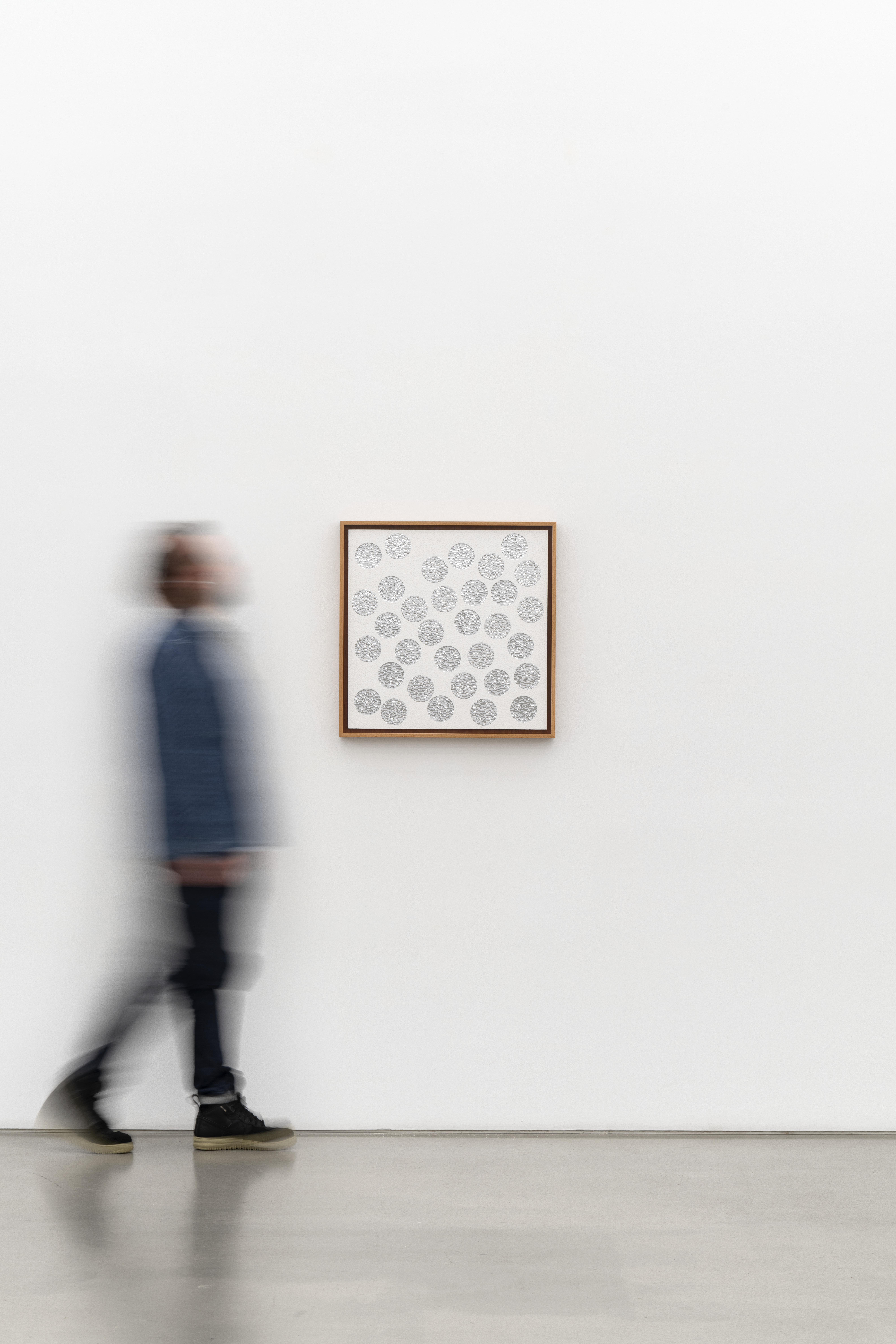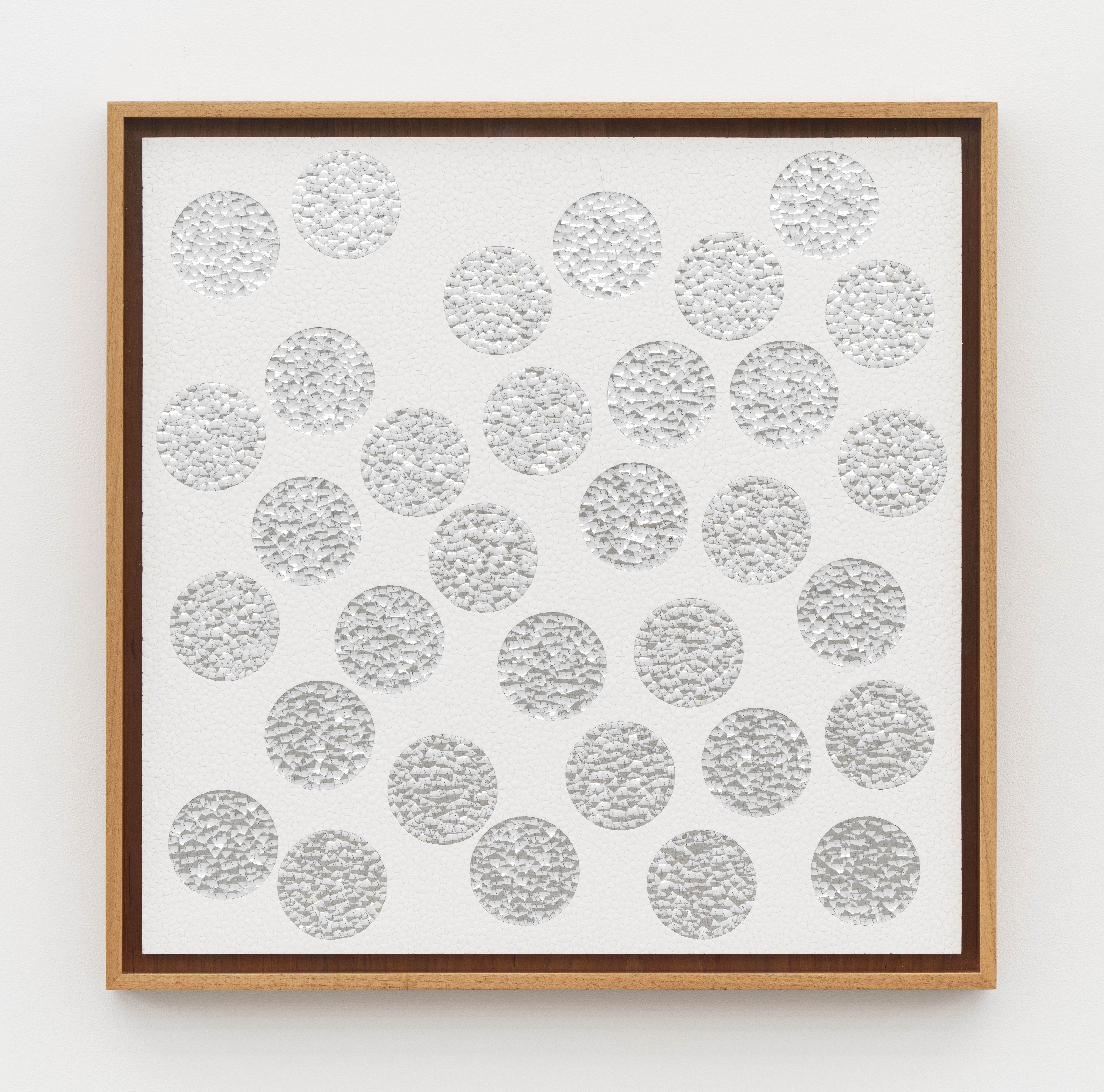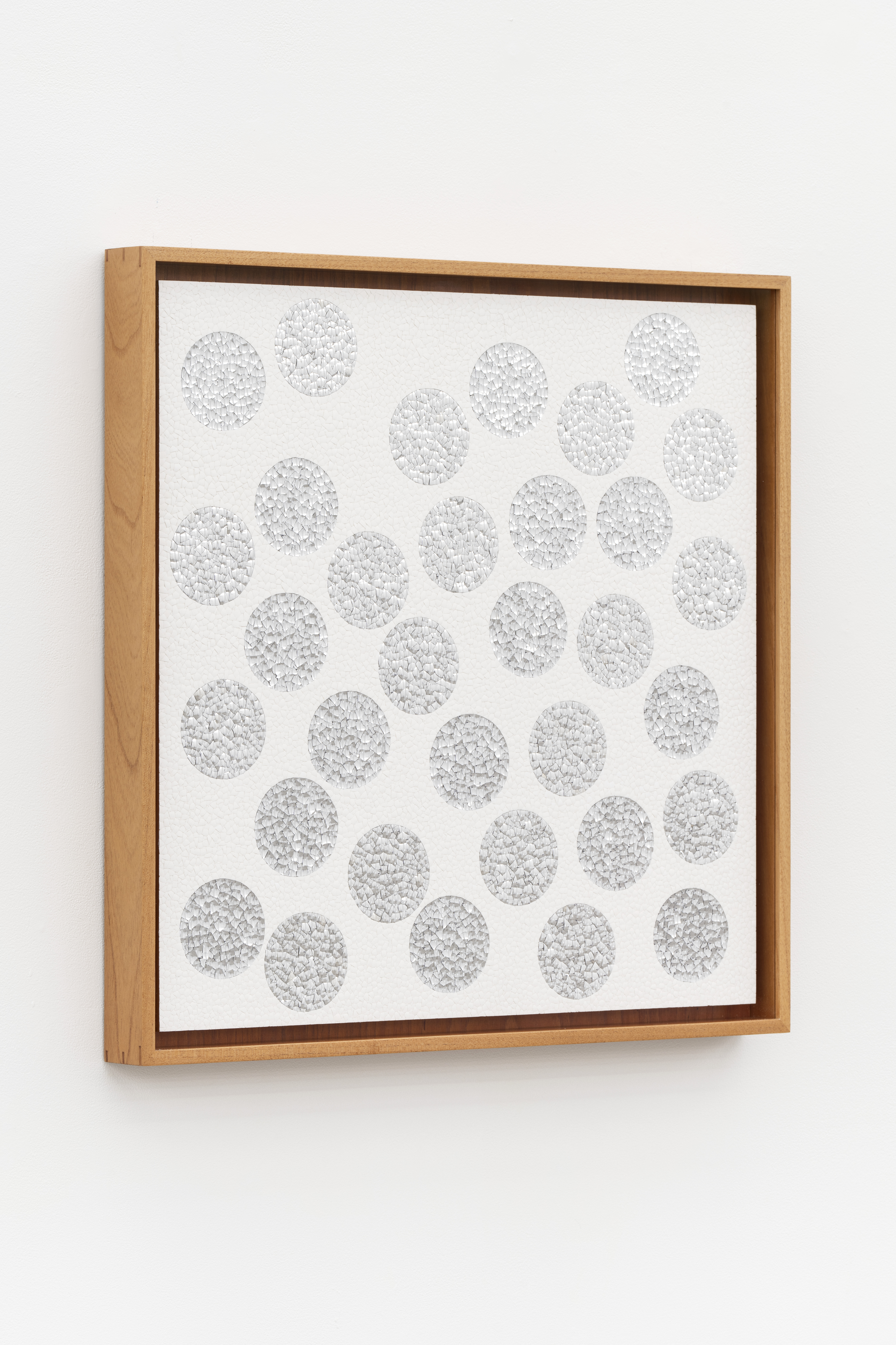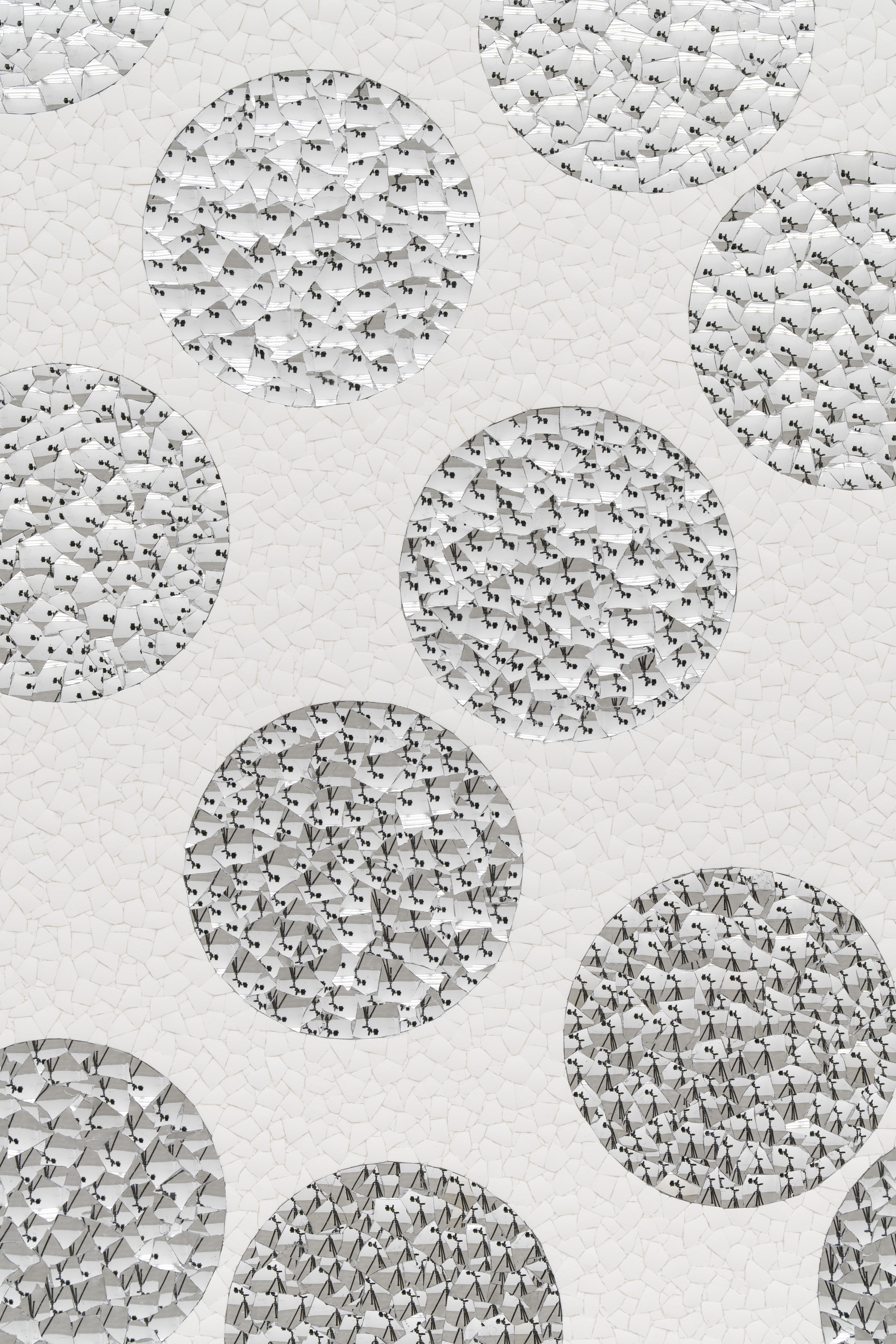 12,259 eggshell fragments, 3,205 concave and 3,225 convex aluminum blown glass fragments on museum board