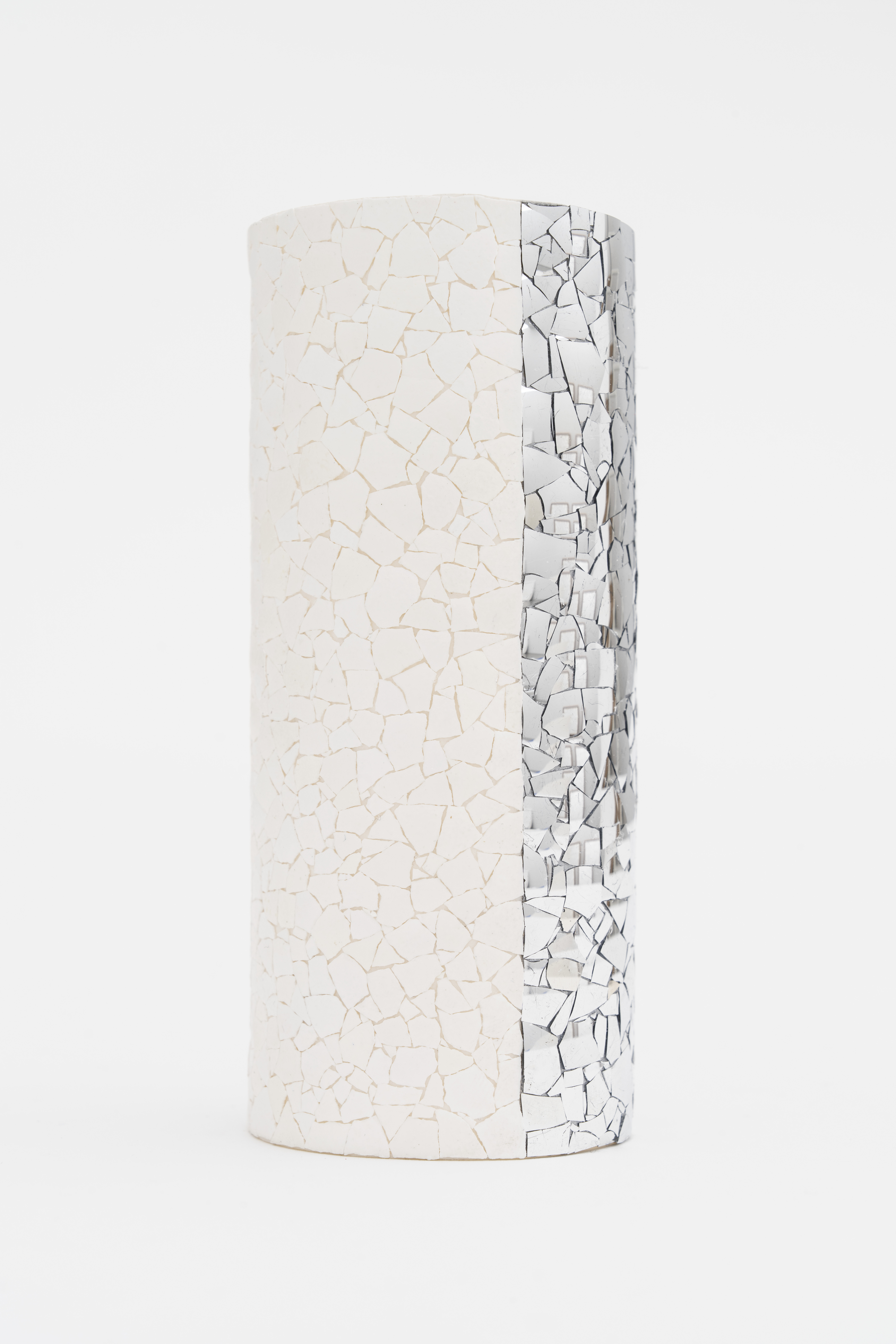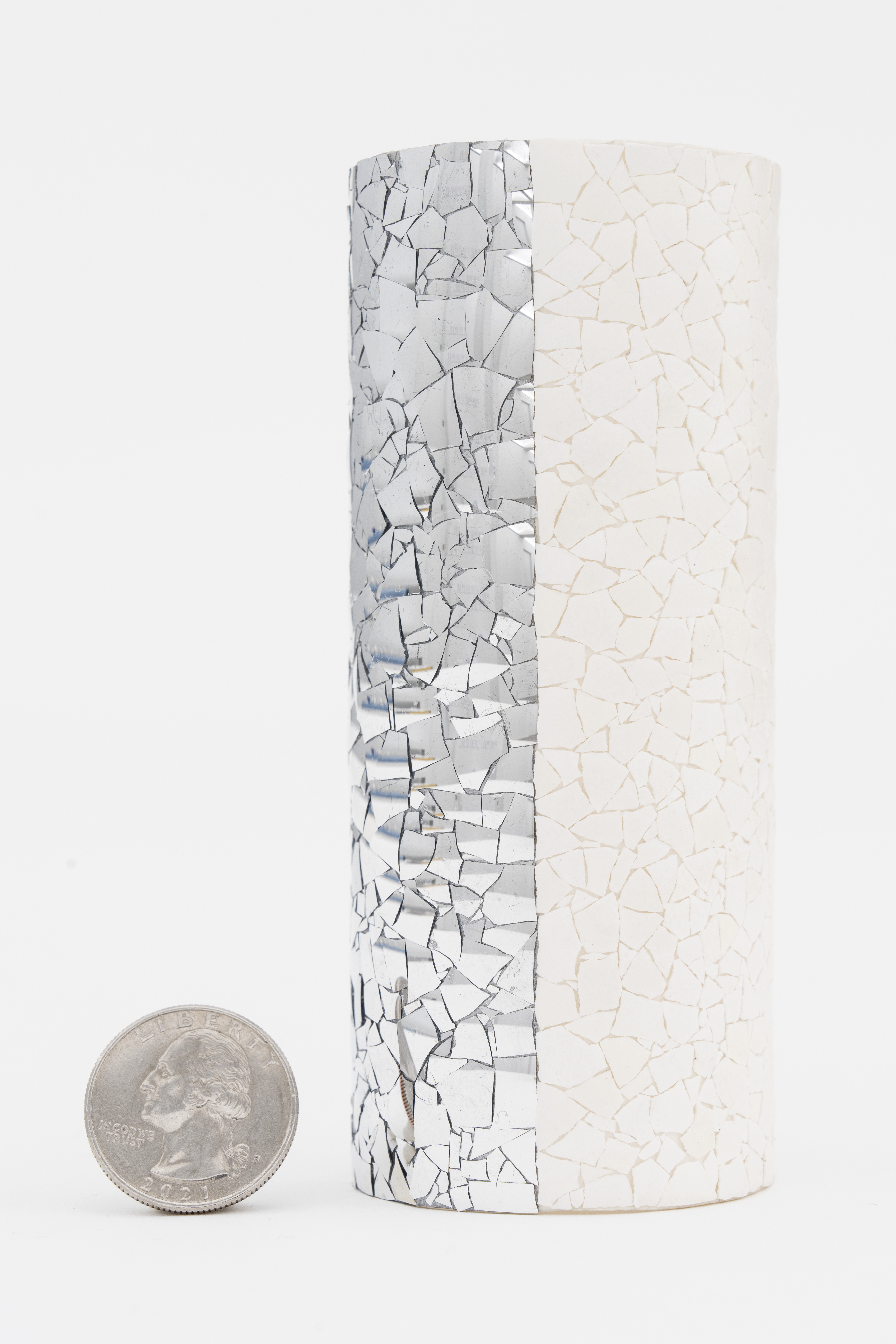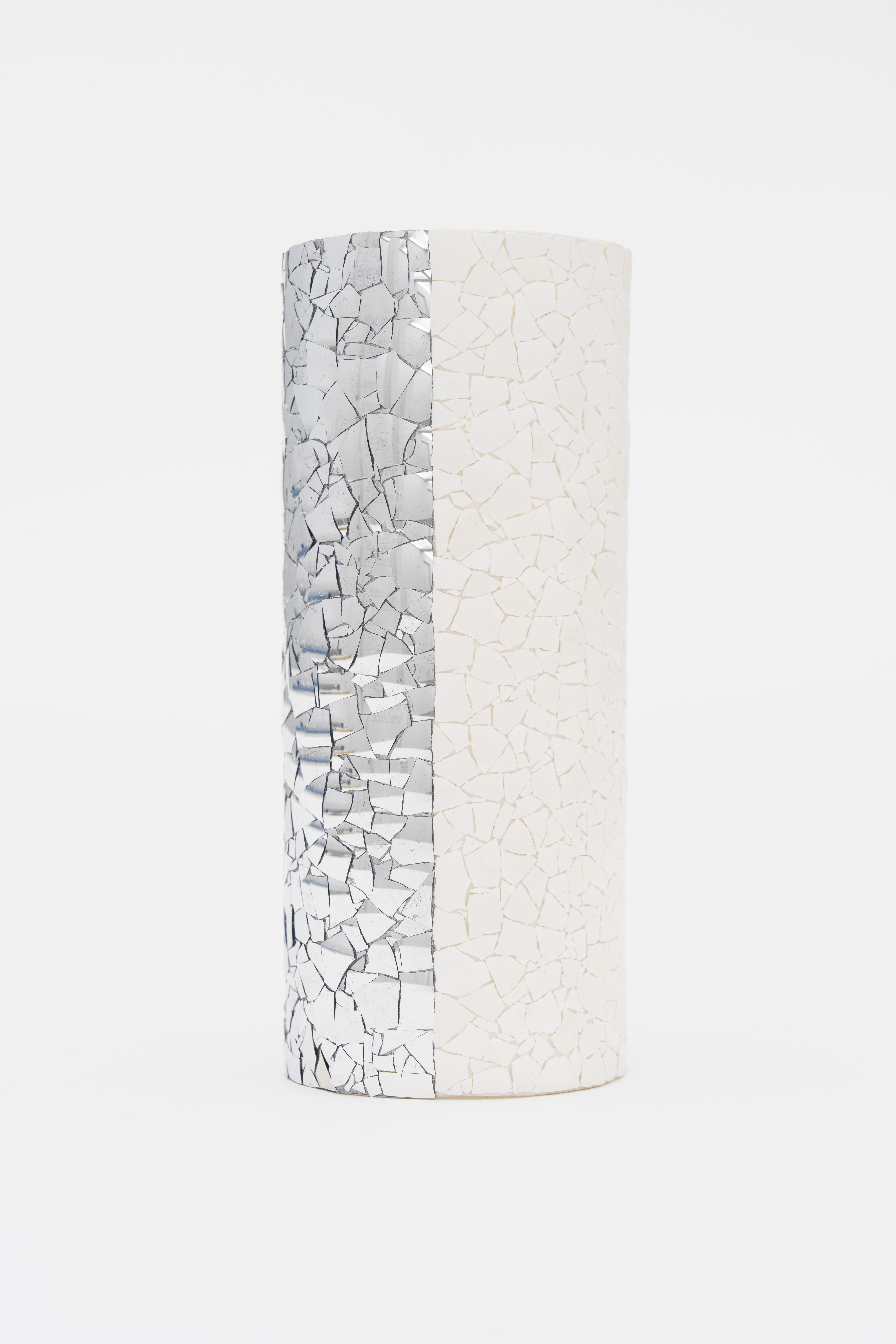 641 aluminum blown glass fragments and 572 eggshell fragments on cardboard