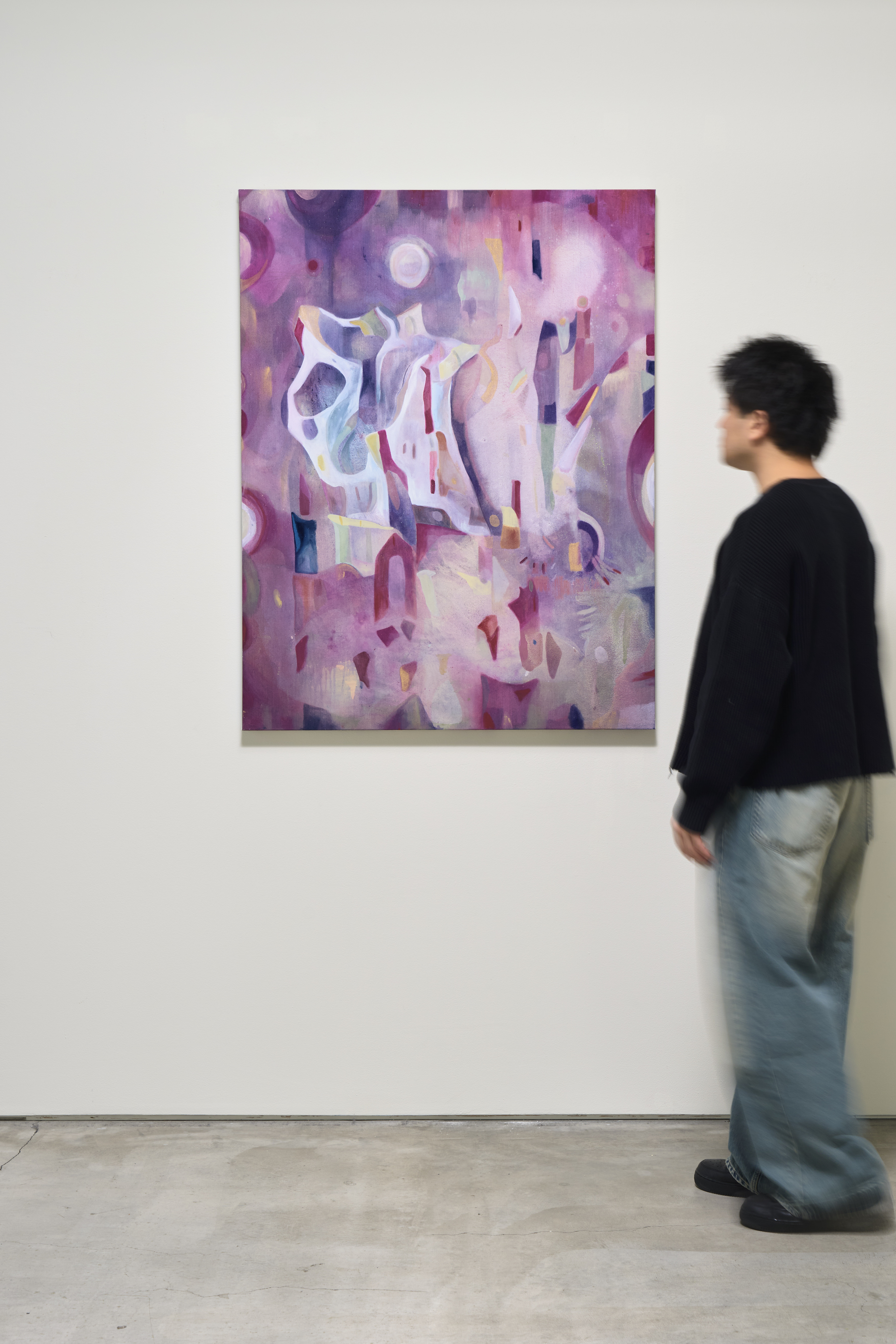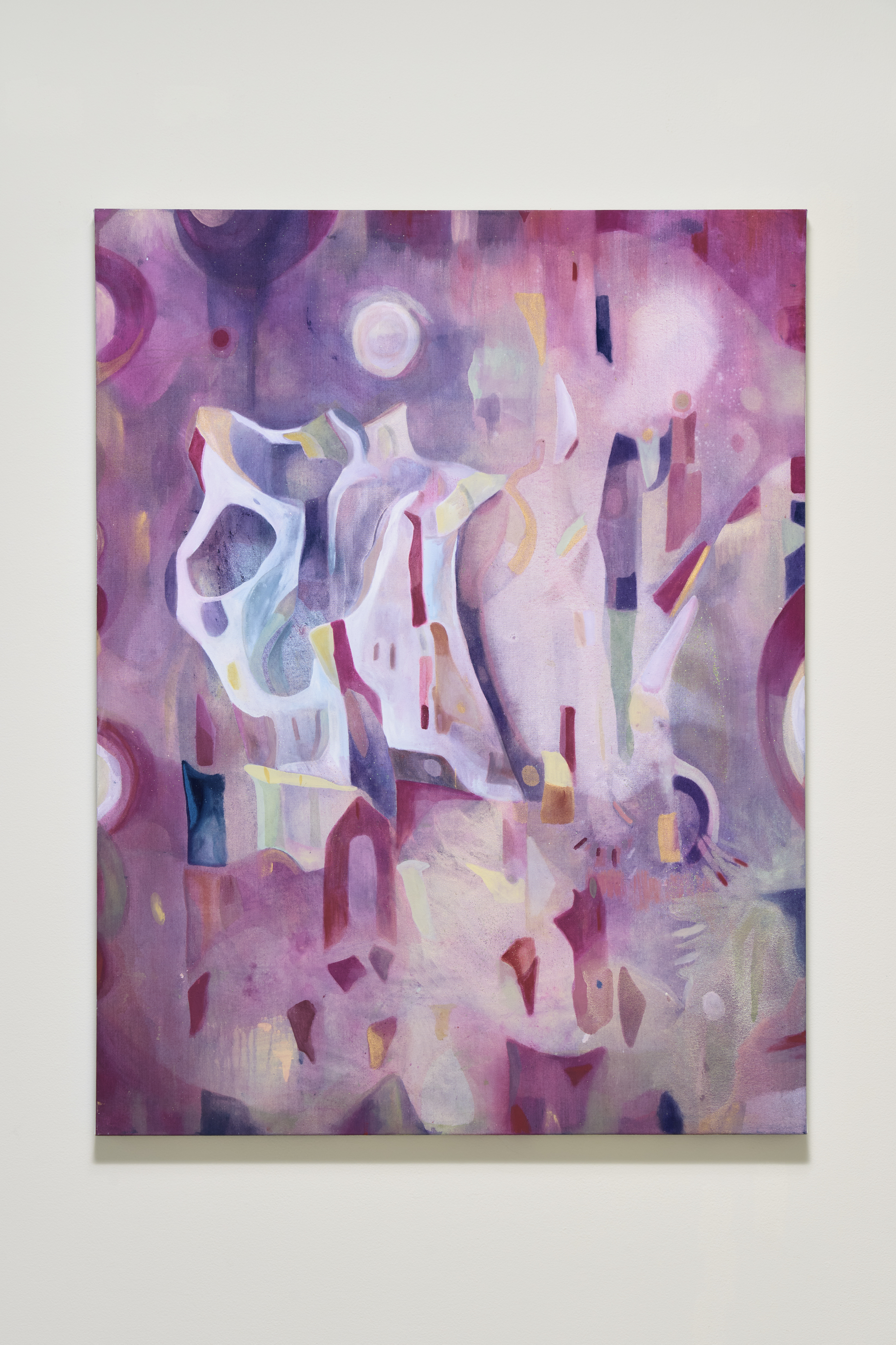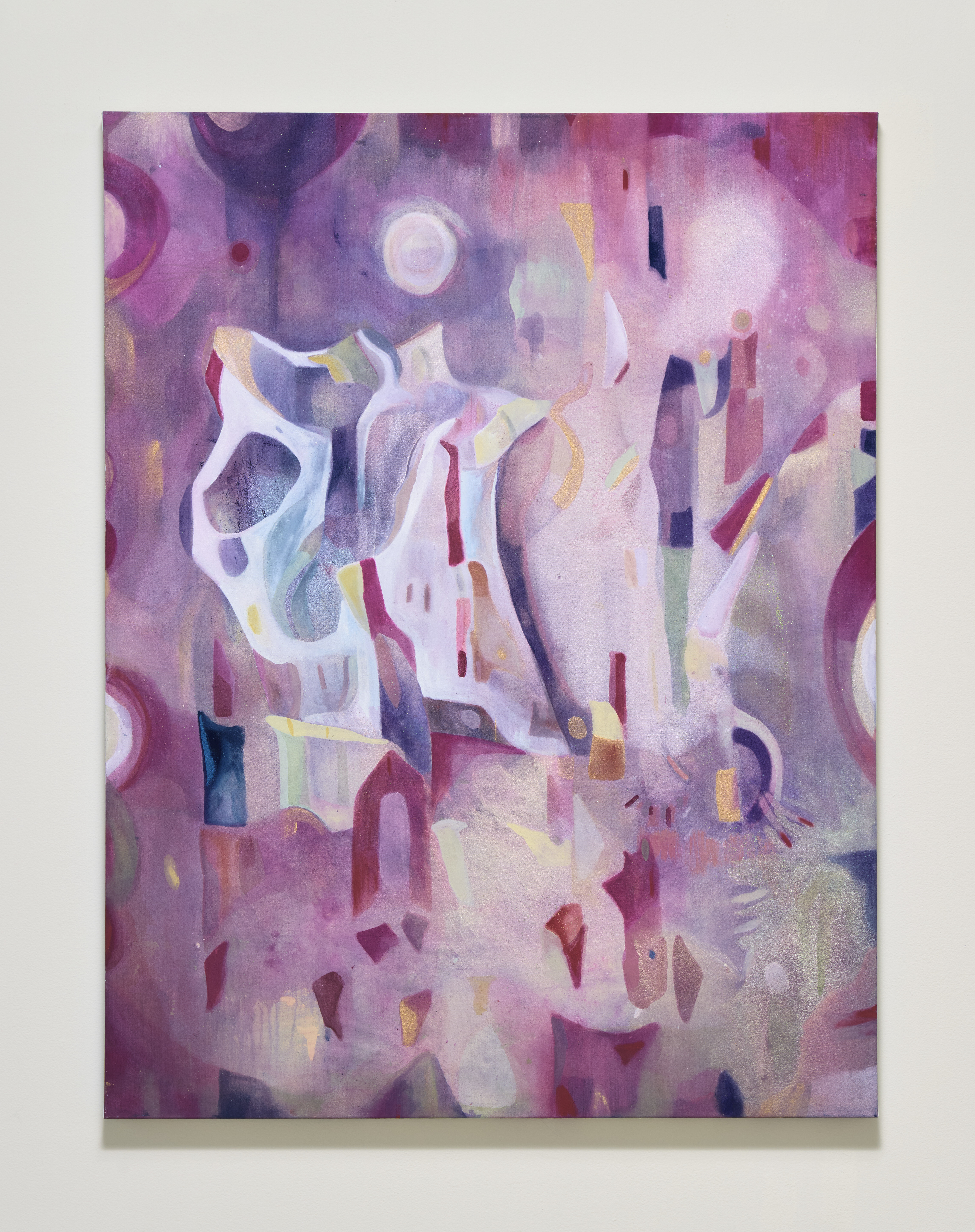 Acrylic and watercolor on canvas, pigments, glitter