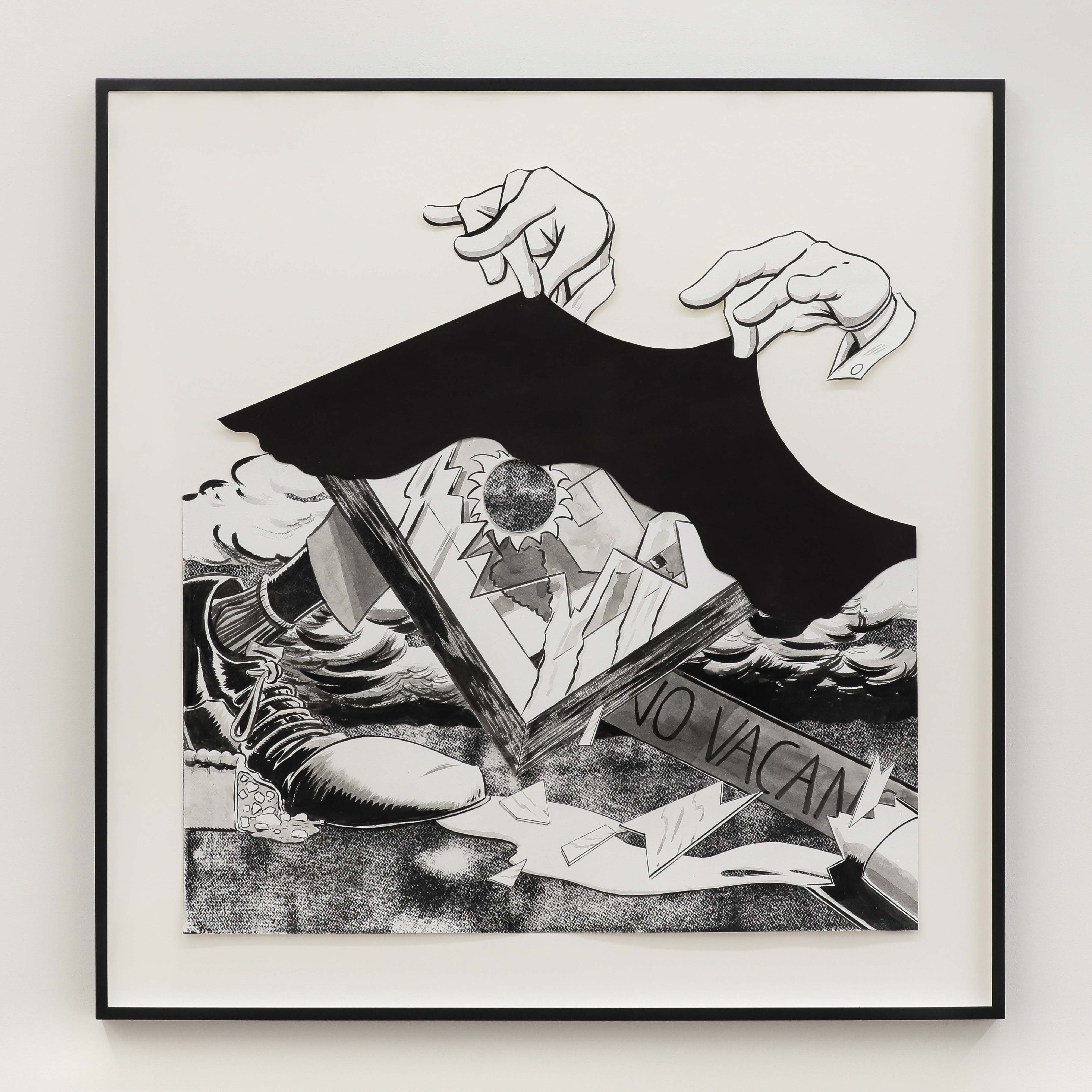 Ink, acrylic collage on paper