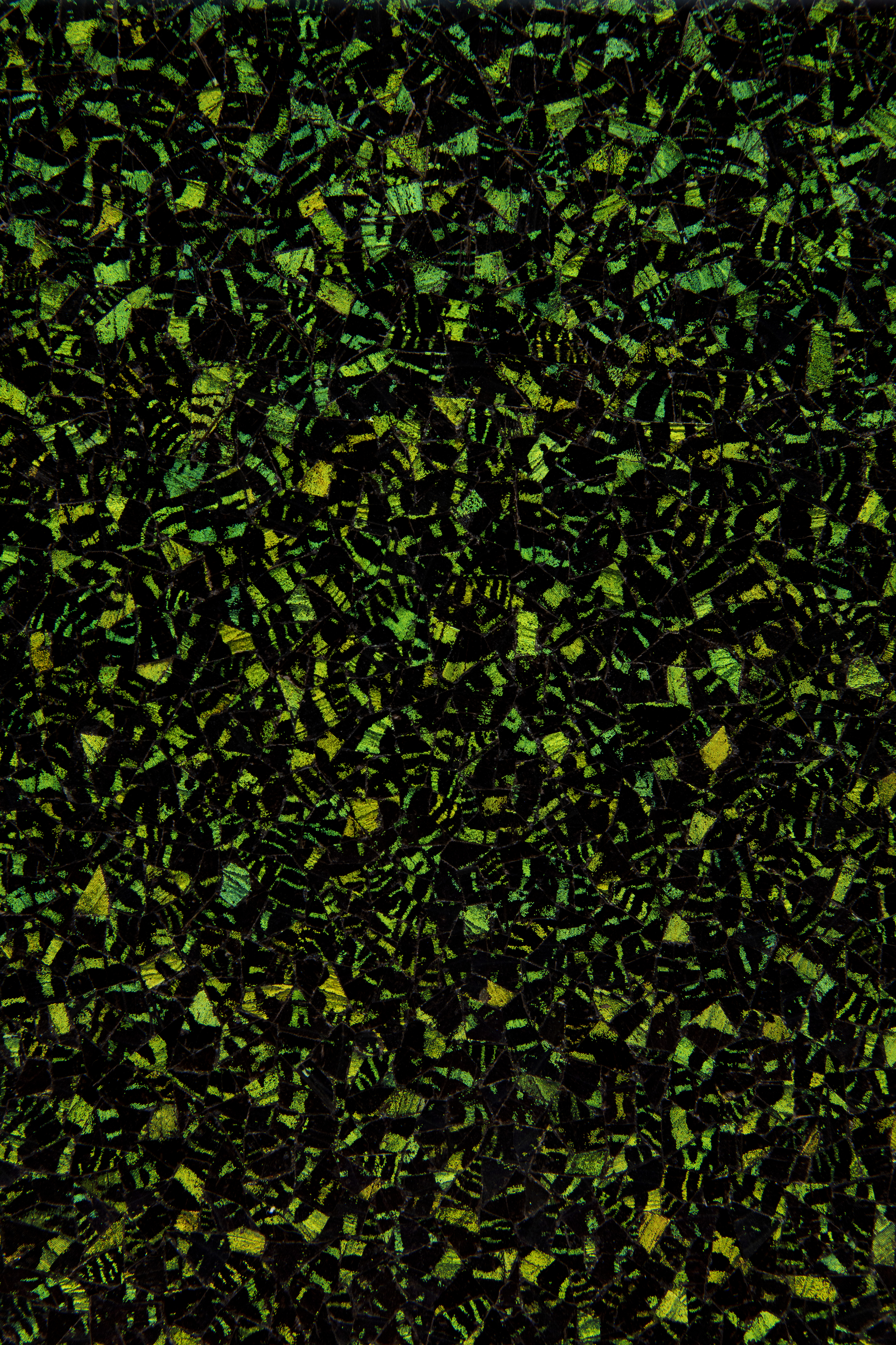 Urania ripheus butterfly wings mosaic on museum cardboard